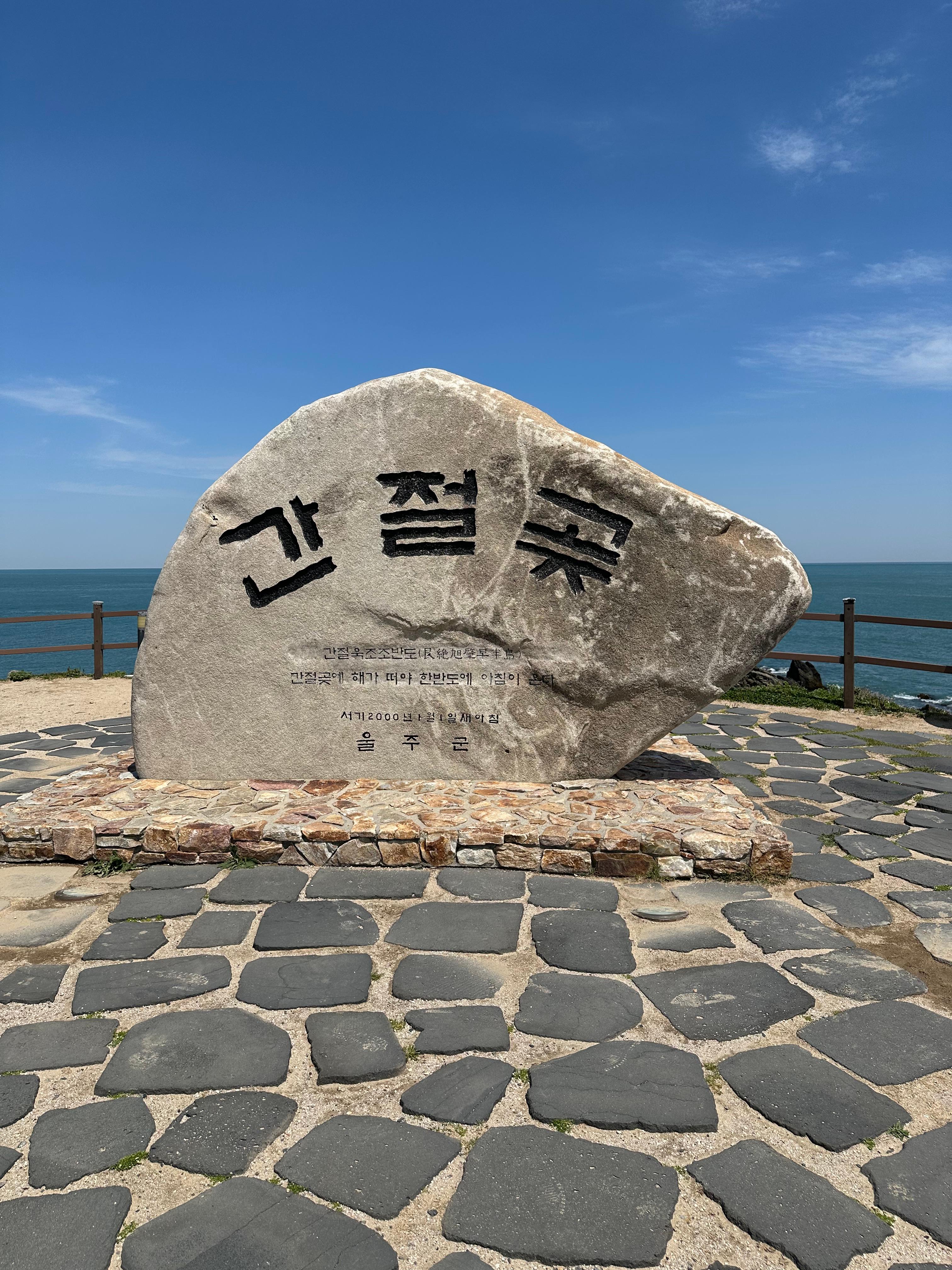 간절곶 바위 뒤에는 "이곳을 찾은 분과 후손은 새천년에 영원히 번성할 것이다." 라는 말이 있어서 방문한 사람으로써 기쁘고 설레이는 말이였습니다. 그 말을 본 것처럼 좋은 일들이 가득 했으면 합니다. 2000년 1월 1일 동북아 대륙에서 가장 먼저 해가 뜬 곳이라서 그날을 기념하여 지금의 간절곶 바위를 만든 것으로 표기가 되어 있었습니다.