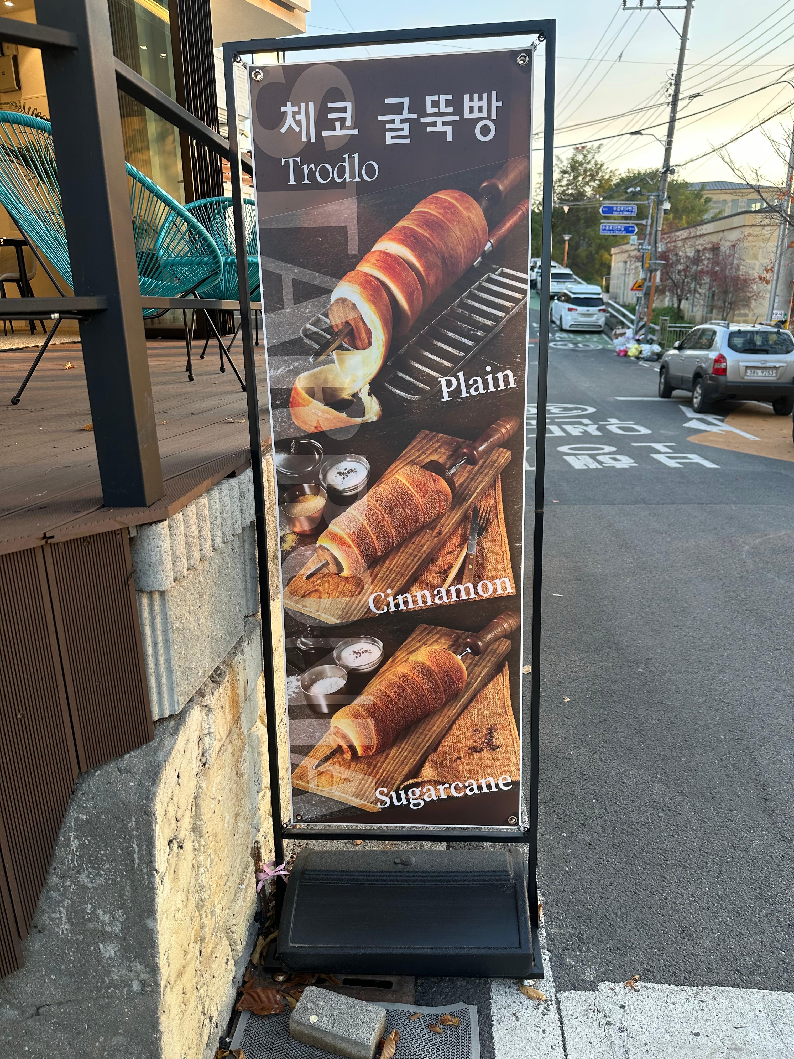 - 체코의 명물 굴뚝빵이 메인입니다. 플레인, 시나몬, 사탕수수 3종류가 있습니다.