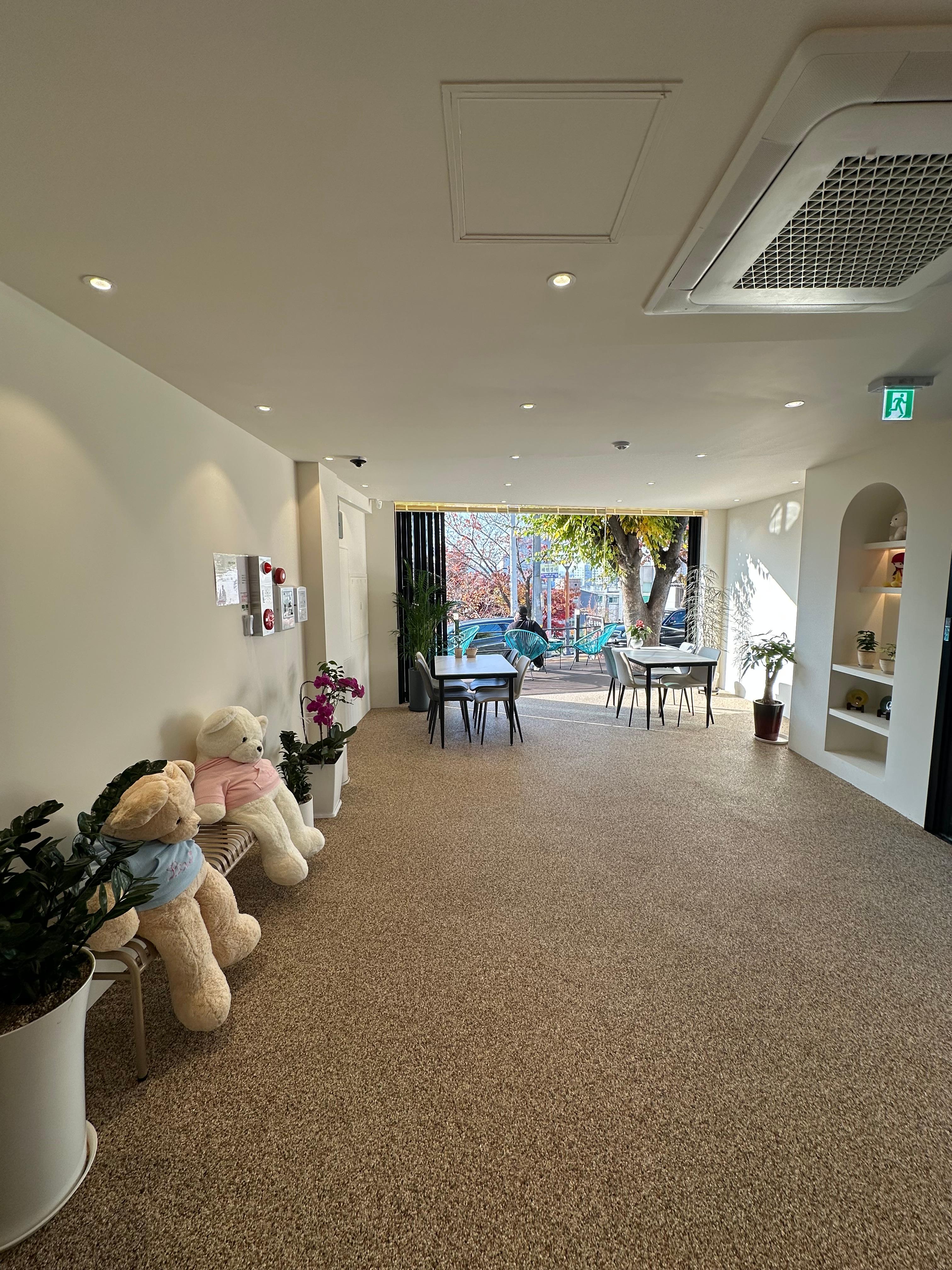 스타로니아 카페는 인테리어도 다양하게 되어있는데요. 1층과 2층에는 인형도 함께 있어서 편안하고 친숙한 이미지였습니다. 특히 계단에서 올라오면 바로 정면에 슬라이딩 통유리 도어가 있어 청주시내가 한눈에 내려보이는 풍경을 즐길 수 있습니다.