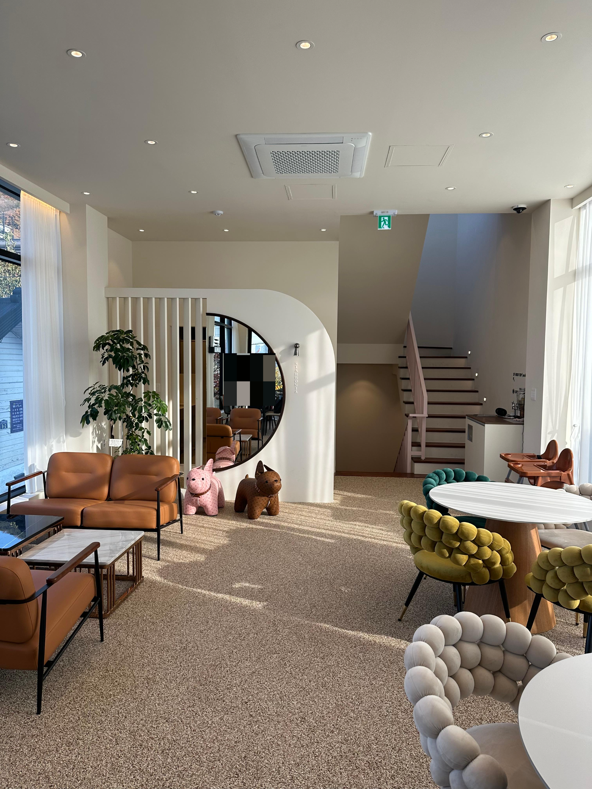 저는 팔봉제빵점 맞은편에 생긴 스타로니아 카페 안으로 들어왔습니다. 그리고 우선 자리가 있는데 2층으로 올라가서 자리를 잡았는데요. 스타로니아는 제가 올해 2025년 11월에 방문하기 전에 개업한 카페로 신생카페였습니다. 그래서 아직 준비중인 매장으로 조금 어수선한 분위기였는데요. 신생 카페라 그런지 일단 깔끔 했습니다. 무엇보다 수암골은 언덕 위에 있는 동네로 주변에 벽화마을을 둘러 보며 자연스럽게 스타로니아 카페 안으로 들어올 수 있었습니다.