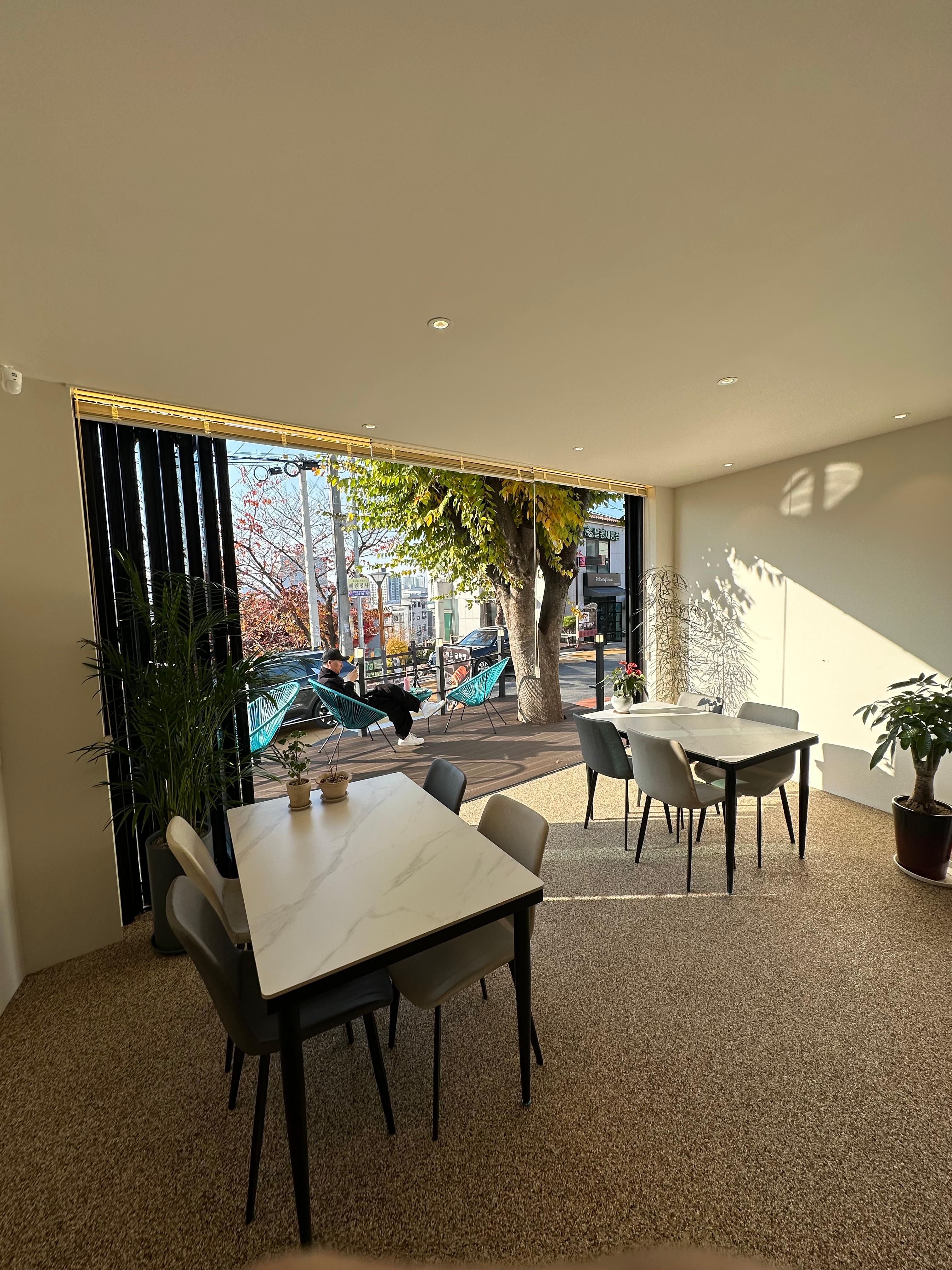 테이블이 많아보이지는 않았지만 청주 시내에서 외곽으로 나와야 즐길 수 있는 카페라서 그런지 조금 여유로웠습니다. 수암골은 청주시내에서 버스를 타고 가야 하는 곳이었는데요. 우암초 정류장에서 내려서도 한참을 올라와야 했습니다. 그래서 청주시민 뿐만 아니라 수도권에서 가깝게 당일치기로 올 수 있는 곳이다보니 청주시내가 보이는 수암골에서 힐링하기에 좋았습니다.