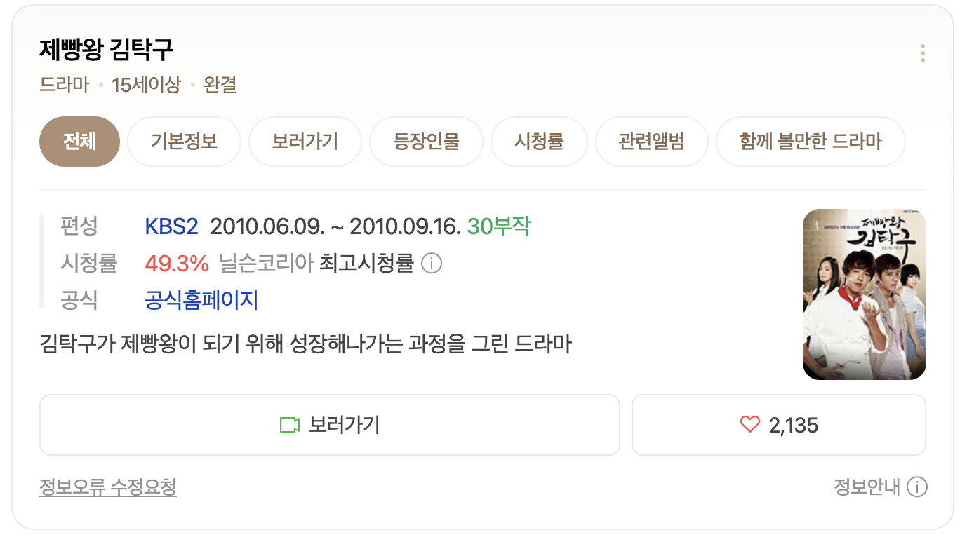 청주에는 드라마 촬영지로 유명한 수암골이라는 곳이 있는데요. 이곳에서는 2010년 최고 시청률 49.5%를 자랑한 제빵왕 김탁구 촬영지가 있습니다. 49.5%라는 시청률은 전국민이 다 볼만한 그런 시청률을 자랑하는데요. 보신분들도 있고 안보신분들도 있지만 주인공 김탁구(배우 윤시윤)는 아버지 구일중(배우 전광렬)의 정적인 한승재 비서실장(배우 정성모)로 인해 어린시절 어머니와 이별하고 어머니를 찾다가 팔봉제빵점에서 제빵왕으로 성장하는 이야기를 다루는 재미있는 드라마였습니다. 10년이 지난 지금도 CNTV에서 가끔씩 재방송 나올때 종영까지 지켜보거나 OTT 서비스인 웨이브(Wave)를 통해서 가끔씩 볼만큼 명작이라고 생각합니다.