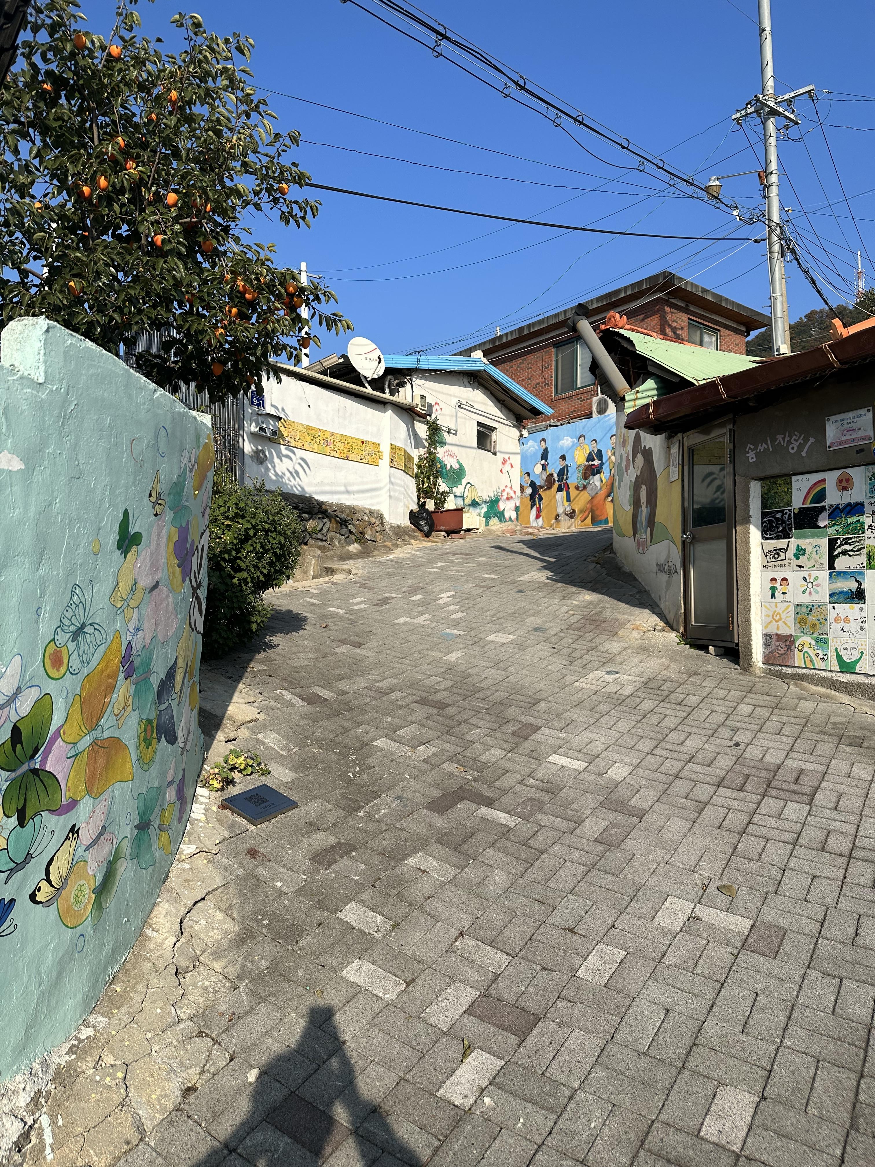 수암골에는 벽화마을이 있었다고 말씀드렸습니다. 어떤 곳인지 살펴보겠습니다. 벽화마을이라는 곳이 사람들이 사는 마을에 벽화 그림을 그려놓은 곳을 의미하는데요. 수암골 벽화마을 크지도 않고 금방 돌아볼 수 있는 작았습니다. 오르막길이 있을 수 있긴한데 그곳은 전망대 가는길이기 때문에 가지 않는다면 크게 힘들지 않을 것 같습니다. 벽화마을 답게 재미있는 벽화도 있고 때로는 관광객들로 인해 힘들어하는 벽화도 보였습니다.