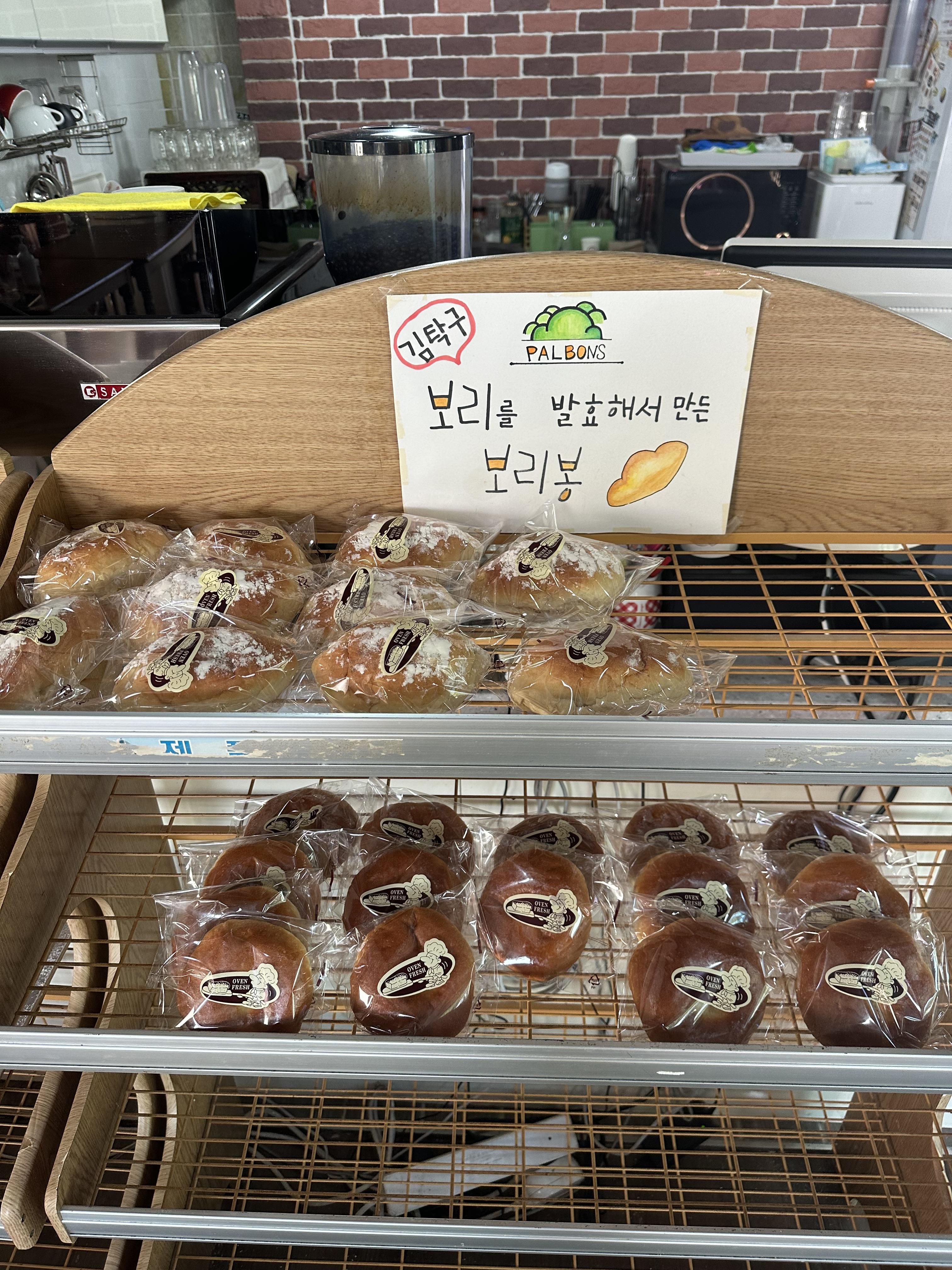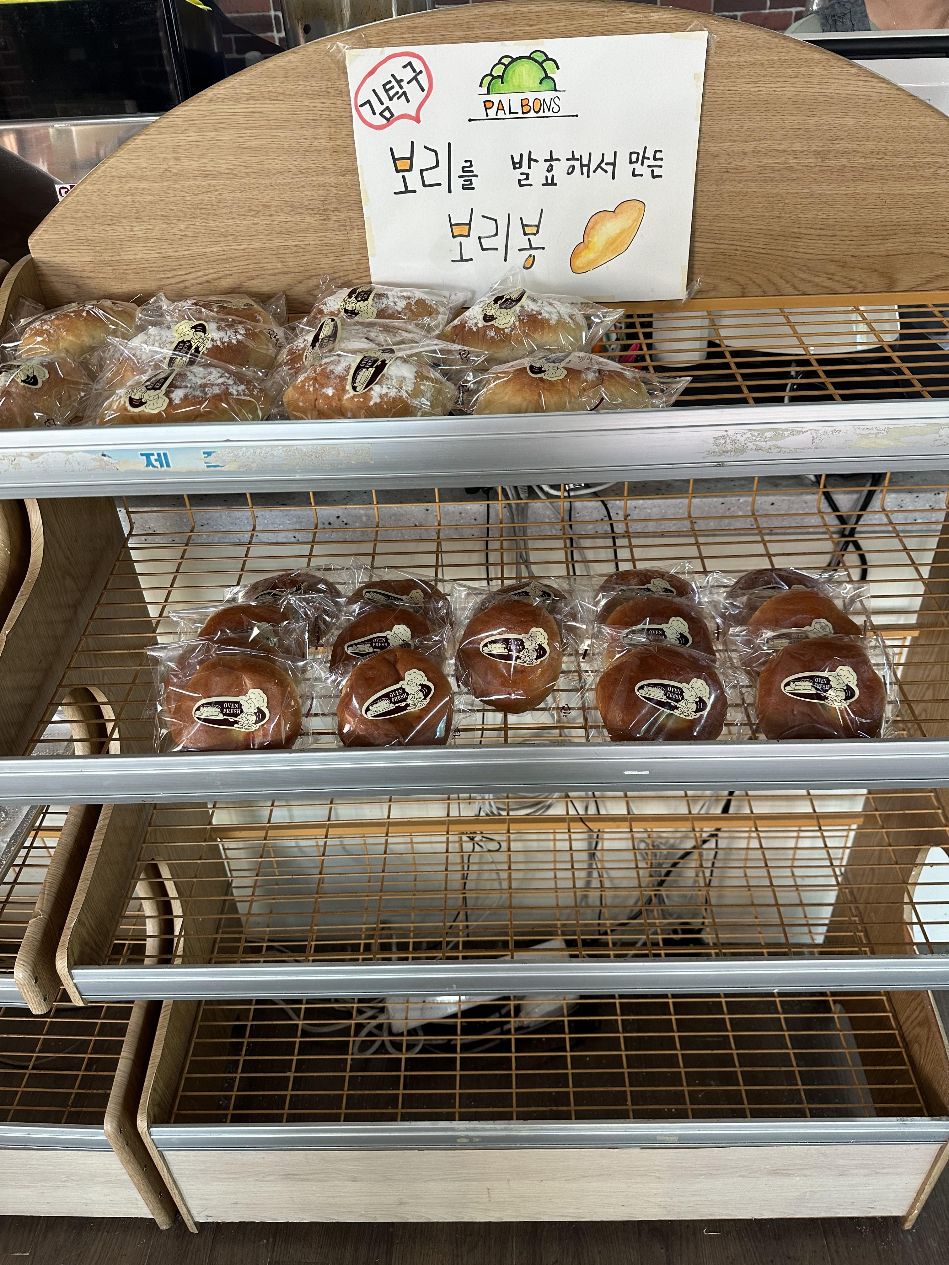 1층 빵을 판매하는 곳입니다. 바로 맞은편에는 드라마 소품과 악세사리들이 있었는데요. 빵도 판매하고 악세사리도 판매하는 것 같습니다. 카운터 앞에 있에 보시면 보리빵이라고 보이는데요. 바로 저 빵이 드라마에서 주인공인 김탁구가 1차 경합에서 만든 보리빵이었습니다. 드라마에서 만든 빵이라 구매를 했습니다. 보리빵이라 그런지 단맛은 안나고 배불렀습니다.