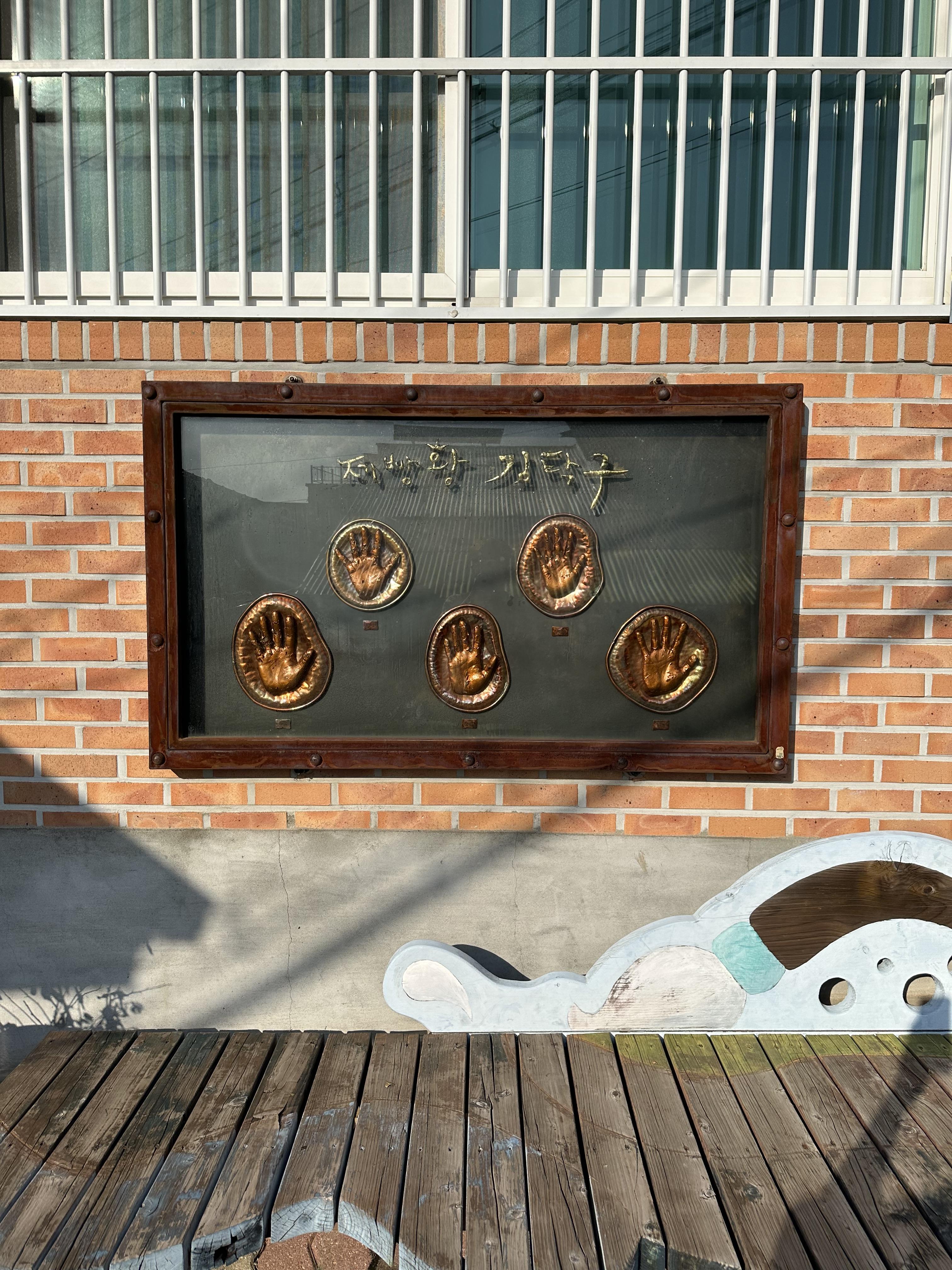 벽화마을로 내려오면서 어느 집 앞에는 제빵왕 김탁구 배우들의 손이 있었습니다. 아마 주연 배우였던 윤시윤, 주원, 유진, 이영아 배우였던 것 같습니다. 벌써 10년 넘은 명작이라 그러한지 사진속 배우 이름도 희미하게 보이고 있었습니다.