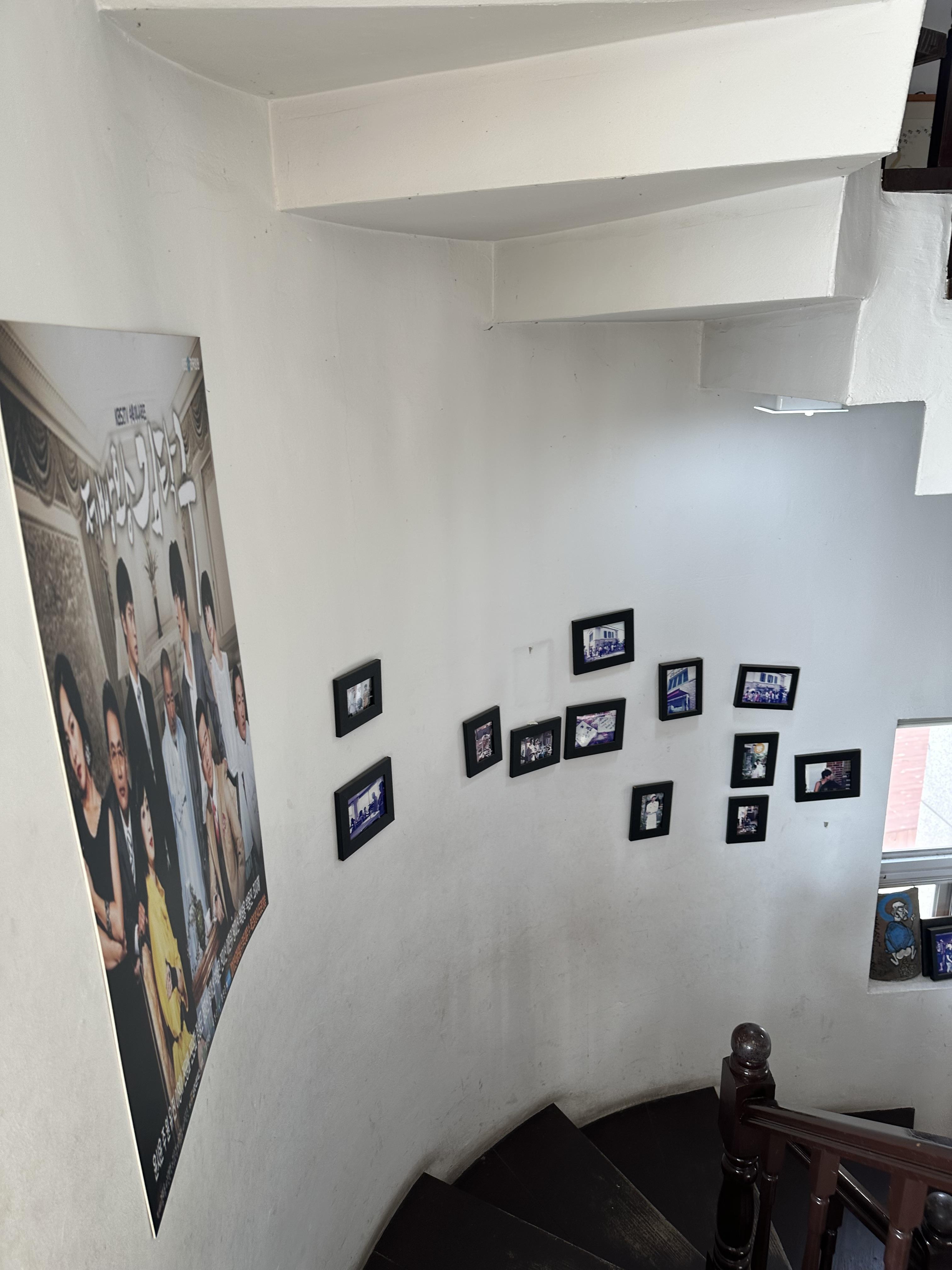이제 2층으로 올라가보겠습니다. 실제 제빵왕 김탁구에서 팔봉제빵점 2층은 탁구와 팔봉제빵점 식구들이 빵을 만드는 장소였습니다. 빵을 만들여서 1층으로 가져와 판매했던 기억이 남습니다. 그리고 탁구와 마준이가 경합을 벌였던 장소이며, 구일중회장과 탁구가 부자지간으로 상봉한 장소, 팔봉 스승님이 마지막으로 빵을 만들다가 돌아가신 장소였습니다. 그러나 이 모든것은 방송국 세트장이였는지 아니며 철수 후 새롭게 만들었는지는 모르겠습니다. 2층으로 올라가는 계단 벽면에는 당시 촬영 사진들이 붙어져 있었습니다.