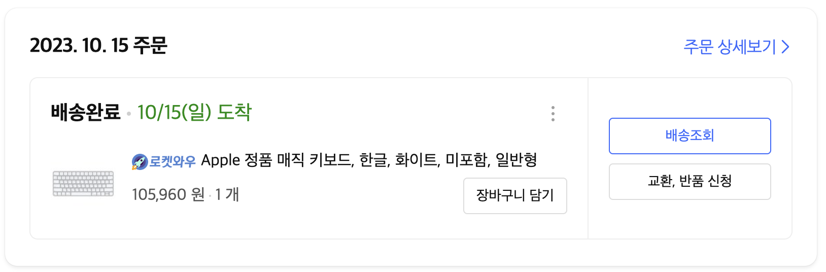 | 애플 2021 매직마우스 쿠팡 로켓배송 구매 사용 후기 (0) | 2024.01.17 |