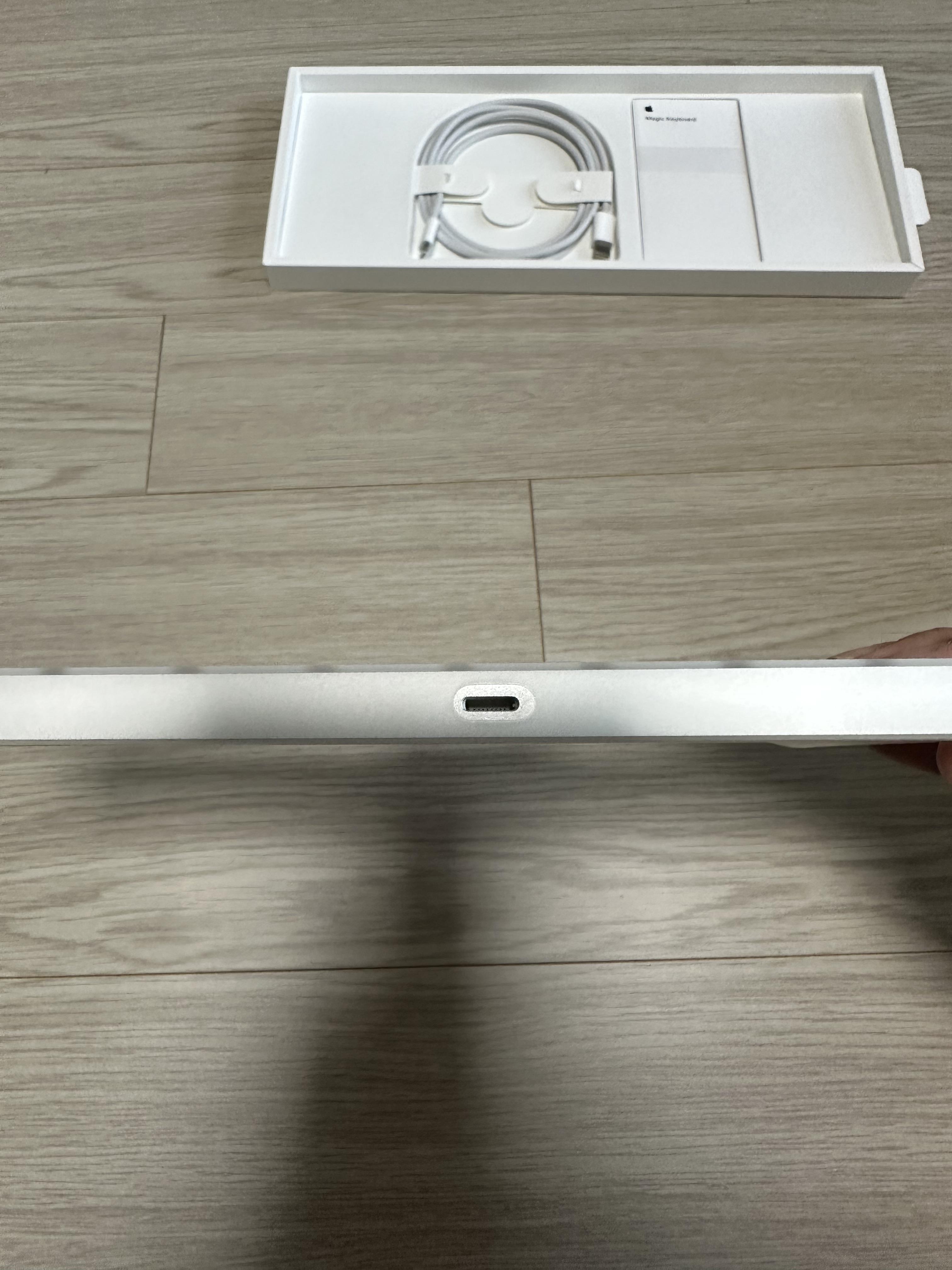 - 그러나 매직키보드는 건전지 필요없습니다. C Type 케이블로 충전만 하면 됩니다. (C Type 어댑터는 제공되지 않아 따로 다이소와 같은 매장에서 구매 하셔야되요.)