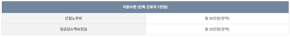 - 단, 임금감소액보전금은 사업주가 단축 근로자에게 감소한 임금에서 월 20만원 이상 보전한 경우 지원