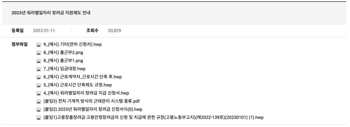 - 지원 제외 : 국가, 지자체, 공공기간, 「중소기업인력지원 특별법 시행령」 제2조에서 정한 업종, 임금체불로 명단이 공개중인 사업주