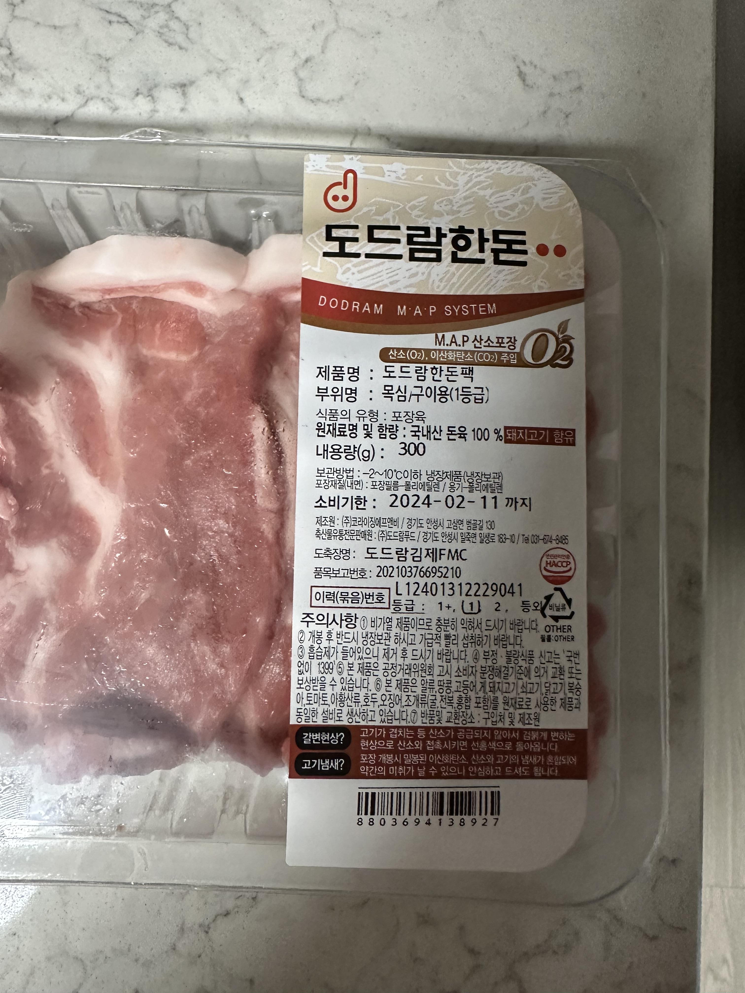 - 돼지고기 갈변현상 : 고기는 산소가 차단되면 색이 검붉게 보일 수 있다고 해요. 포장을 개봉해 산소와 접촉하면 다시 본연의 선홍색을 뜨게 된다고 해요. 품질 이상이 아니라 자연스러운 현상이라고 해요.