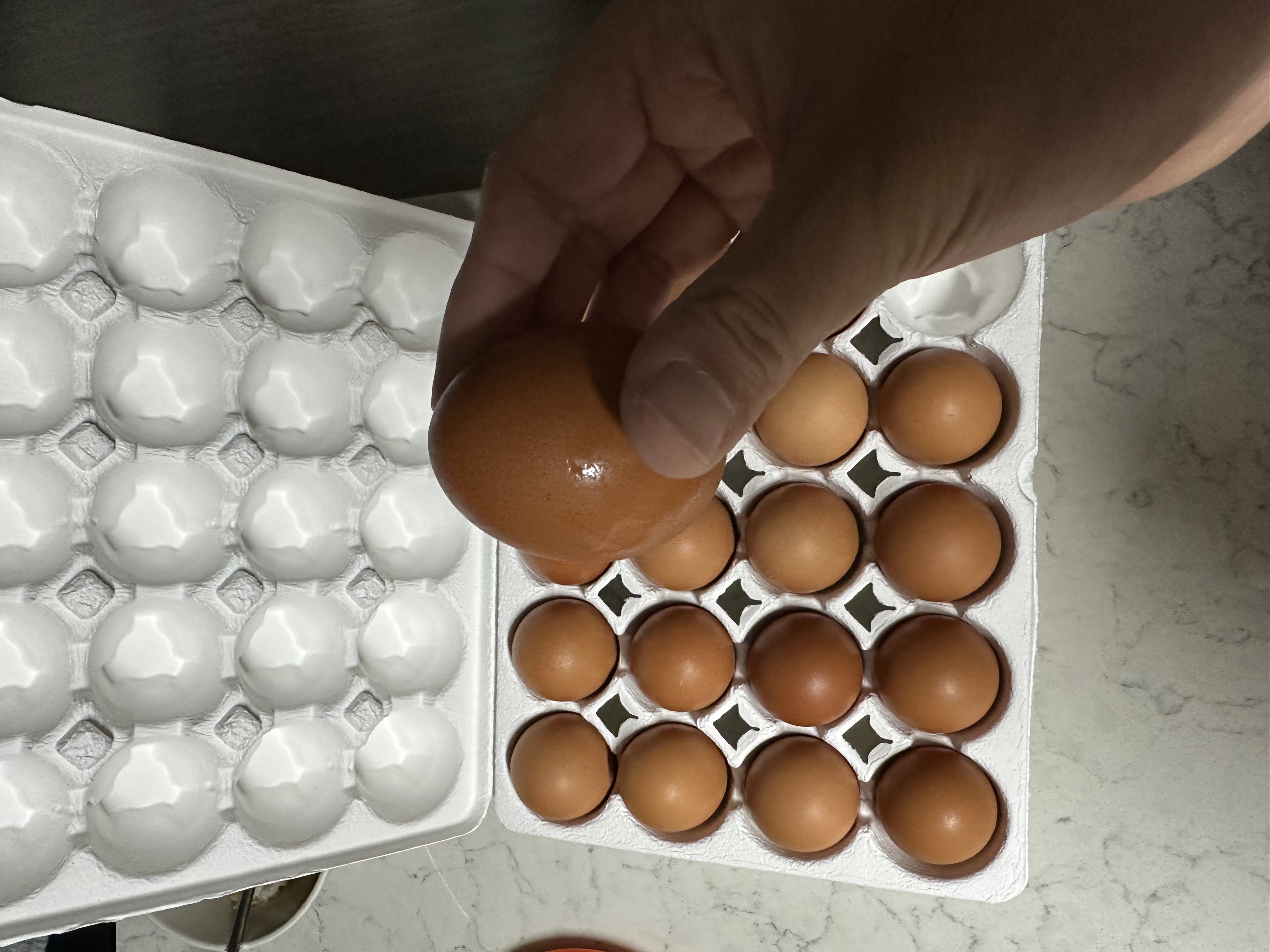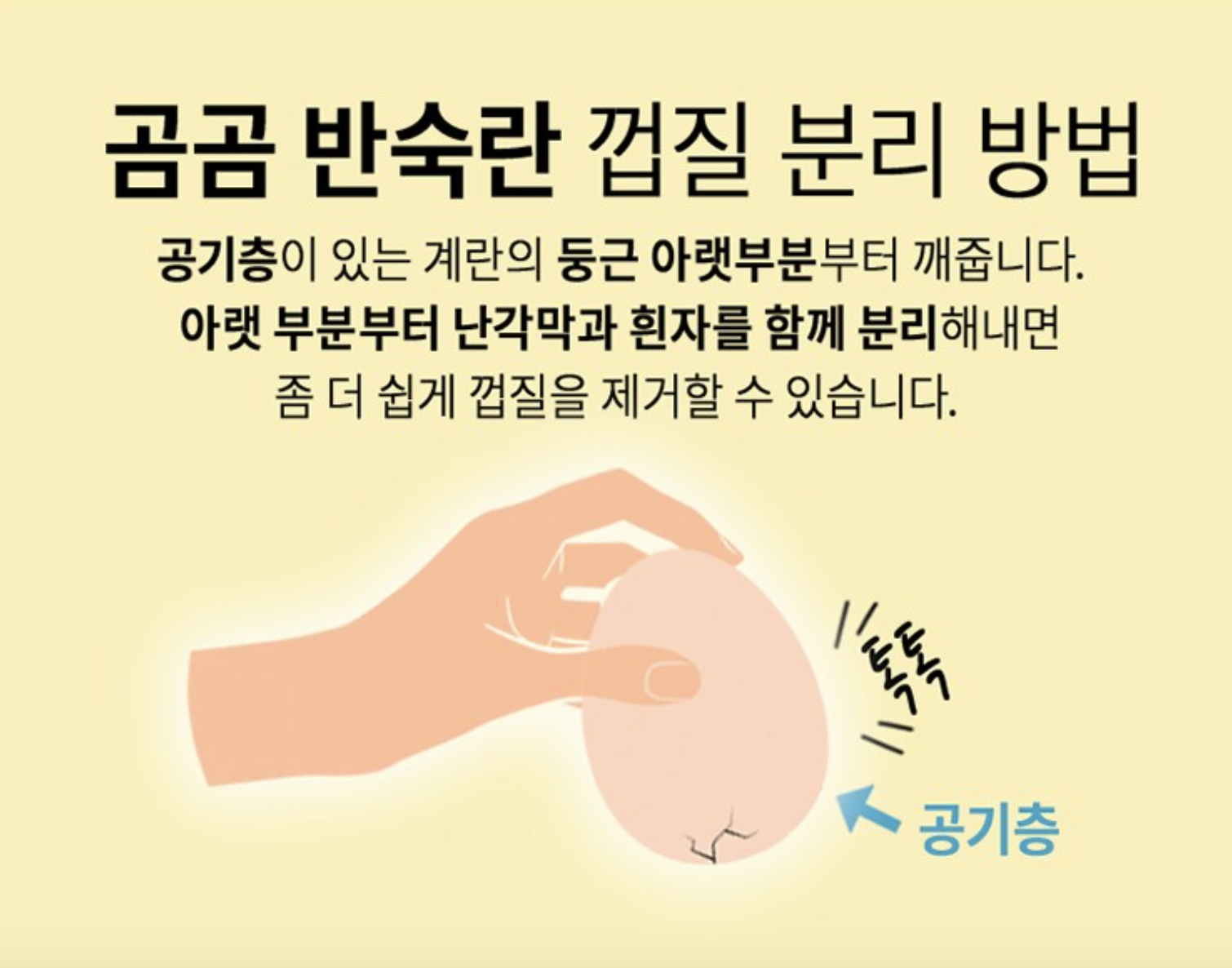 - 공기층이 있는 계란의 둥근 아랫부분부터 깹니다.