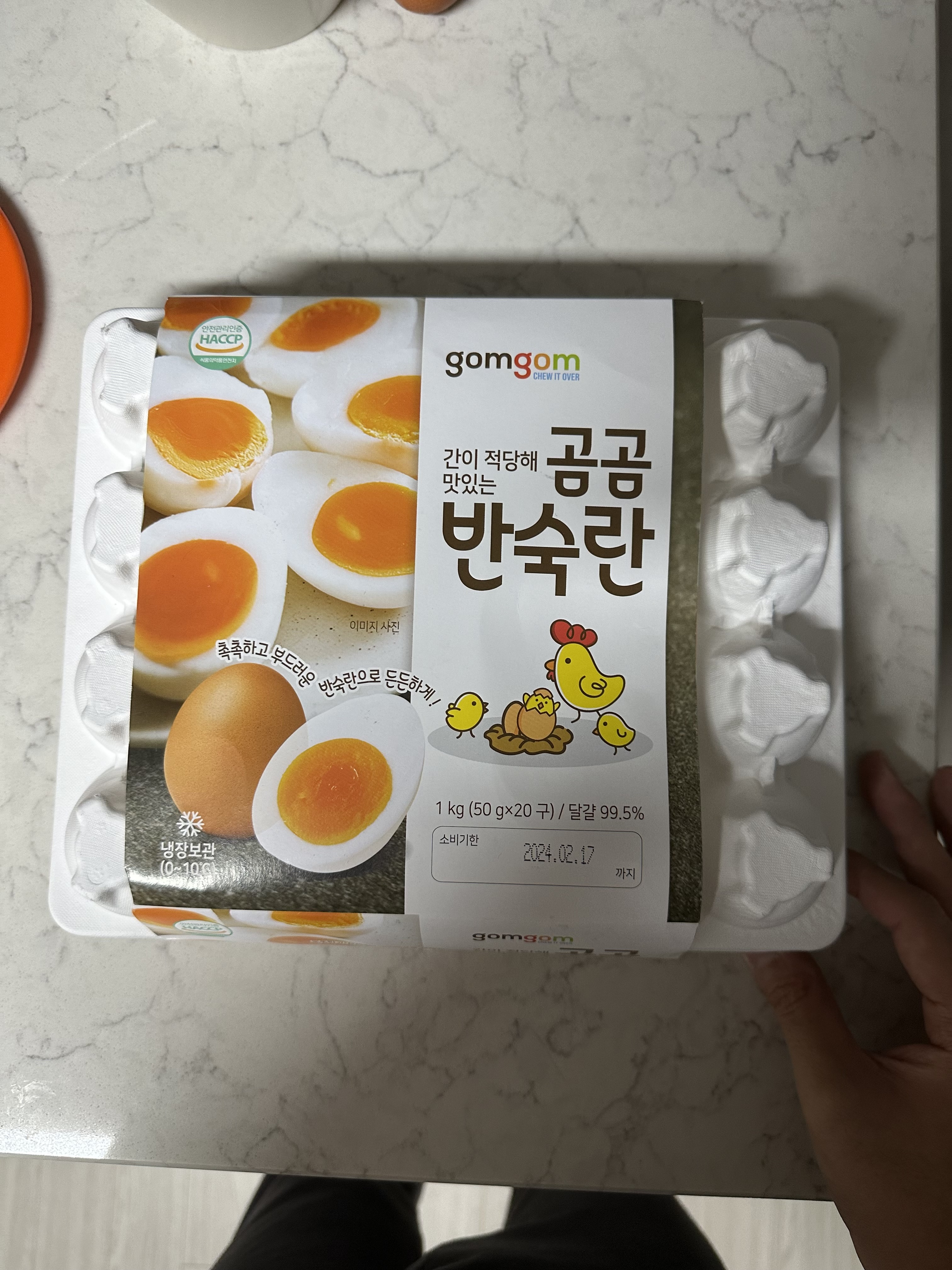 삼겹살만 시키기 좀 그렇더라구요. 요즘에 살이 쪄서 다이어트를 해야 할 거 같았는데요. 마침 저녁 대신에 또는 회사에서 배고플때 삶은계란 먹으면 좋을것 같아서 삼겹살과 함께 반숙란 20구를 주문했습니다. 그런데 소비기한이라는 것을 미쳐 생각하지 못했던 것 같습니다. 제가 주문한 당시 2월 6일이었는데요. 소비기한은 2월17일이었습니다. 대략 2주가 좀 못되는 기간이었습니다. 특히 중간에 설연휴가 있어서 그런지 아직도 많이 남았는데요. 삶은계란(반숙란)은 보관 잘하면 더 먹을 수도 있고 냄새 맡아보고 괜찮으면 먹어보라는 의견도 있었습니다. 오피스텔 냉장고에 넣었는데 소비기한 지나서도 먹을 수 있을지 걱정은 됩니다.