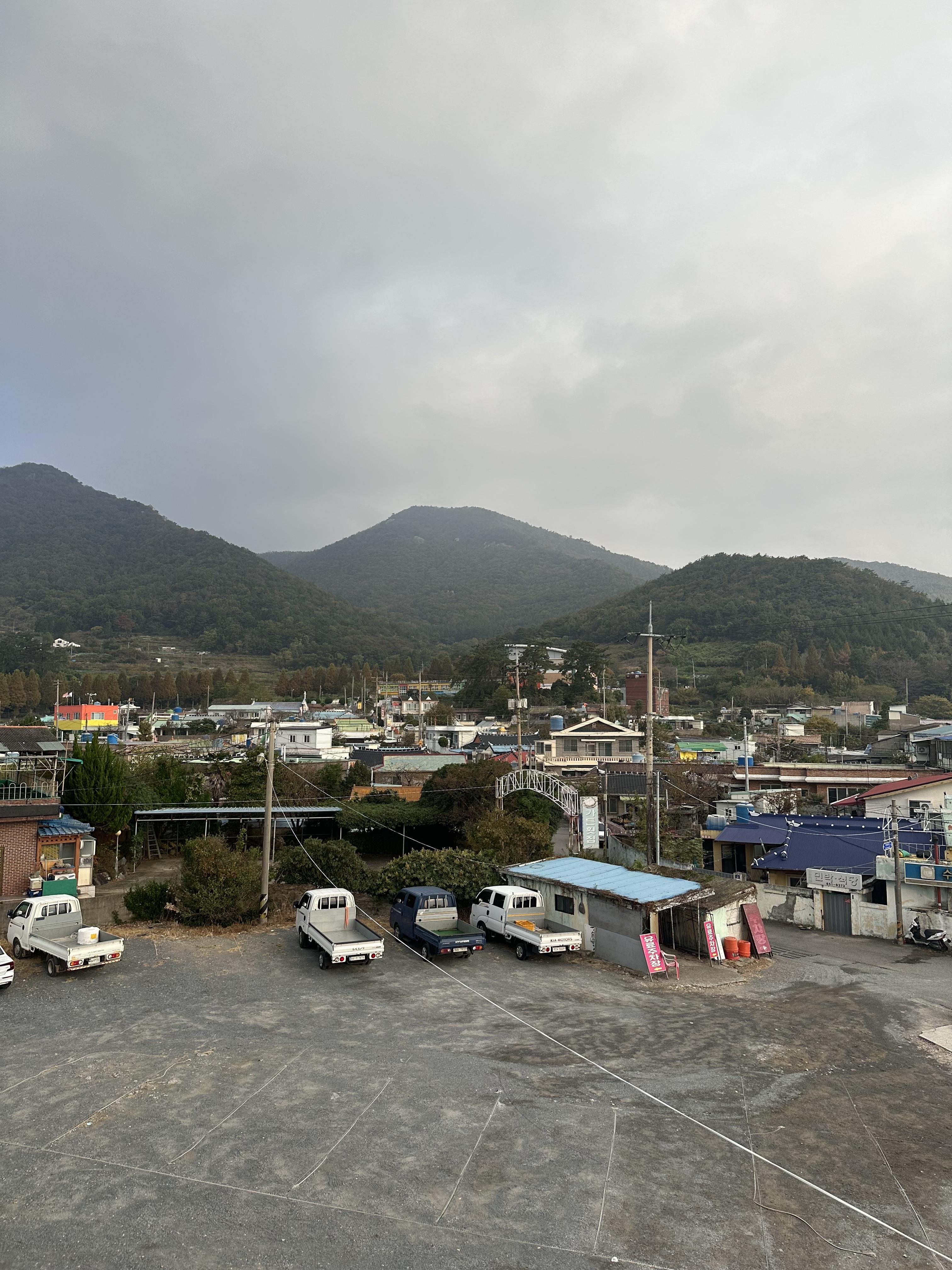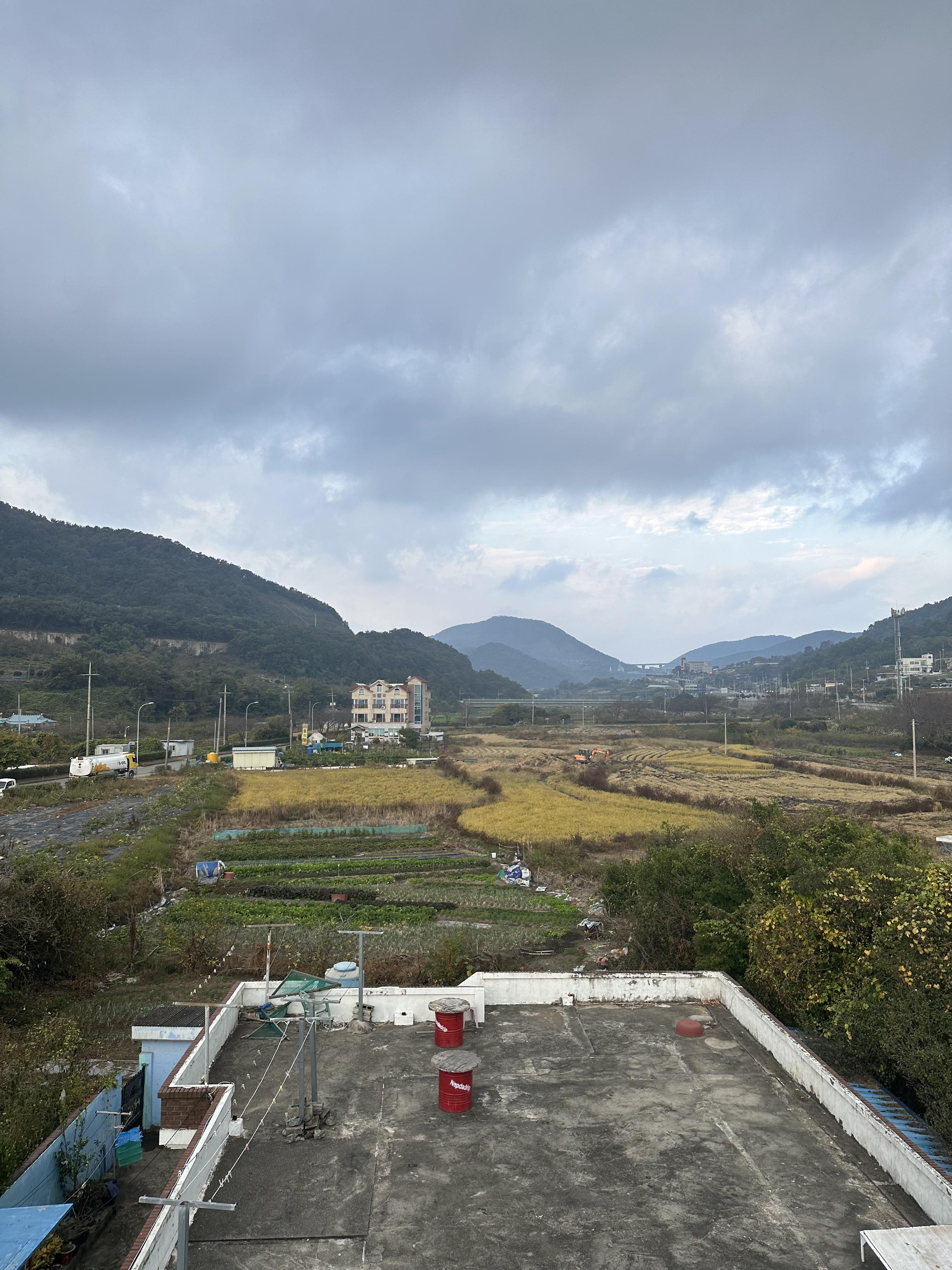 아침에 일어나서 바라본 여수 모모펜션입니다. 밤에는 어둡지만 검은모래해변에서 여수 밤바다에 분위기가 느껴졌다면 아침에는 또 다른 분위기가 느껴졌습니다. 여수 모모펜션이 위치한 곳은 여수 시내와 떨어진 시골이기 때문에 조용한 자연속에서 힐링되는 기분이었습니다. 여수 모모펜션 뒤로는 논과 밭이 있고 높은건물보다는 시골에서 흔히 볼 수 있는 집과 학교가 있었습니다.