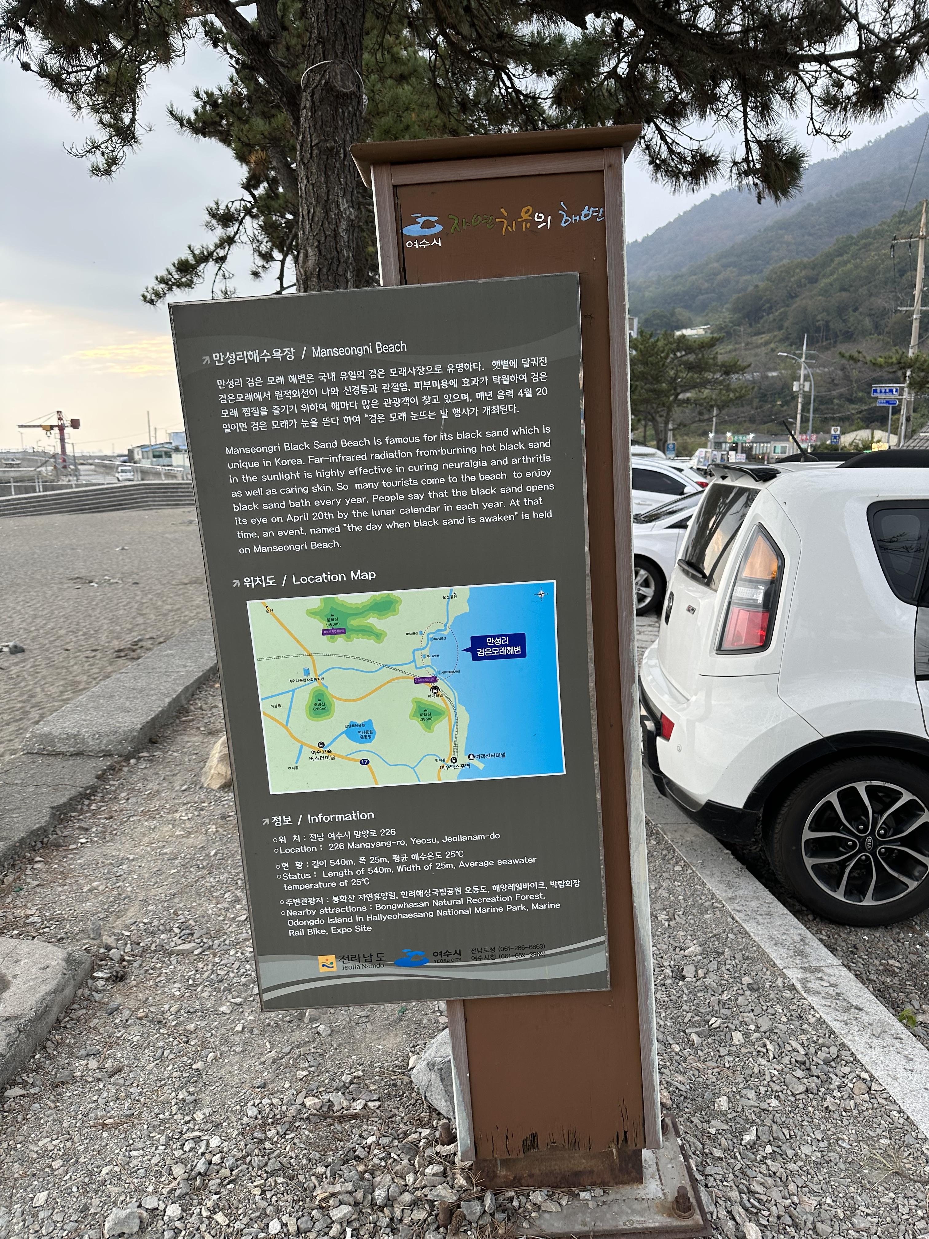 조용한 검은모래해변, 주정차 하는 공간도 적지만 뭔가 복잡하지 않고 조용하게 차량들이 빠져나가는 모습을 보니 신기했습니다. 여행을 하면서 피곤해지는 이유가 있다면 사람이 많아서 일 수도 있는데요. 단순히 사람이 많아서 피곤해지기보다는 많은 사람속에서 서로 양보하지않거나 너무 많은 관광객들도 인해 대기가 길어지는 그런문제가 있던 것 같습니다. 그래서 혼자서 쉬는 여행은 주말보다도 평일에 하는 힐링이라는 말이 사실인 것 같습니다. 여수 검은모래해변은 주말에도 많이 혼잡하고 복잡하지 않아 조용했습니다. 이런 모습들이 유지되었으면 좋겠습니다.