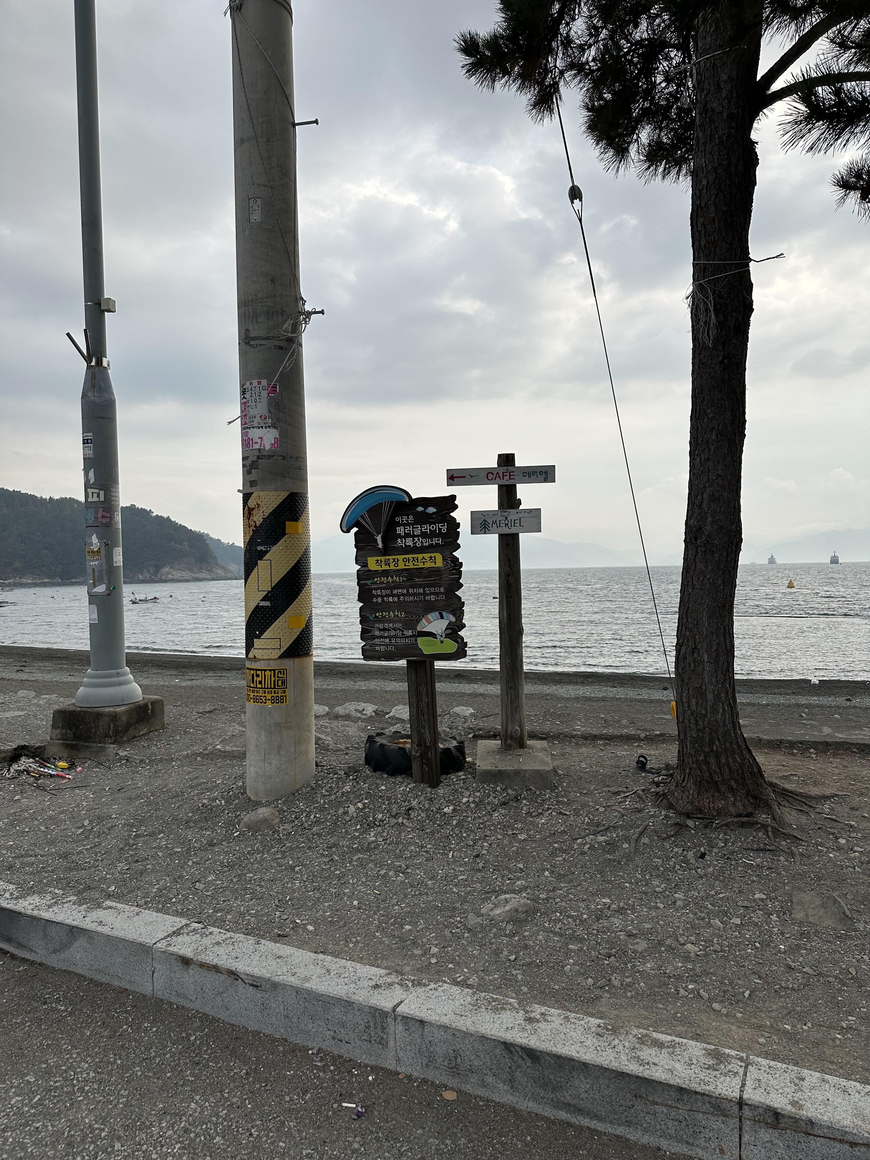 여수 모모펜션 옥상에서 내려와 검은모래해변 주위를 보기로 했습니다. 몰랐던 사실 중 하나는 이곳 검은 모래 해변은 패러글라이딩 착륙장이라고 합니다.