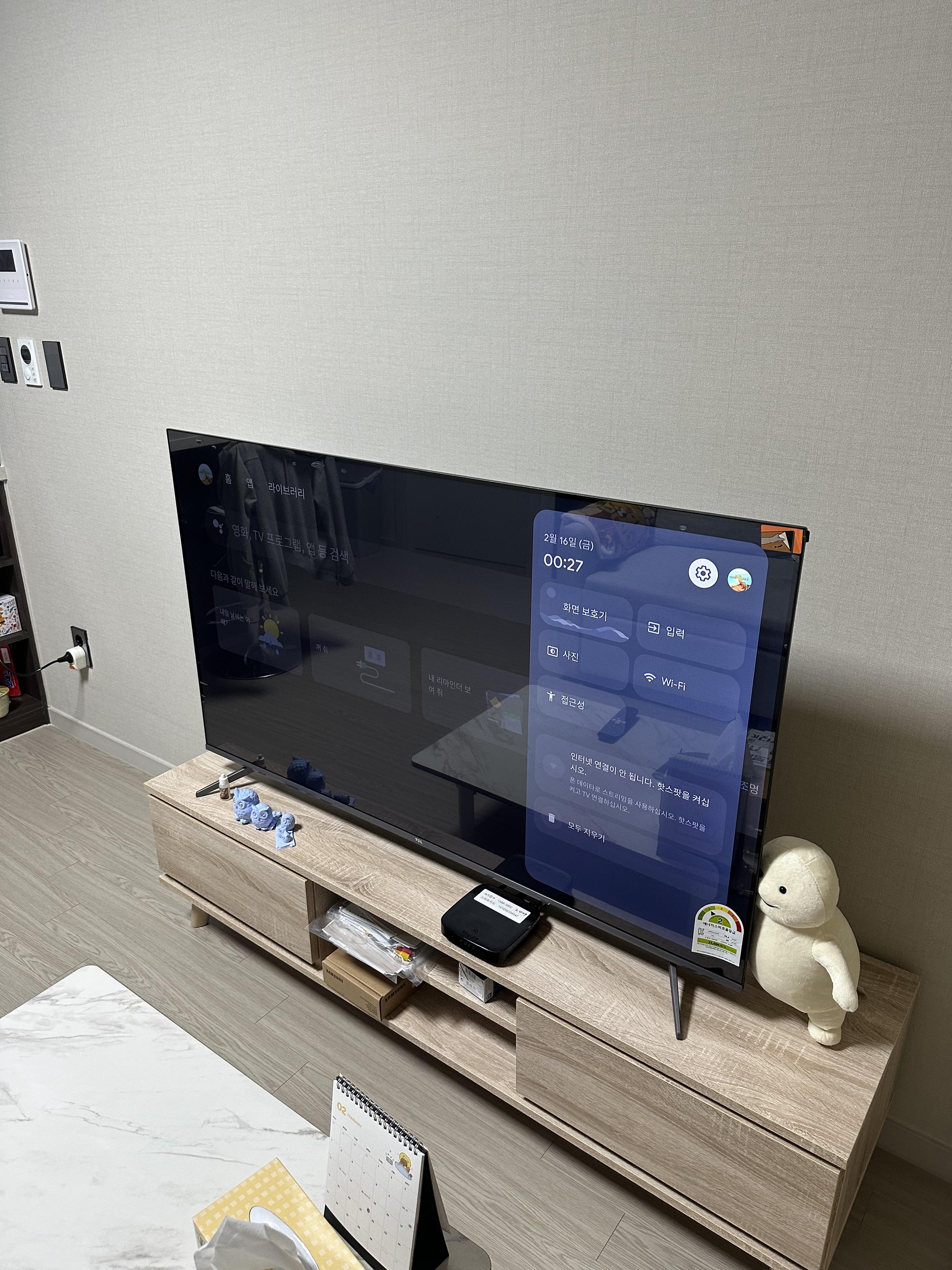 스마트 티비에는 액정을 보호할 수 있도록 액정 보호 필름이 붙어져있었습니다. 저는 구매하고 나서 보는데 문제가 없어서 계속 붙이고 있었는데요. 아마 떼면 화면이 더 선명하게 보일 것 같지만 왠지모르게 떼고 싶지 않더라구요. 그래서 9월 8일에 주문 후 6개월이 되어가는데도 떼지도 않고 있습니다.