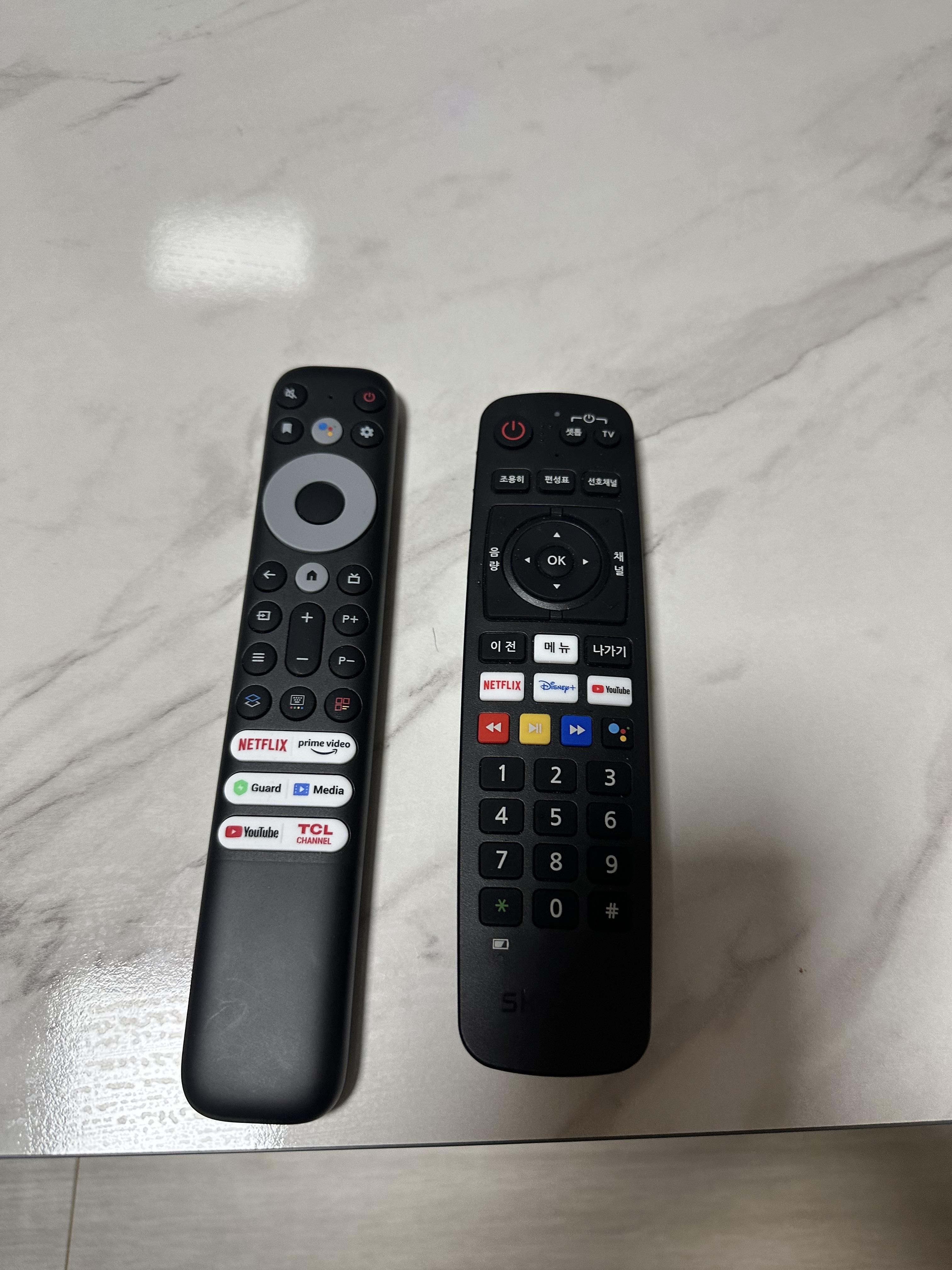 아파트나 오피스텔에서 인터넷 설치를 신청하면 리모컨을 주게 됩니다. TCL 스마트 티비와 인터넷 설치 시 받은 리모컨의 차이는 인터넷 셋톱박스를 제어하는데도 사용 할 수 있습니다. 우측의 리모컨이 셋톱박스도 함께 제어 할 수 있습니다. 그런데 두개의 리모컨을 사용하려고 하면 몇가지 문제 점이 생깁니다.