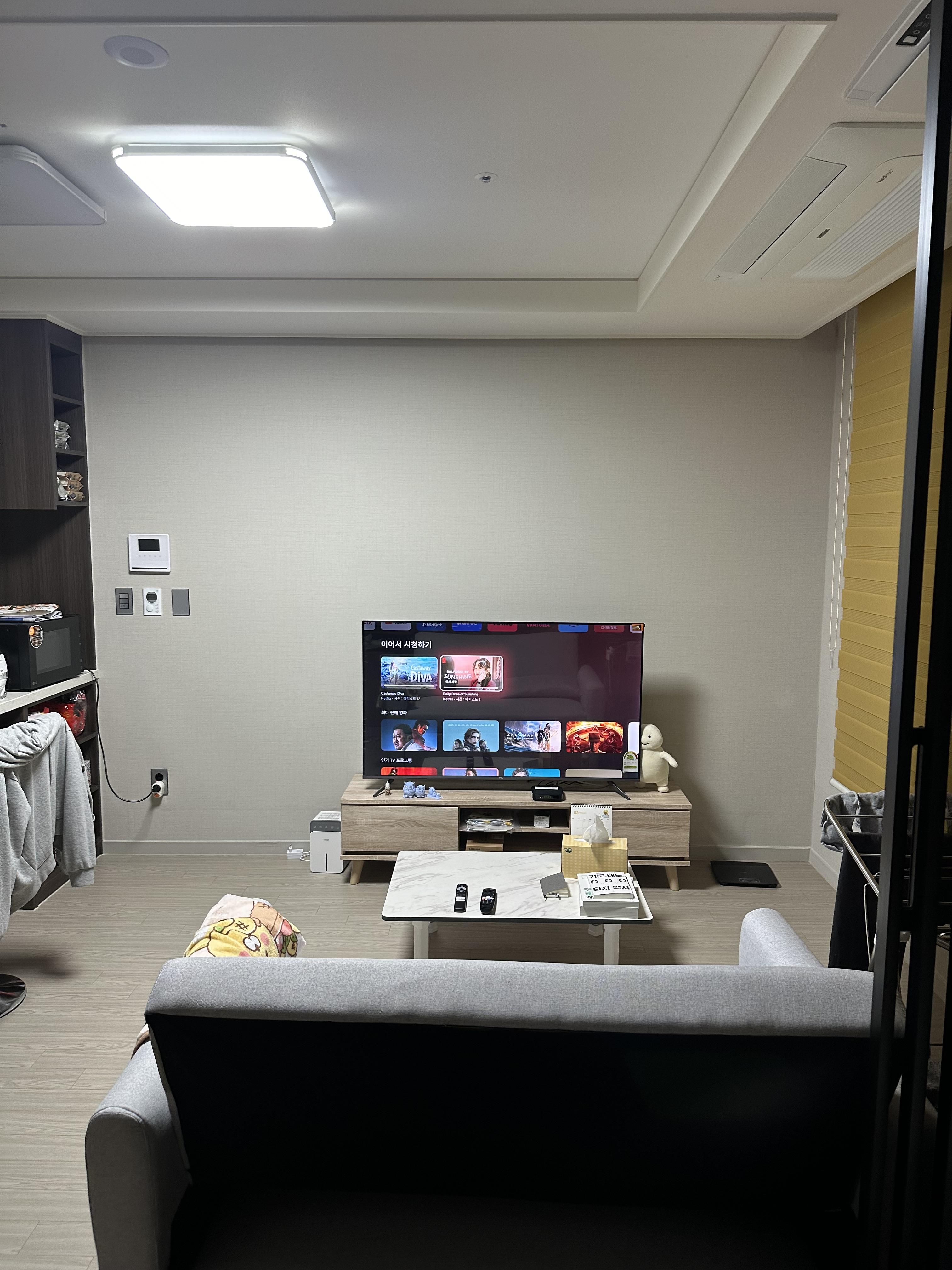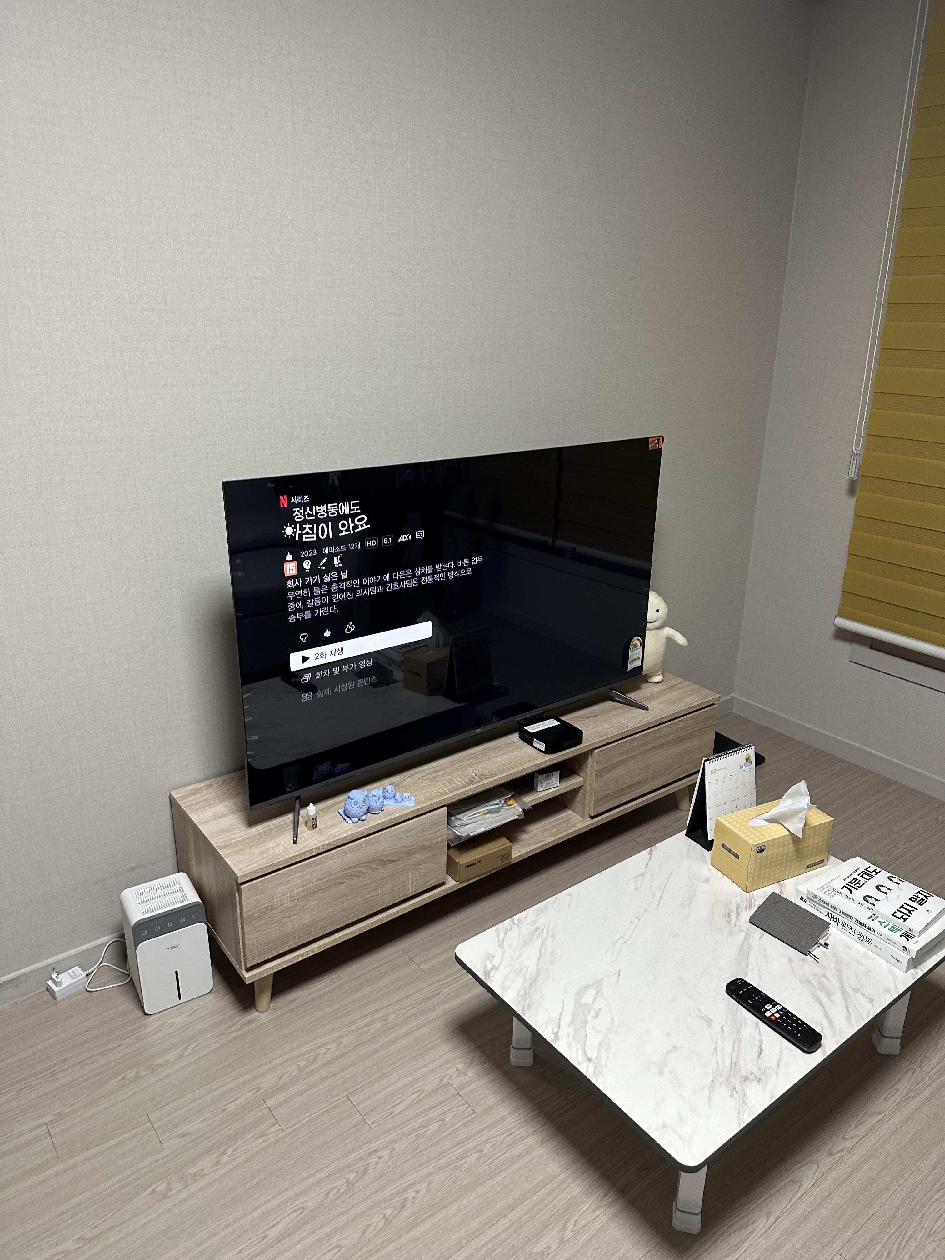 혼자 사는데 티비가 왜 필요하냐고 생각할 수도 있는데요. 요즘에 노트북, 스마트폰, 테블릿이 있다 하더라도 그래도 영화를 보거나 드라마는 큰 화면에서 보는게 좋다고 생각해요. 작은 화면에서 보면 목도 아프고 눈아프고 건강을 해칠 요소가 너무 많더라구요.