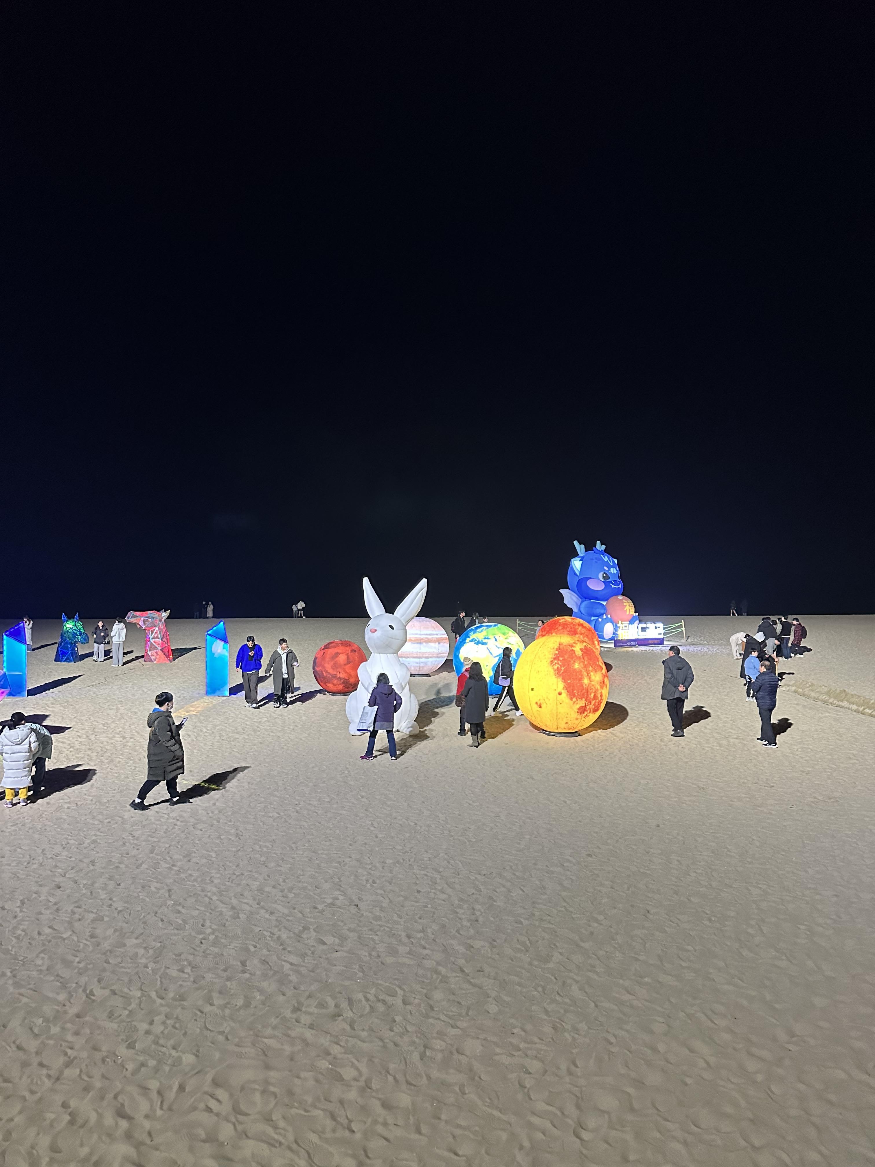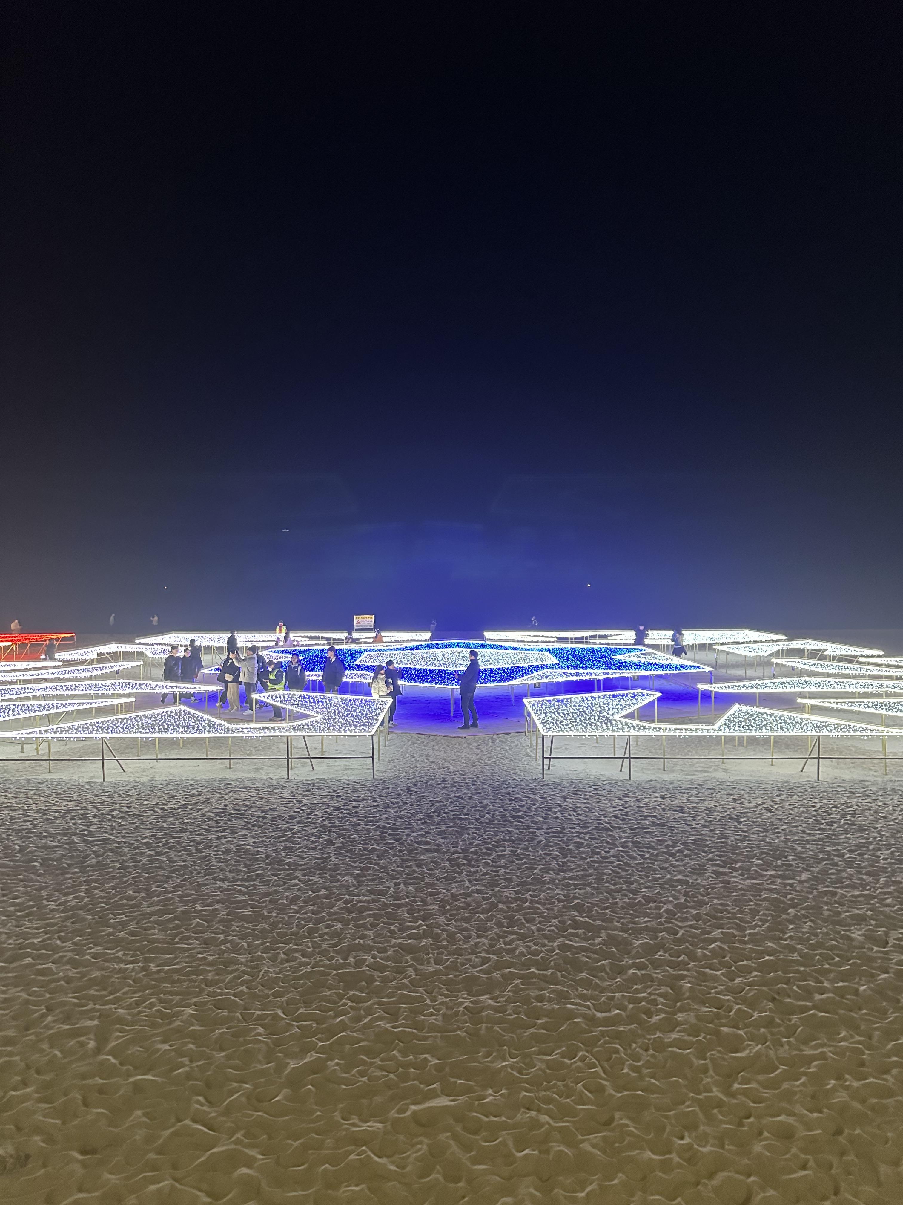 보통 해수욕장이라고 하면 어두워지면 바다가 보이지 않는데요. 밤이 되므로 보이지 않아 바라보는 그 자체로 사람마다 다양한 느낌과 또는 힐링도 함께 할 수 있는데요. 그런데 이렇게 빛축제를 통해 조형물이 설치되다보니까 사람들이 앞에 다가가서 사진도 찍는 모습을 볼 수 있습니다. 특히나 연말이다보니 가족, 친구, 연인과 함께 온 사람들이 많이 보였습니다. 그리고 조형물속에서 사진을 찍으며 추억을 남기고 있었습니다. 해운대 빛축제는 해운대 뿐만 아니라 다른 지자체에도 유사하게 볼 수 있었던 것 같습니다. 여수 엑스포 앞에도 야간이 되면 아름다운 조형물이 있었습니다. 강원도 속초 해수욕장 앞에도 빛 조형물이 있었습니다.