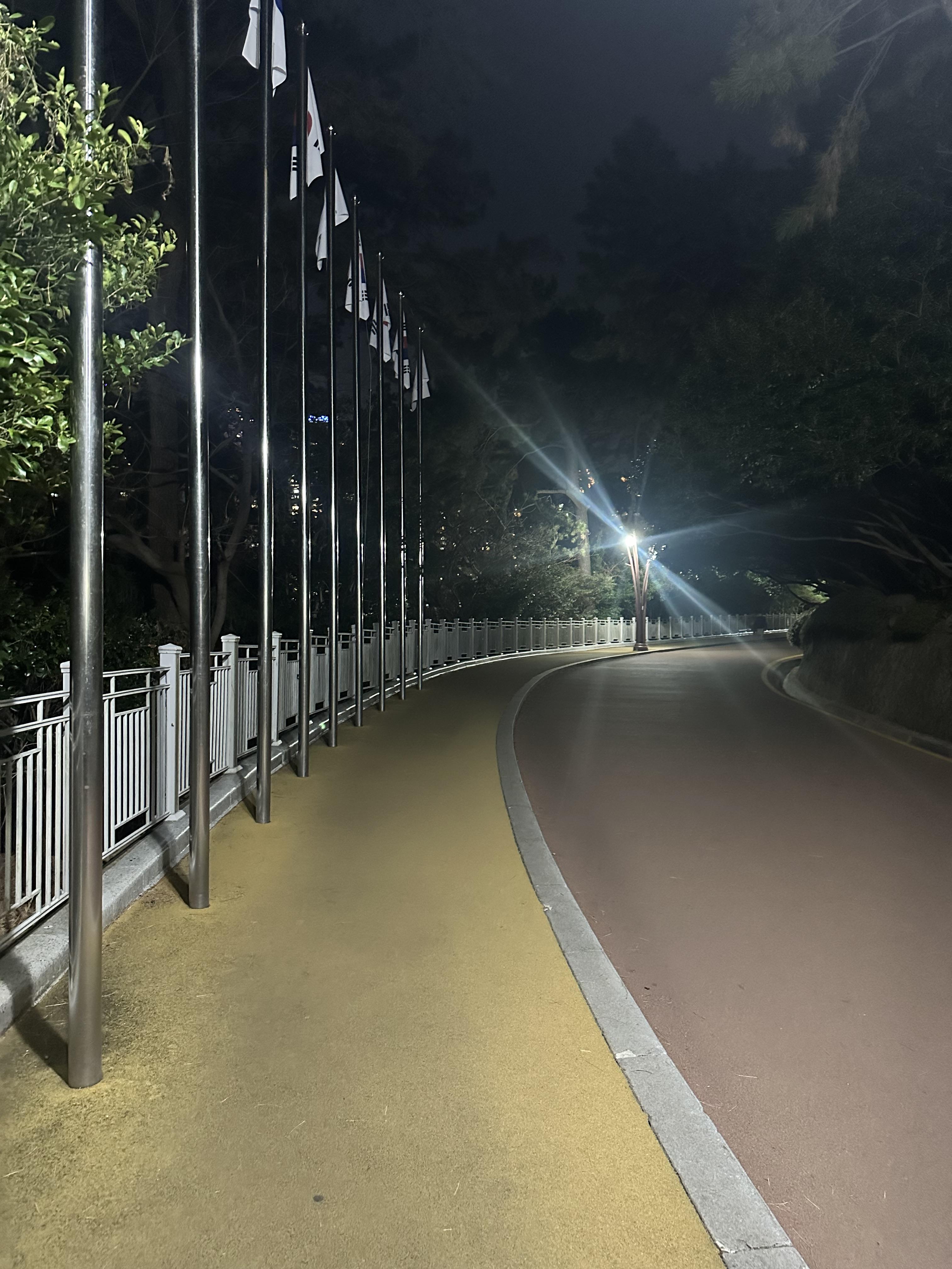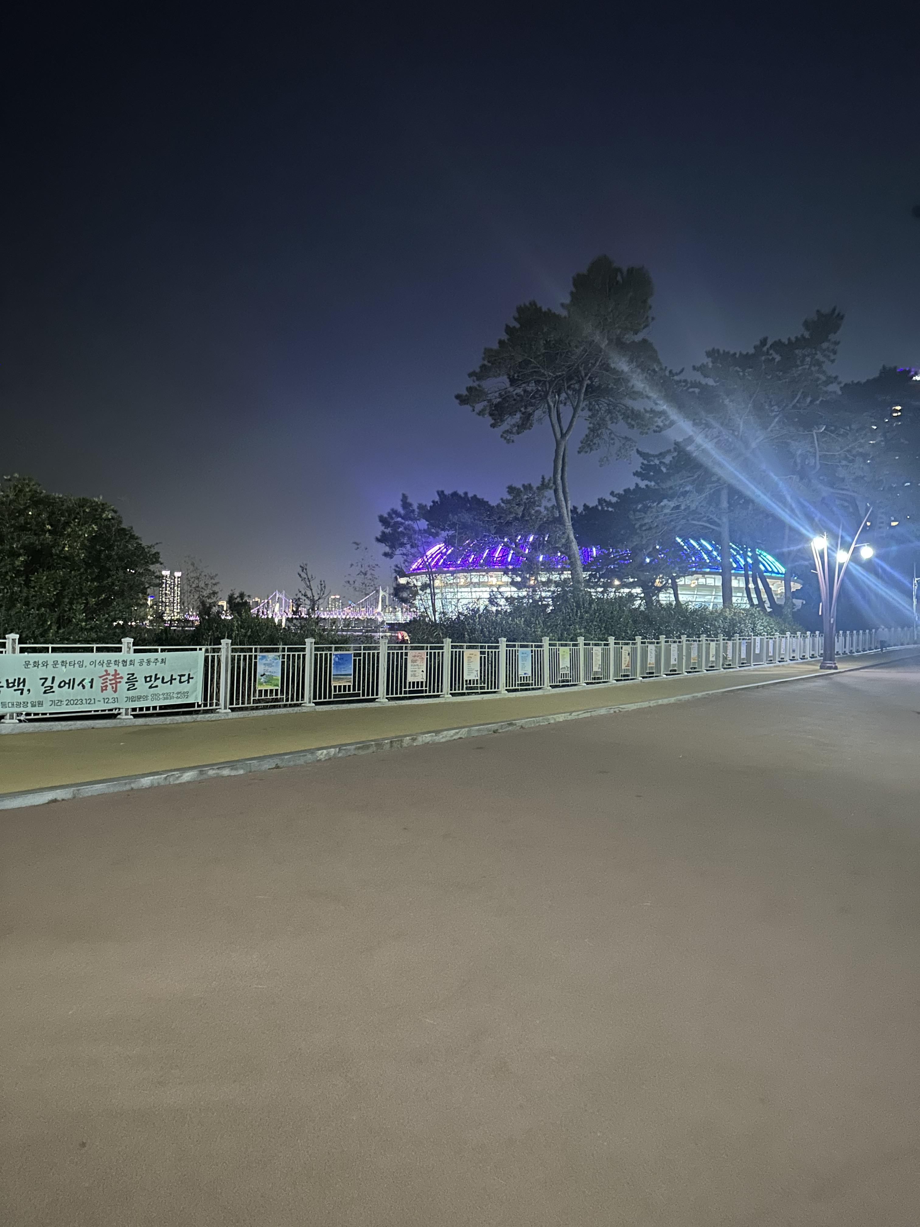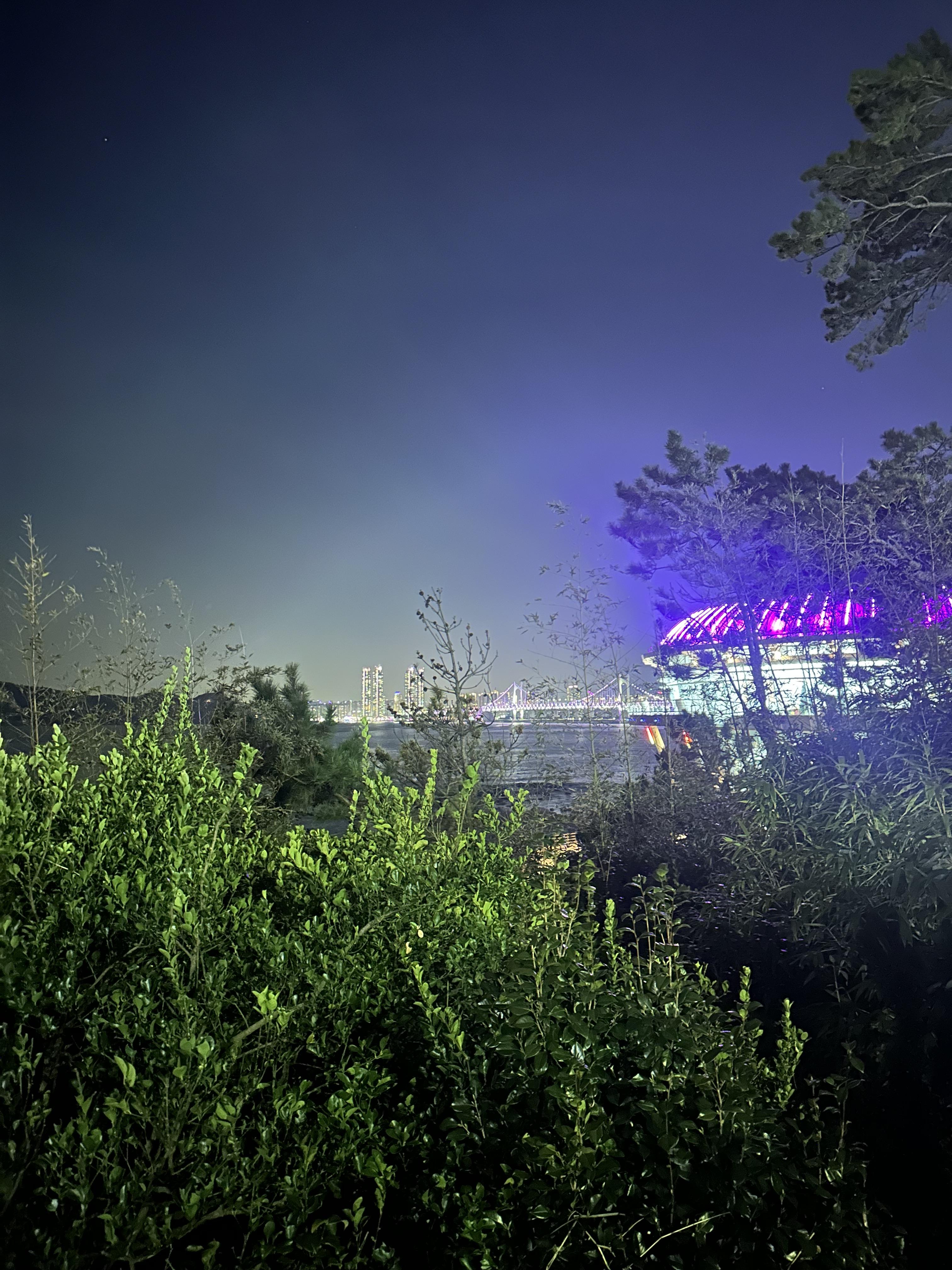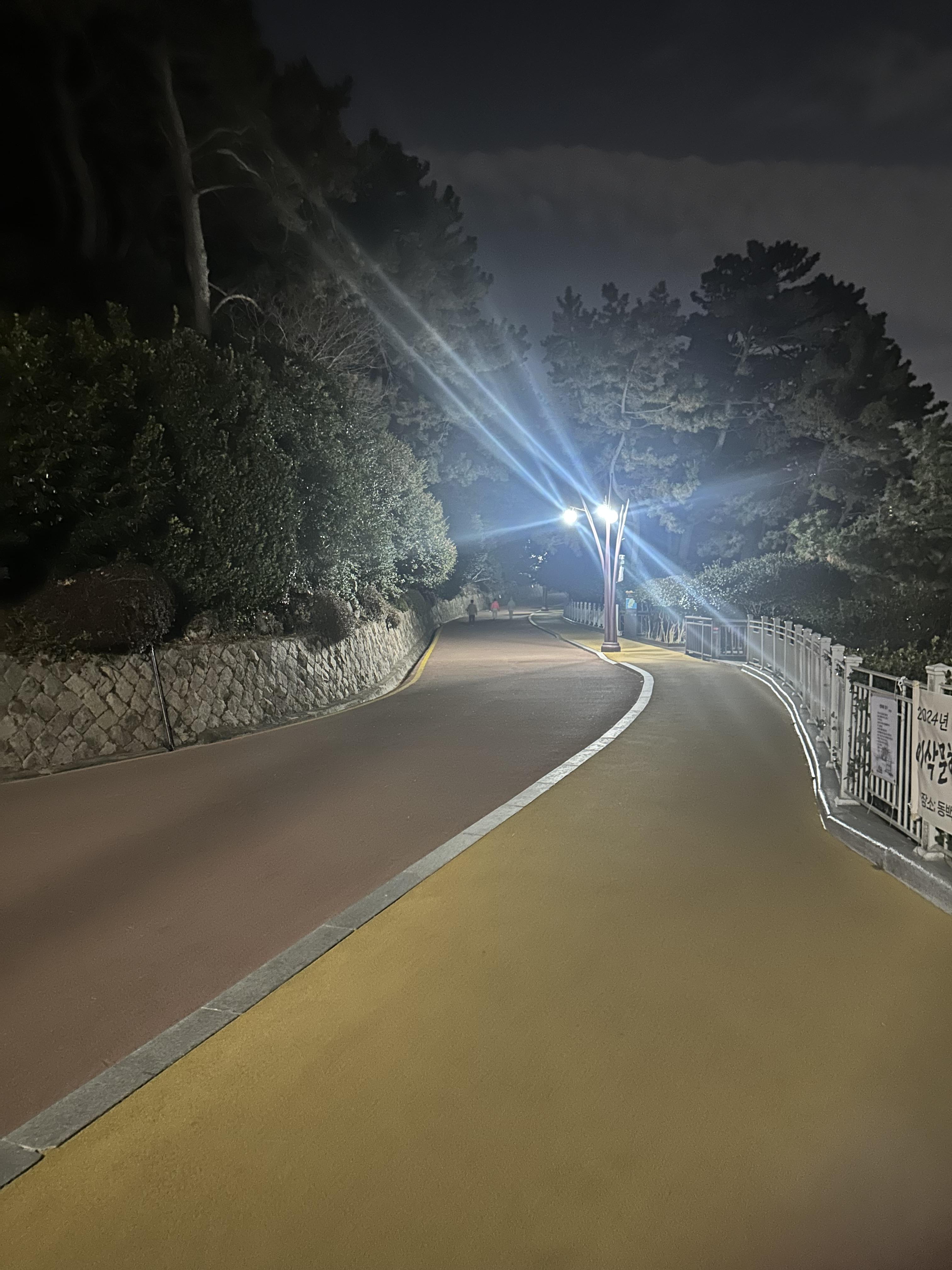해운대 해수욕장을 지나 동백섬으로 올라가면서 찍은 사진입니다. 해운대 해수욕장 가까이에서는 잘 몰랐는데요. 동백섬 오르면서 보이는 해운대 밤바다는 여수와도 비슷한 분위기였습니다. 바다는 다 밤이 되면 어둡고 조용한거 같습니다. 다만 해운대에는 높은 건물들이 있고 건물들에서 나오는 빛이 여수와는 다른 분위기인 것 같습니다.