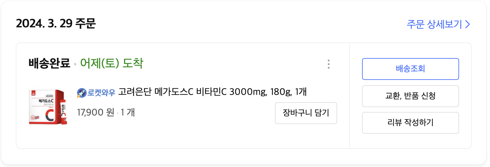 쿠팡 로켓배송으로 비타민C 구매! 고려은단 메가도스C 비타민C 3000mg 쿠팡 로켓배송 구매 후기