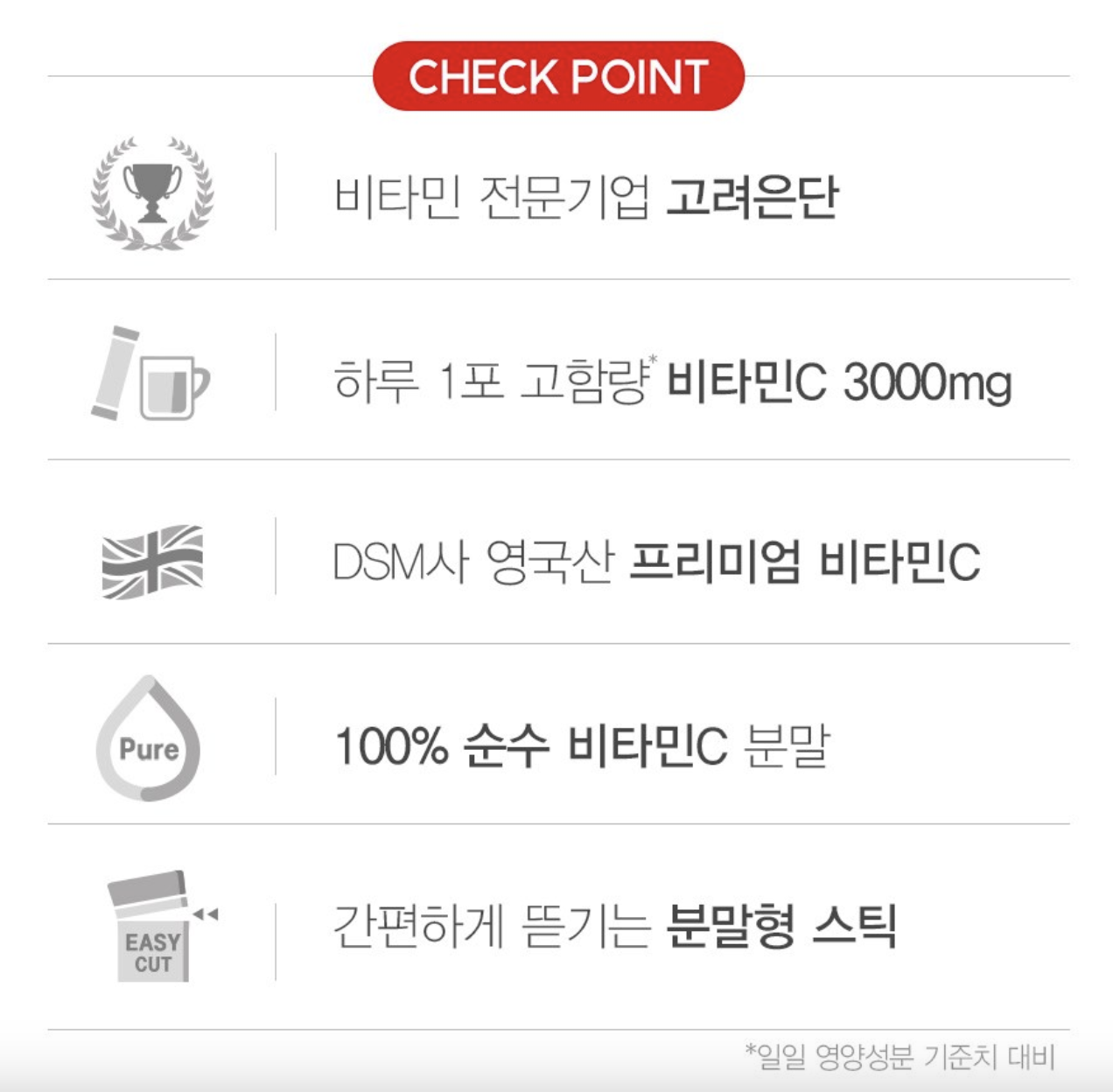 - 세계적인 비타민 전문기업 DSM사의 영국산 비타민C 원료만을 사용합니다.