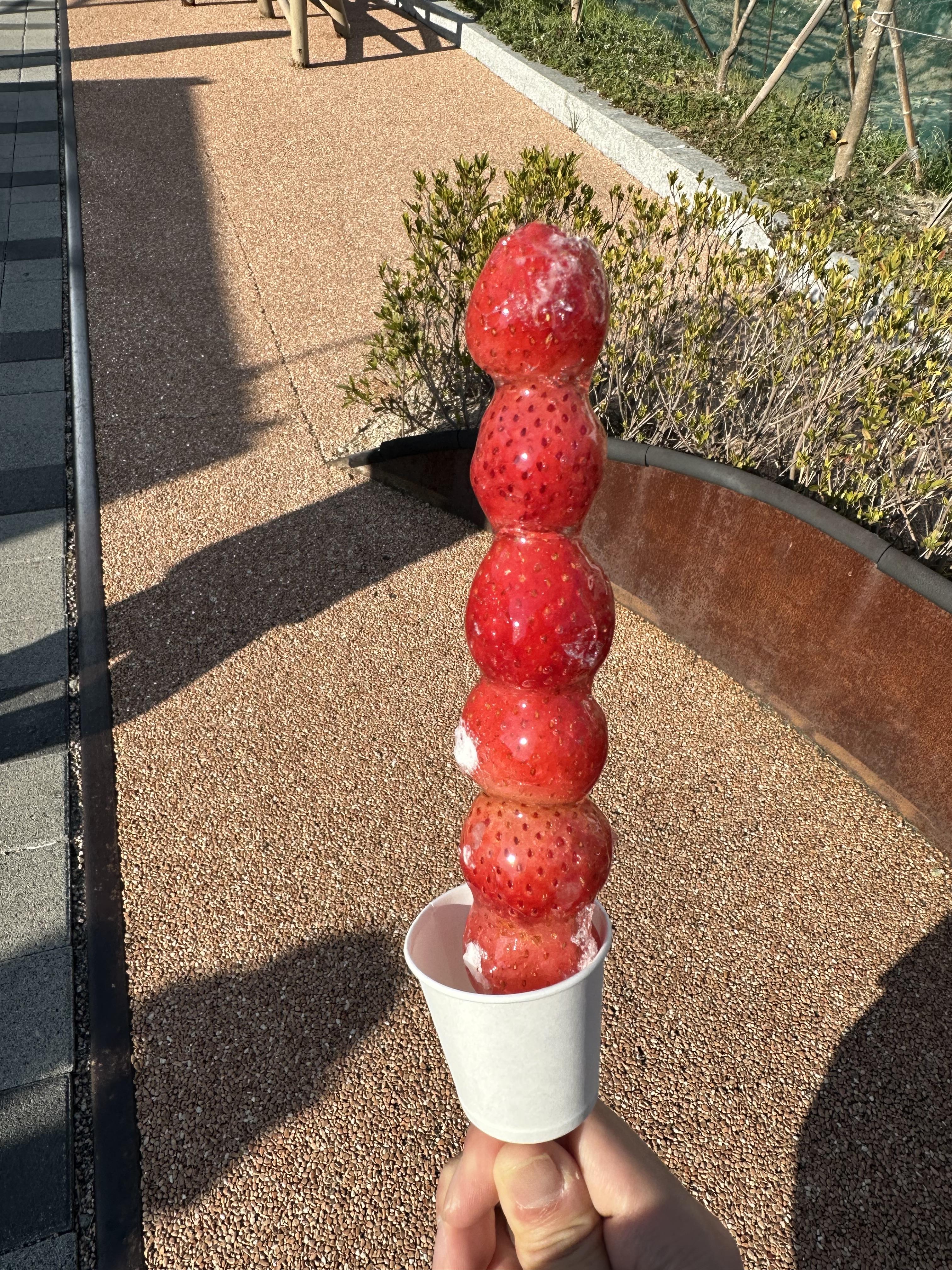 탑승까지 시간이 남아서 해운대블루라인파크 공원앞에서 탕후루 하나를 구매해서 먹었습니다. 탕후루 한번 먹으면 정말 달고 맛있는데요. 너무 달아서 맛있기 때문에 중독성도 있어서 먹고나서 제대로 양치 안할 경우 충치 생기기 너무 좋더라구요. 그래서 먹을 때는 맛있어서 좋았는데 먹고나서는 충치 걱정되더라구요. 설탕 덩어리라 반드시 먹고나서 양치 또는 물이나 가글 헹구시는 것을 추천합니다.