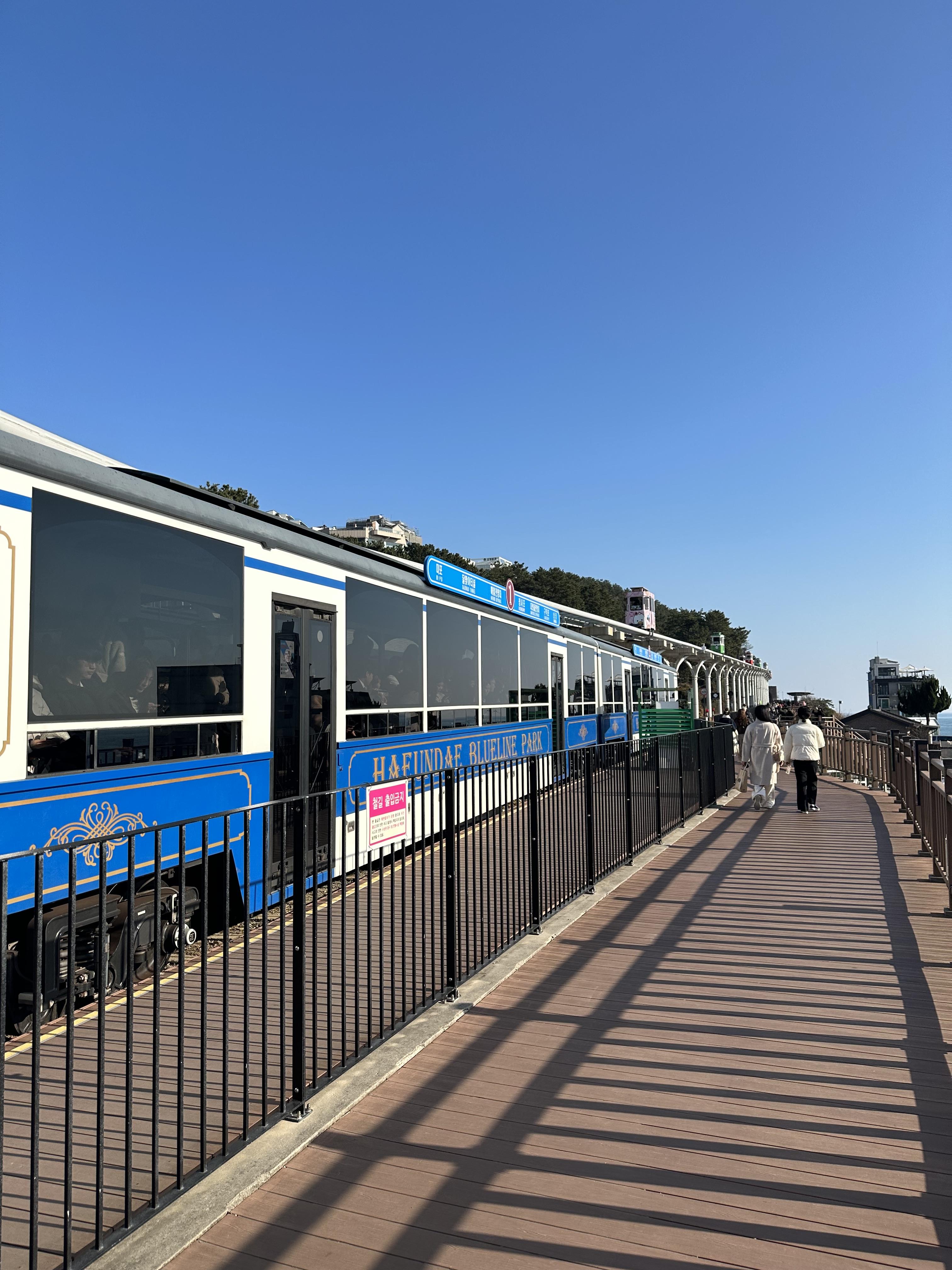 - 해변열차는 열차라는 이름처럼 여러명이 탑승하는 열차이며, 선로를 통해 송정정거장까지 운행을 합니다.