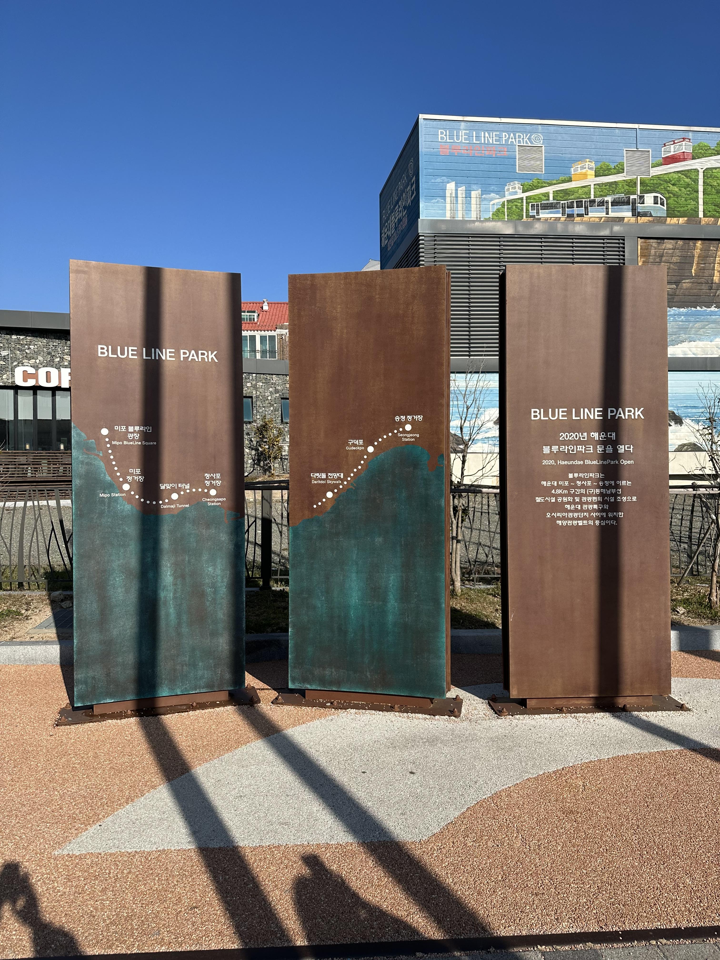 블루라인파크 초입 부분에는 기존 동해남부선 선로의 흔적을 남겨놓았습니다. 원래 선로에는 돌맹이가 있는데요. 지금은 사람들이 걸을 수 있는 도보와 외곽만 남겨놓은 것을 볼 수 있습니다.