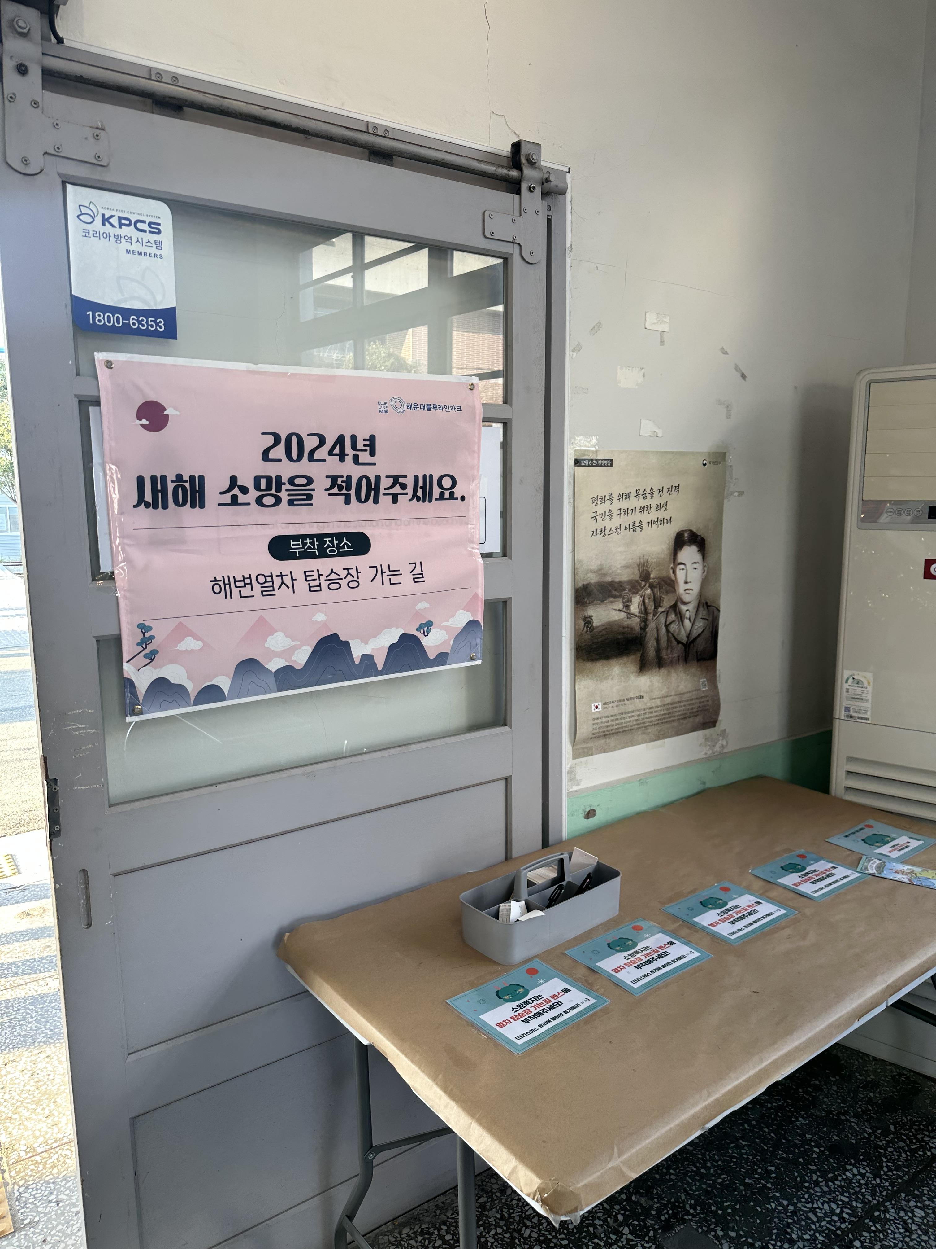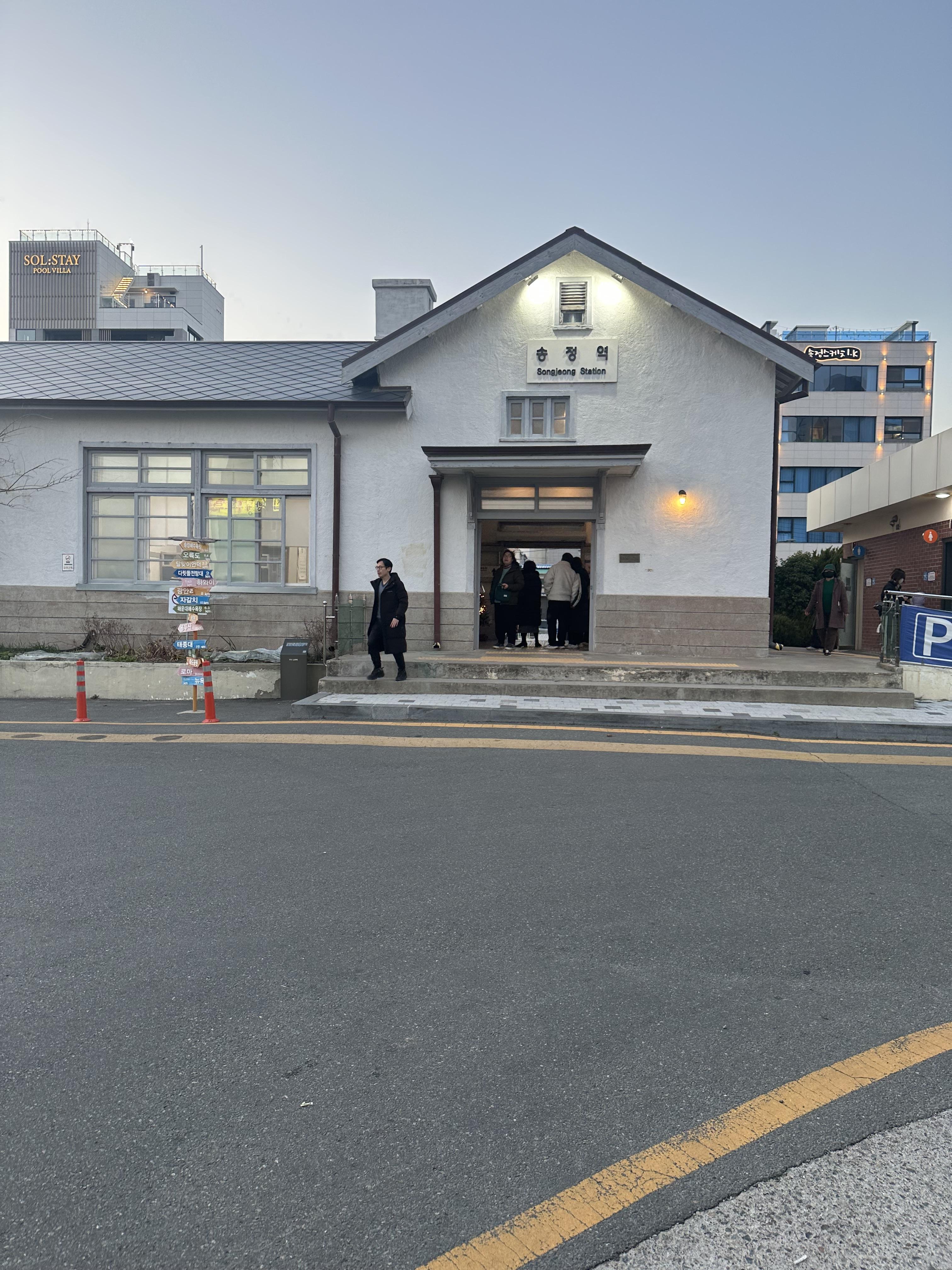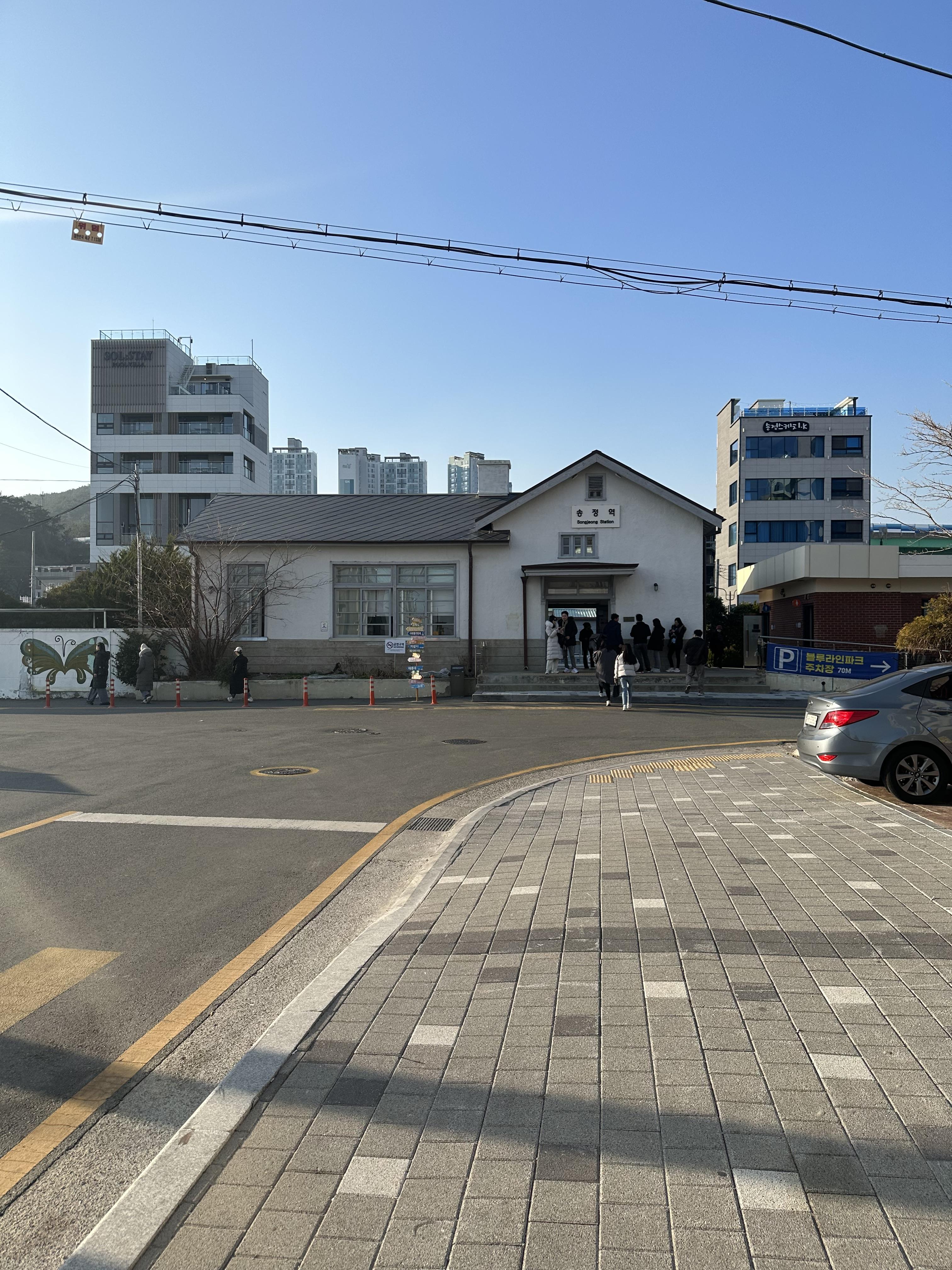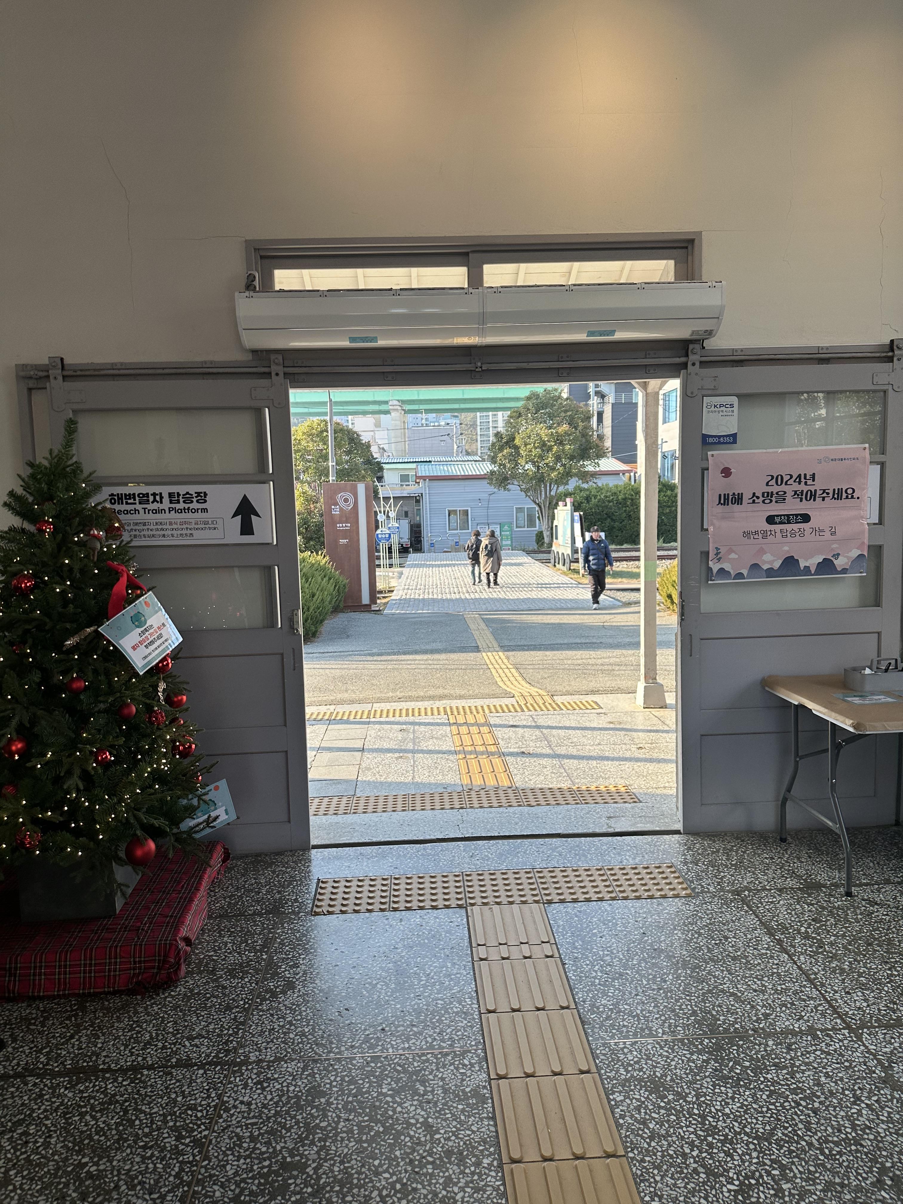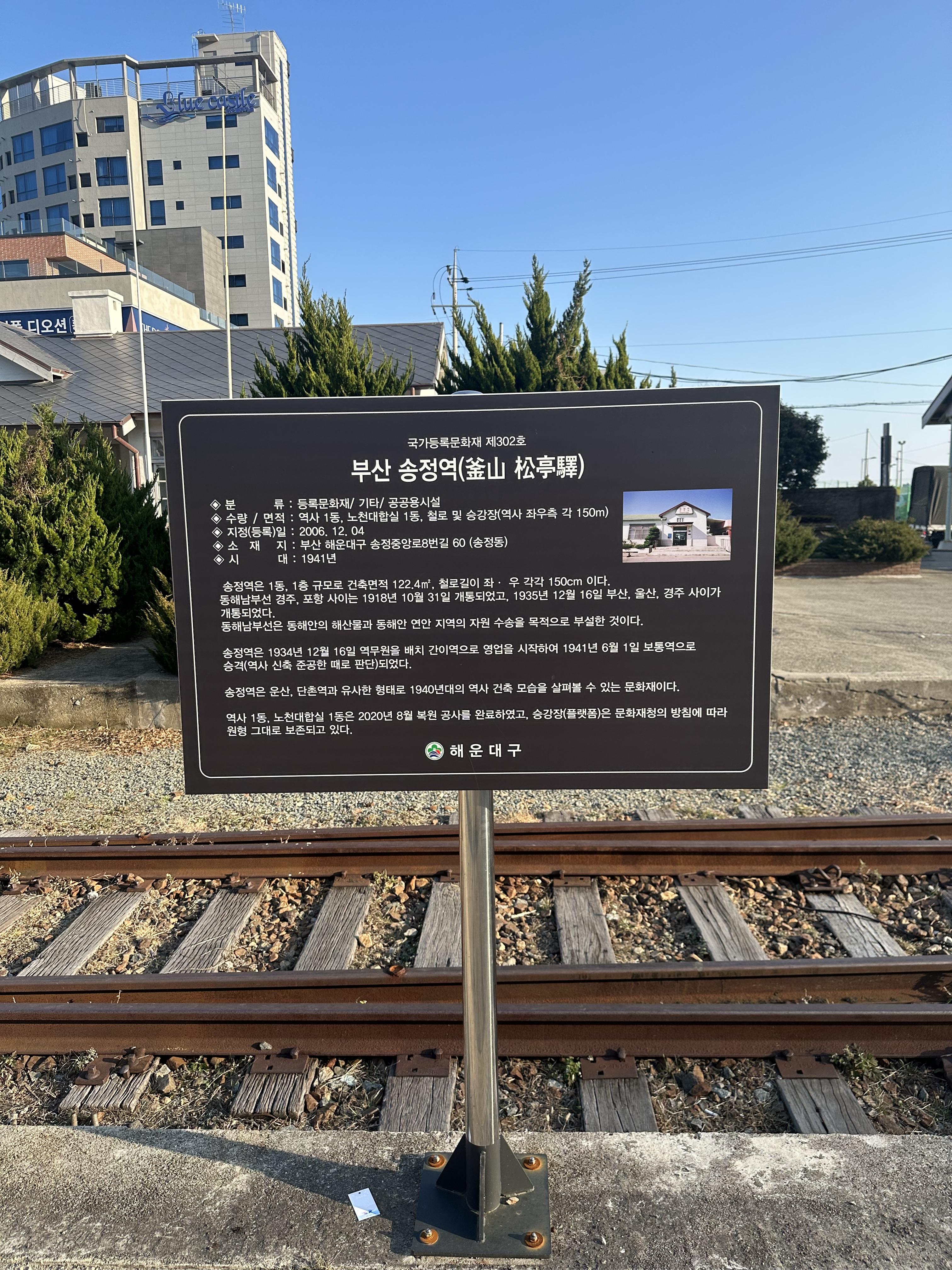 구 송정적은 현재 해운대블루라인파크 송정정거장 역할을 하고 있습니다. 구 송정역 건물은 그대로 유지하며 해운대 블루라인파크 송정정거장의 매표소 역할을 하고 있습니다. 건물 옆에는 화장실이 있구요. 송정정거장의 경우 구 동해남부선 송정역을 그대로 복원하여 해운대 블루라인파크 정거장 역할을 하고 있었습니다. 당시 크리스마스가 지난 시점에 새해가 다가오고 있어서 송정역 역사에는 새해 소망 쪽지를 적어서 송정정거장 내부에 관광객들이 붙이고 있었습니다.