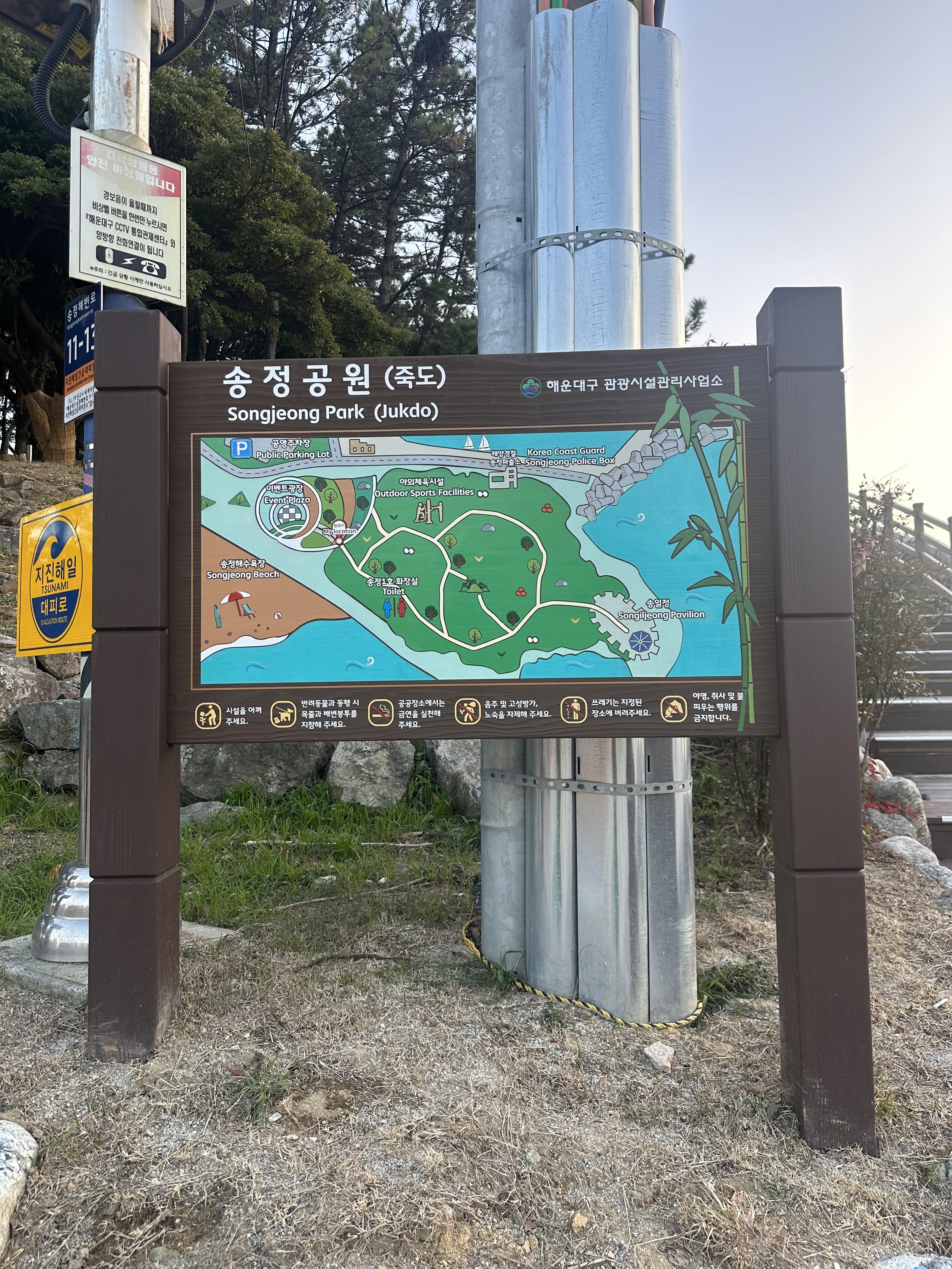 송정해수욕장에서 기장방향으로 보면 해수욕장 끝에 정자가 하나 보입니다. 정자가 위치한 곳은 죽도공원이라고 불립니다. 다만 2022년 계획하고 온 것은 아니지만 당일치기 여행으로 부산으로 힐링여행왔는데요 일몰시간에 정자에 앉아 있는데 너무 이쁘더라구요. 특히 정자앞에서 바다를 보는데 가슴이 뚫리는듯한 기분까지 들었습니다. 만약 힐링하고 싶다면 해운대블루라인파크 해변열차를 일몰시간에 맞춰서 타고오신다면 좋을 것같습니다. 당연히 일출도 멋질거 같습니다.