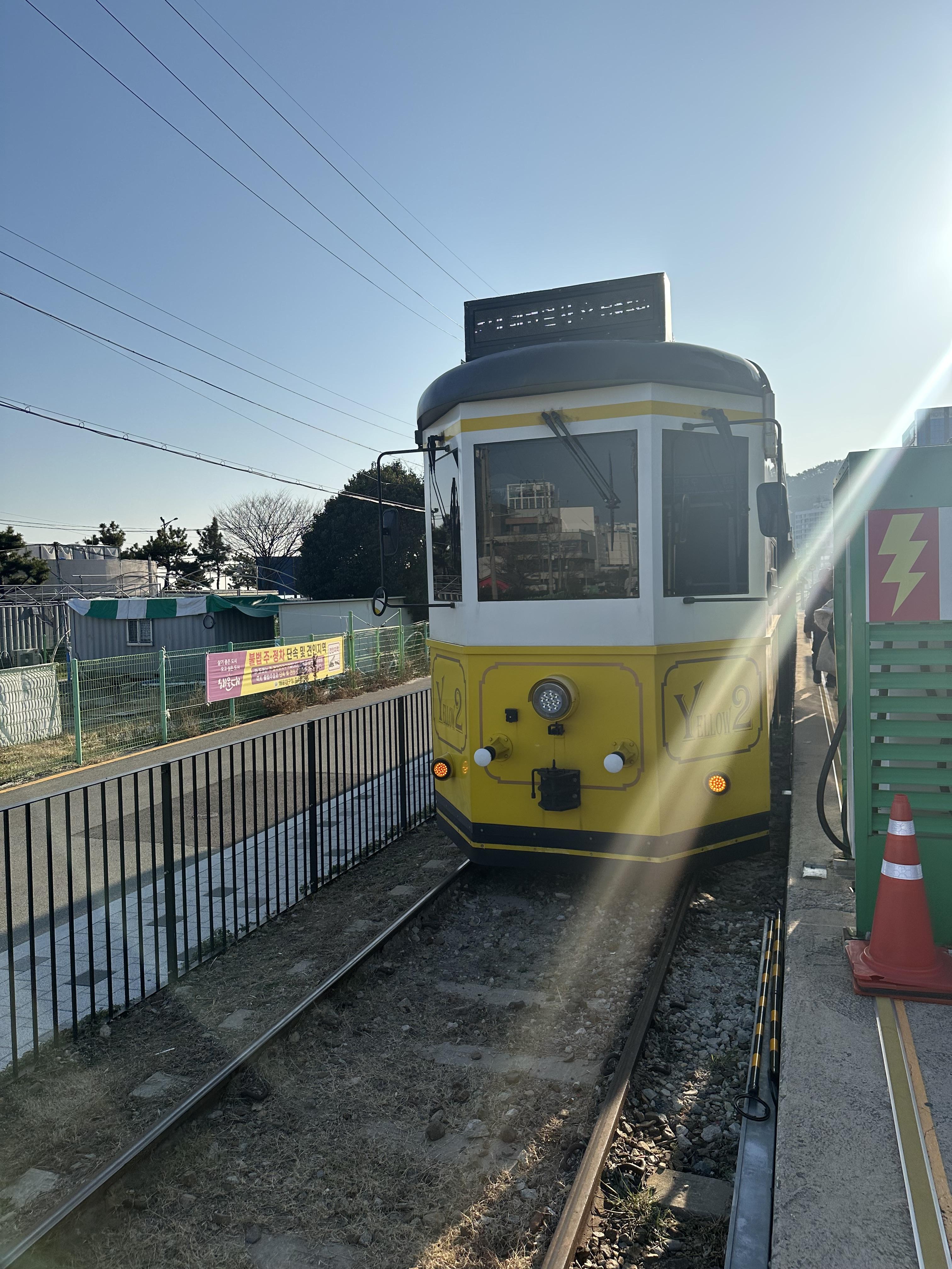 - 해변열차는 열차라는 이름처럼 여러명이 탑승하는 열차이며, 선로를 통해 송정정거장까지 운행을 합니다.