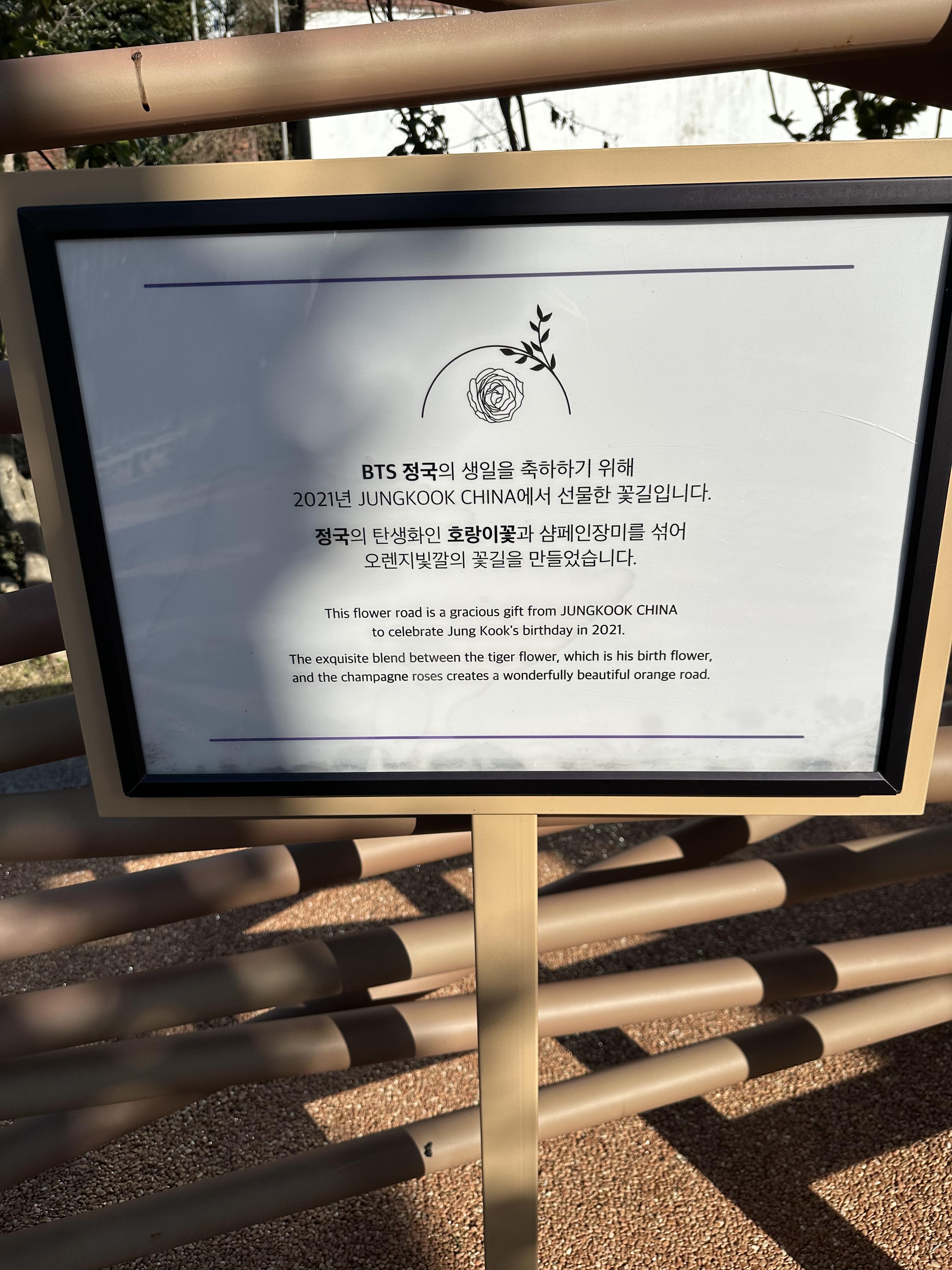 - BTS 정국의 생일을 축하하기 위해 2021년 JUNGKOOK CHINA에서 선물한 꽃길이라고 해요.