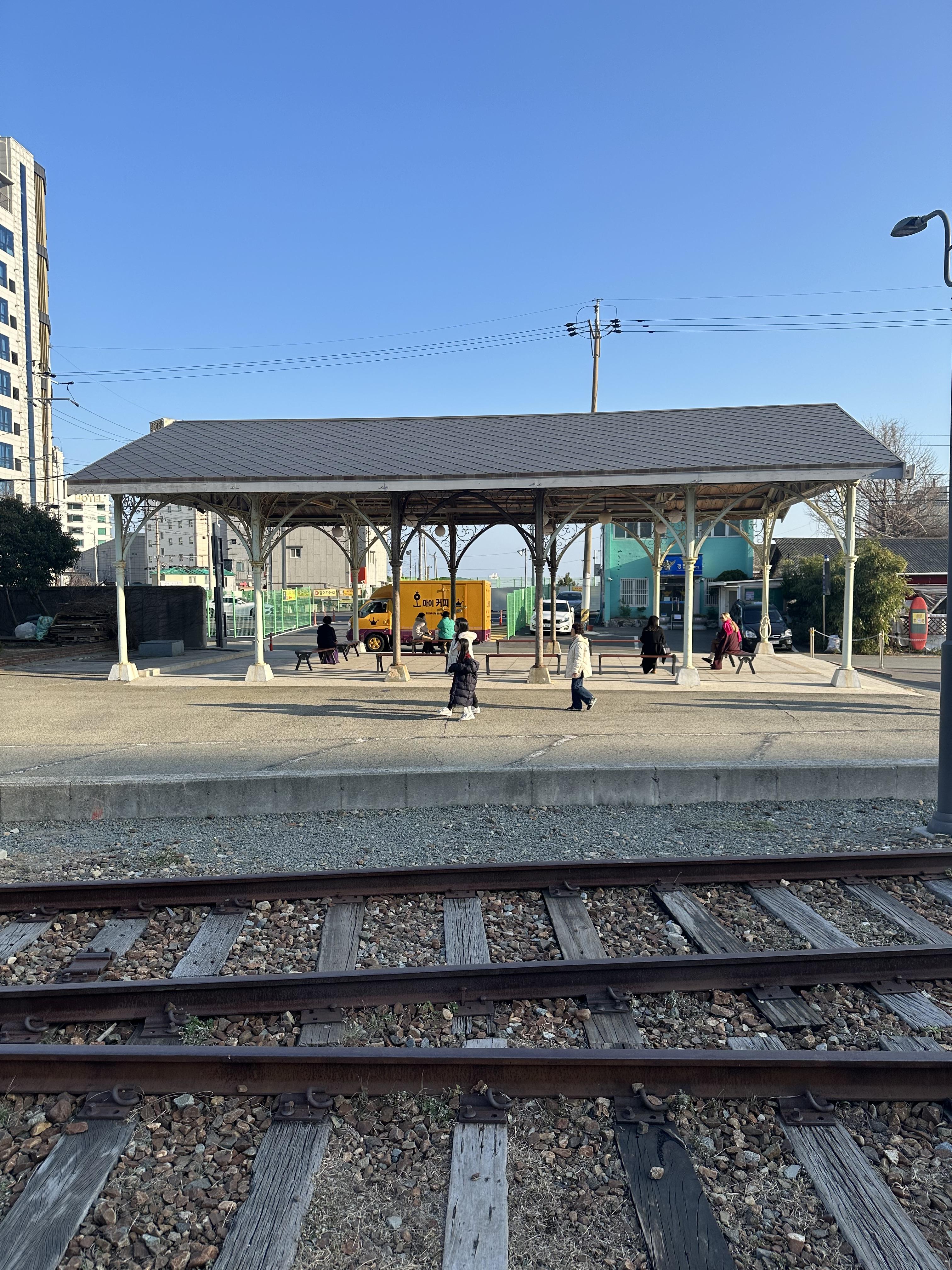 송정역에 도착해서 주변을 보았습니다. 미포정거장의 선로는 옛 동해남부선의 선로가 유지 되지 않아 추억을 느끼기에는 어려웠는데요. 송정 정거장의 경우 구 동해남부선의 선로까지 그대로 보존되어있었습니다. 다만 당시 디젤기관차의 모습과는 다르게 전기 충전시설이 보였습니다.