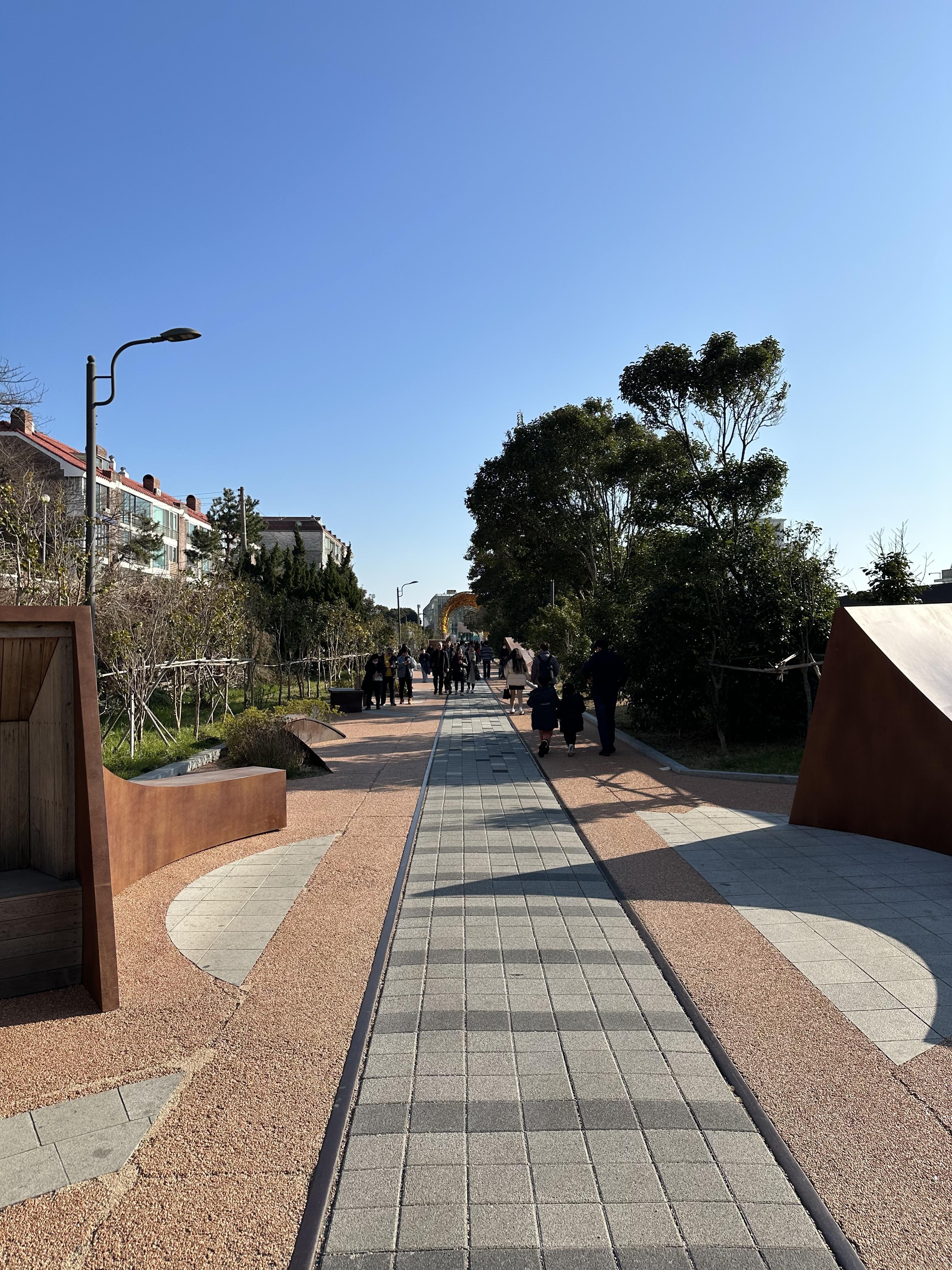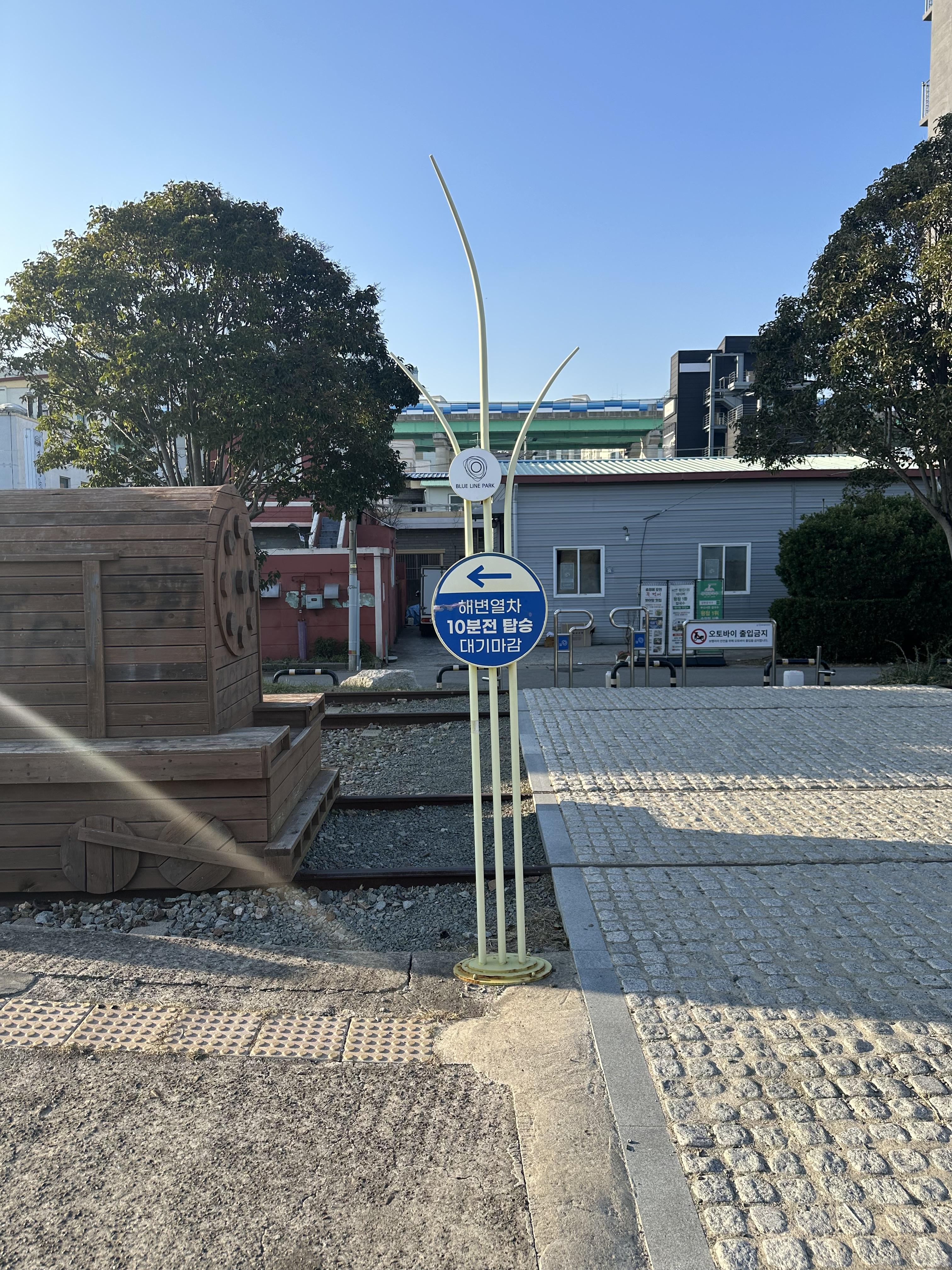 블루라인파크 초입 부분에는 기존 동해남부선 선로의 흔적을 남겨놓았습니다. 원래 선로에는 돌맹이가 있는데요. 지금은 사람들이 걸을 수 있는 도보와 외곽만 남겨놓은 것을 볼 수 있습니다.