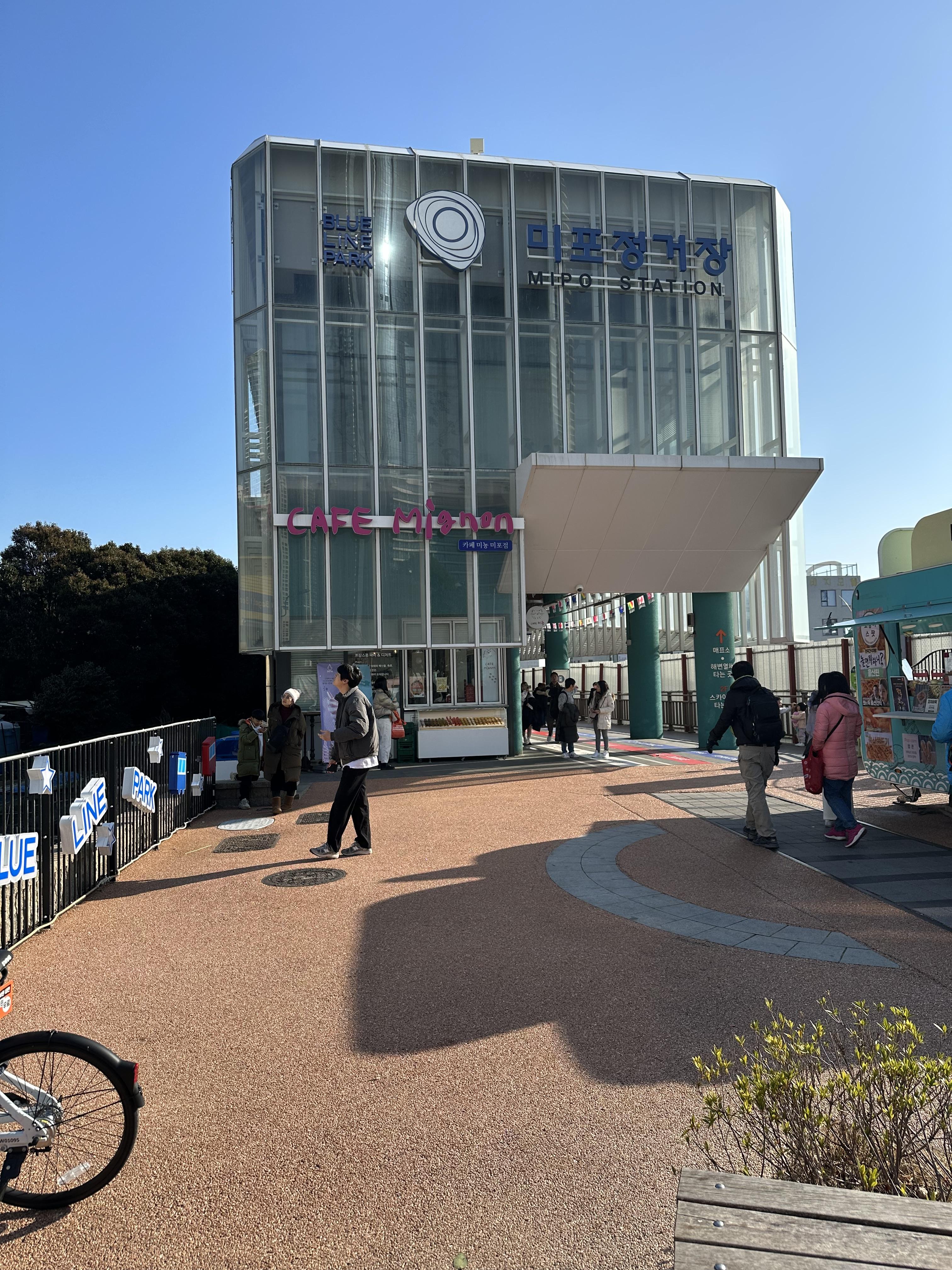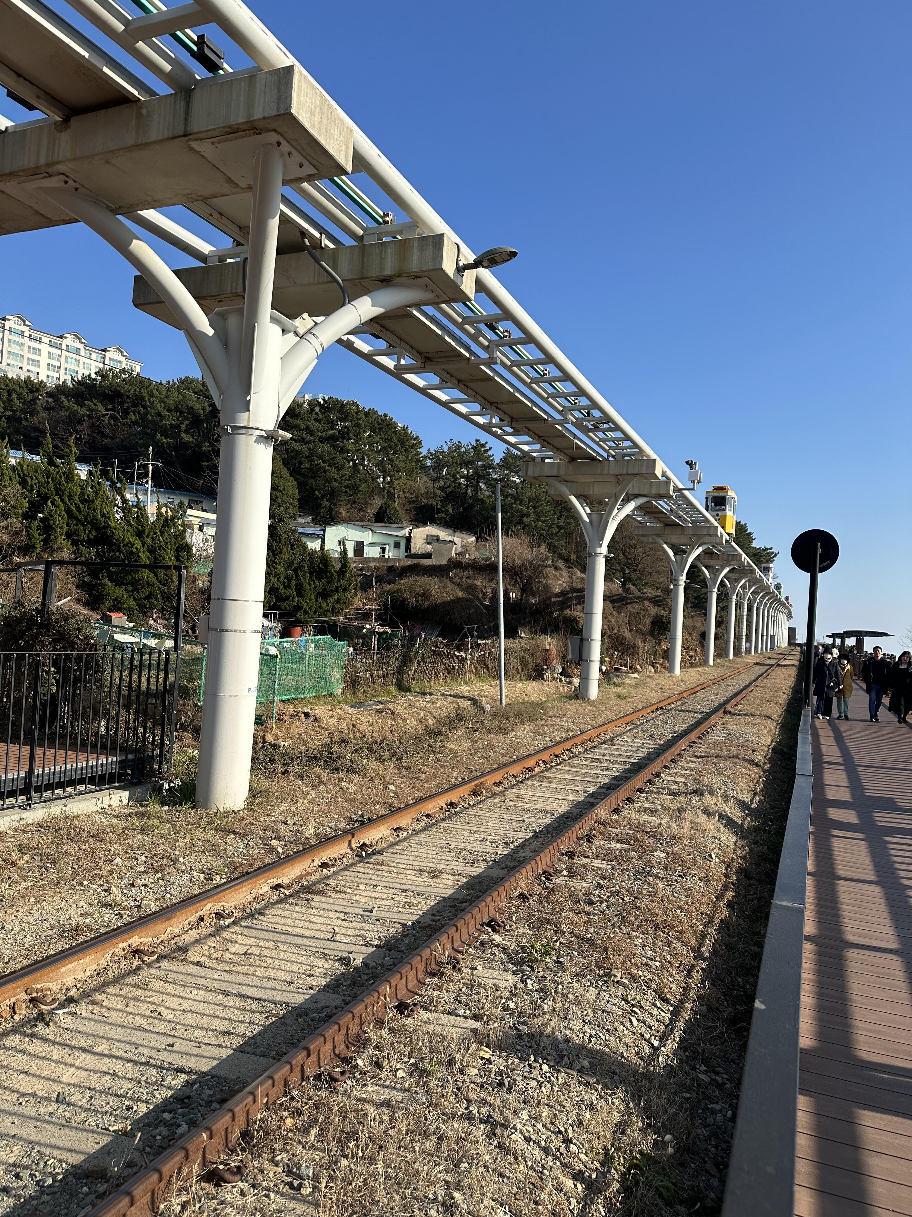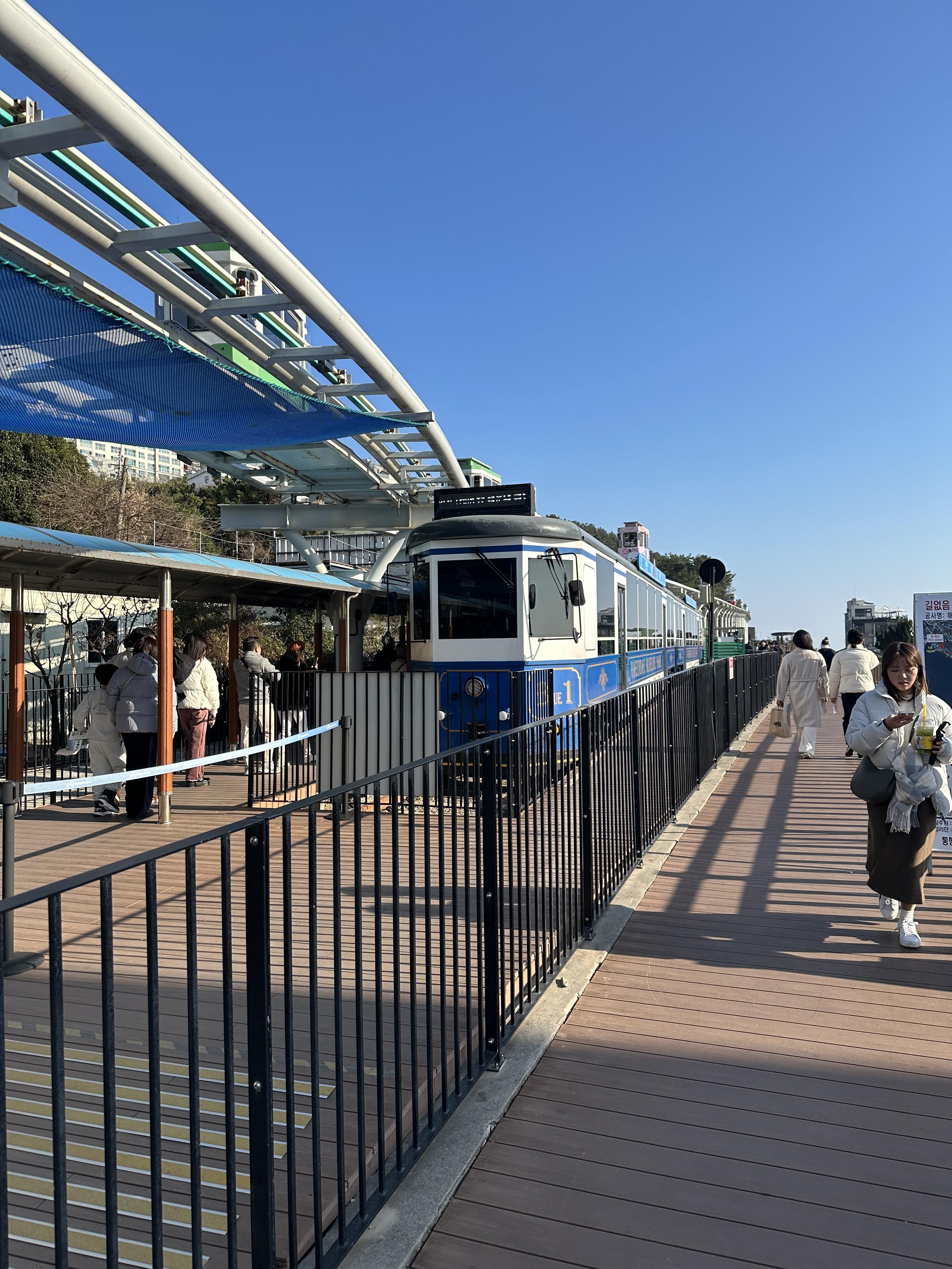 아무래도 해변열차가 케이블카 보다는 공간을 확실히 작게 차지하는 것 같습니다. 케이블카는 건물층수도 높게 지어야 하고 공간도 넓은데요. 해변열차 정거장은 비교적 작은 크기였습니다.