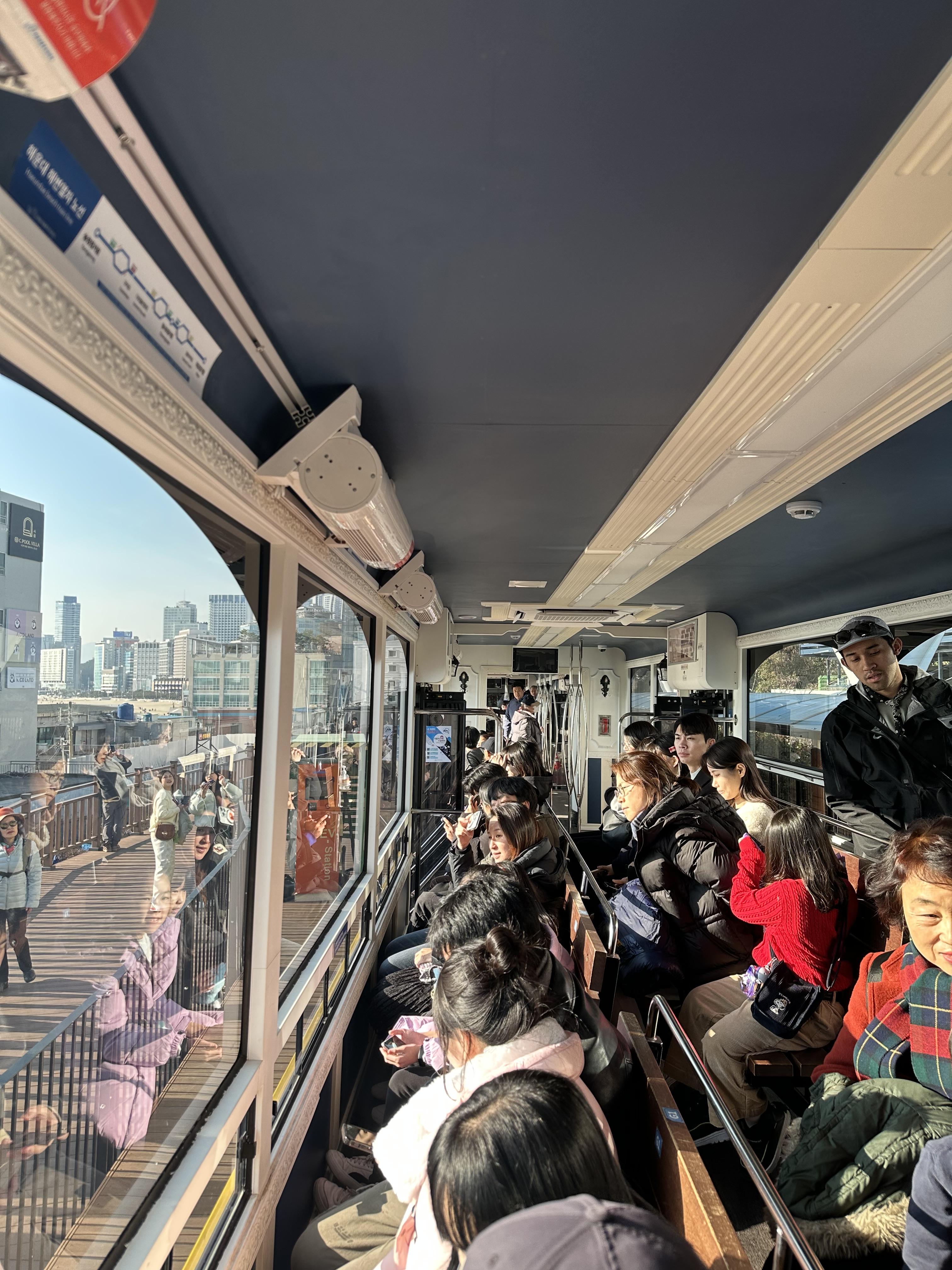 드디어 해운대블루라인파크 해변열차를 타게 됩니다. 미리 줄을 서있었기 때문에 탑승후에도 원하는 좌석에 앉을 수 있었습니다. 일찍 오면 아무래도 시간상 손해일수는 있지만 자신이 원하는 좌석을 선택 할 수 있는 단점은 있었습니다. 늦게 탑승 시 입석으로 가거나 좌석이 없을 수 있으니 참고바랍니다.