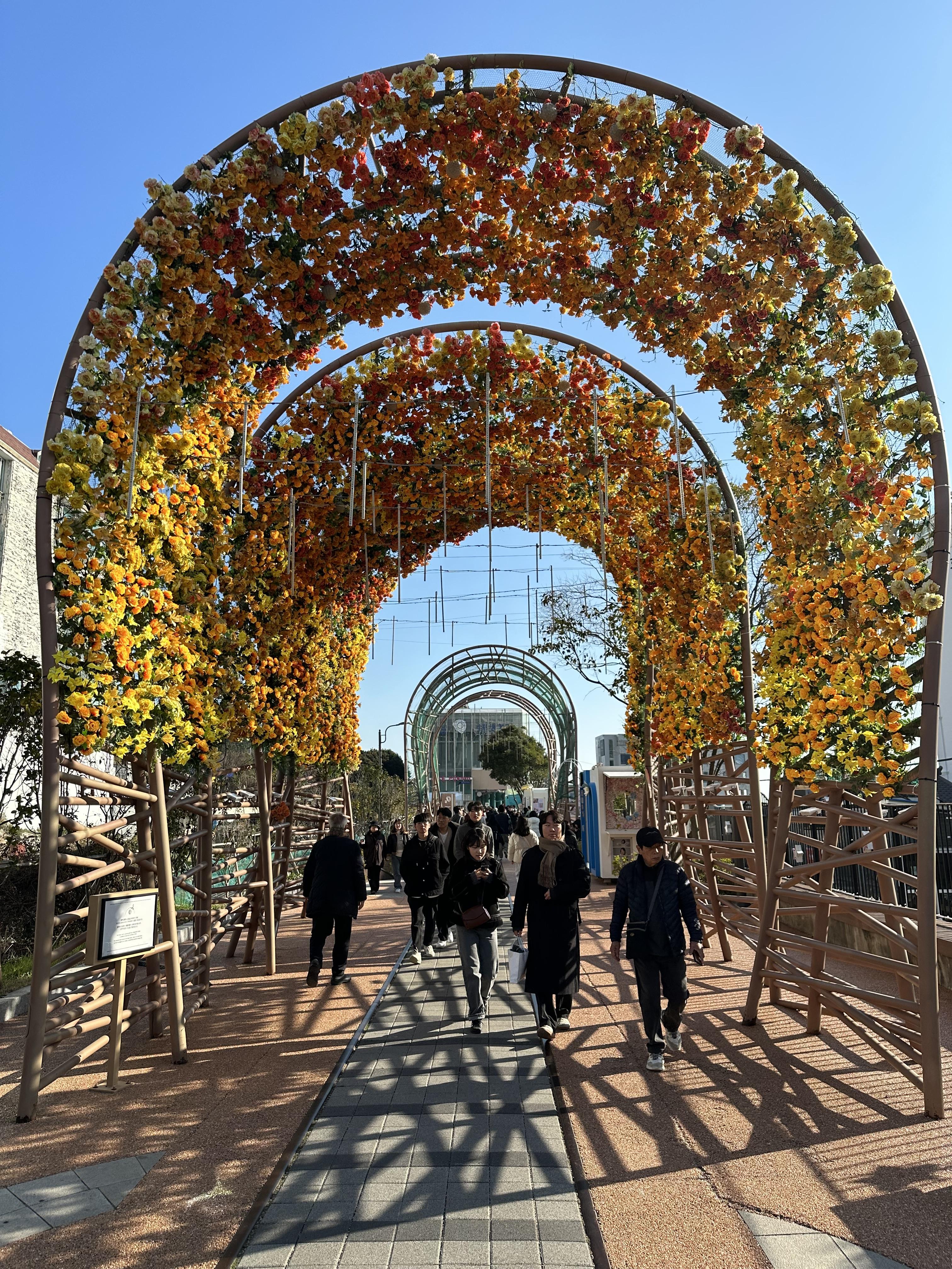 - 정국의 탄생화인 호랑이꽃과 삼페인 장미를 섞어 오렌지 빛갈의 꽃길을 만들었다고 합니다.