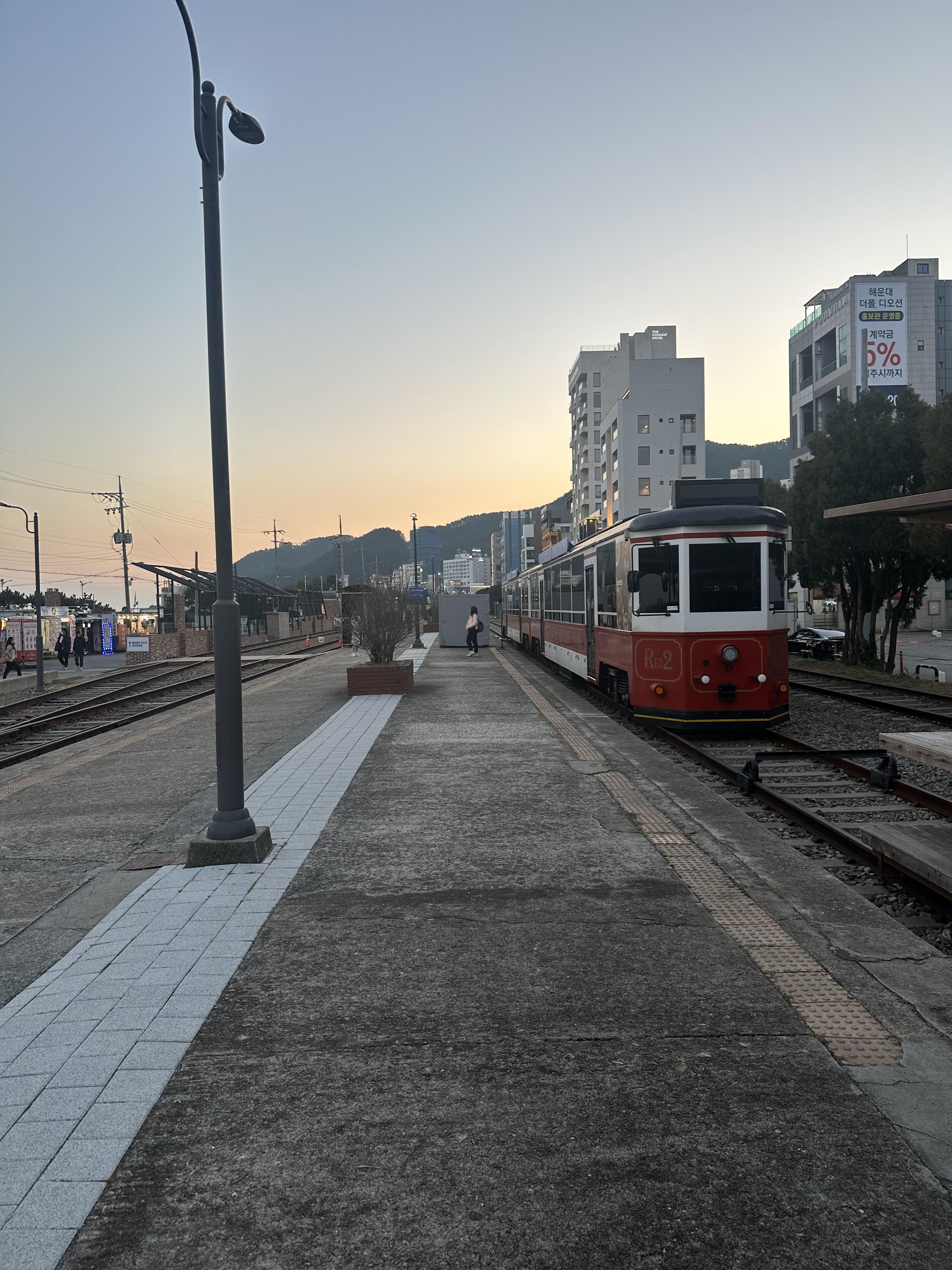 송정정거장에서 미포방향으로 가는 해변열차를 타고 가다보니 많이 어두워졌습니다. 해운대 미포정거장 도착할 쯤에는 일몰이 절정에 올라서 정말 아름다웠습니다. 전날 해운대에서 바라본 밤바다의 경우 화려한 네온사인과 건물 불빛으로 화려했는데요. 해운대블루라인파크 해변열차에서 바라보는 일몰은 차분해보였습니다. 구 동해남부선을 많이 타보지 못한게 아쉽지만 구 동해남부선 열차에서 바라보는 뷰는 퇴근하는 직장인들과 여행을 하는 뚜벅이 관광객들에게 큰 힘이 될 것 같습니다.