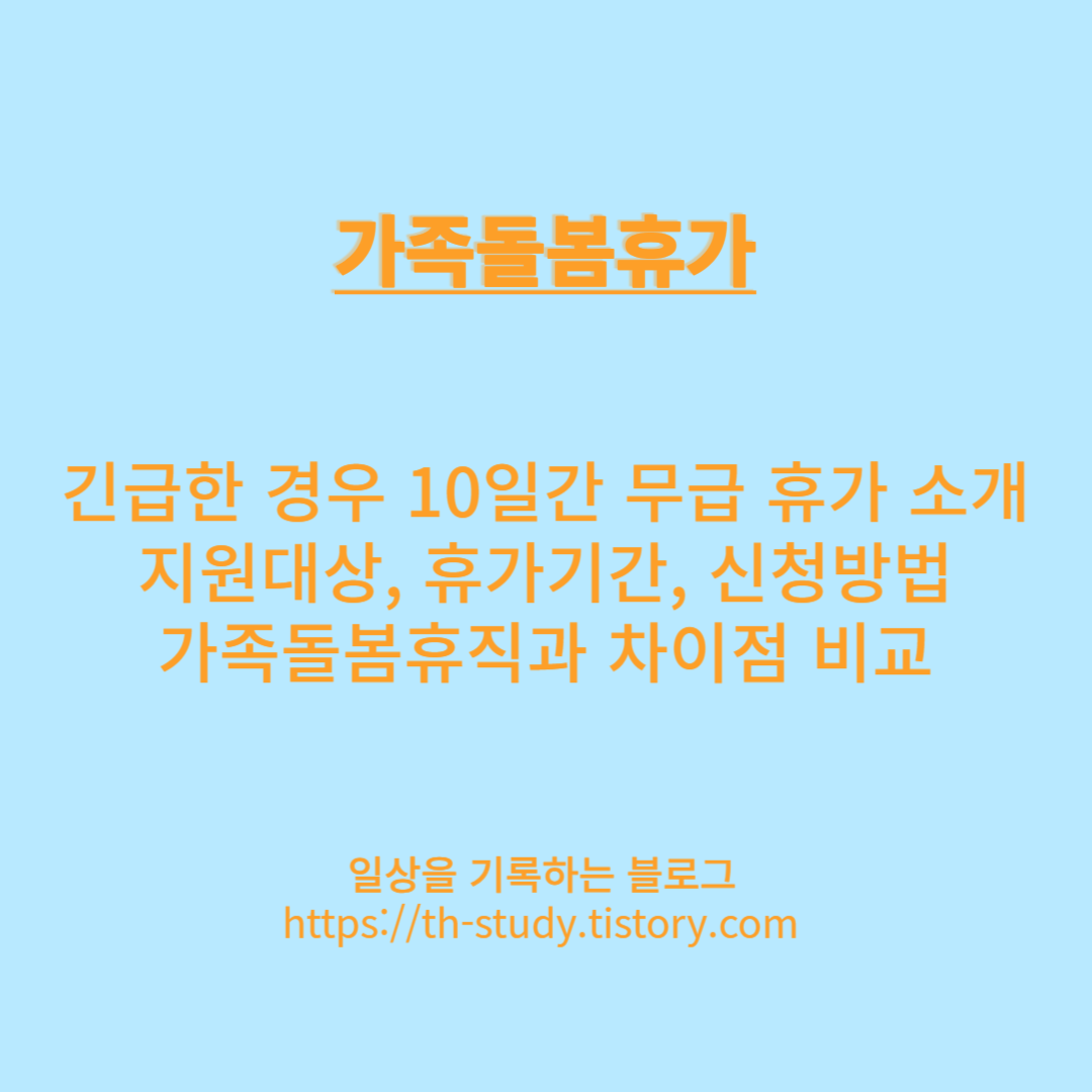 오늘은 직장 다니면서 유용하게 사용 해볼 수 있는 제도를 소개 해보려고 합니다. 직장을 다니다보면 긴급하게 휴가를 사용해야 하는 경우가 생기는 것 같습니다. 특히 가족과 관련된 문제인데요. 가족 중 누군가 아플 때는 연차를 사용하기에는 애매한 것 같습니다.