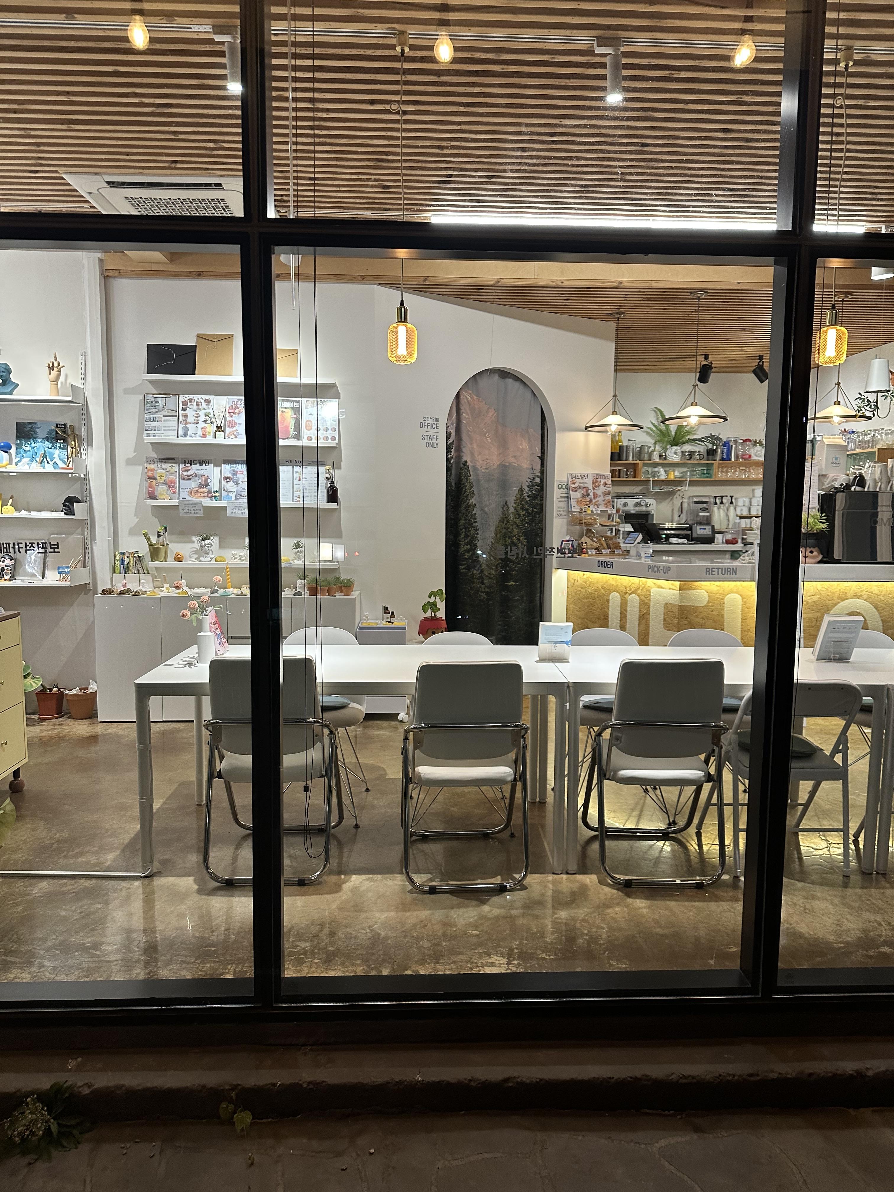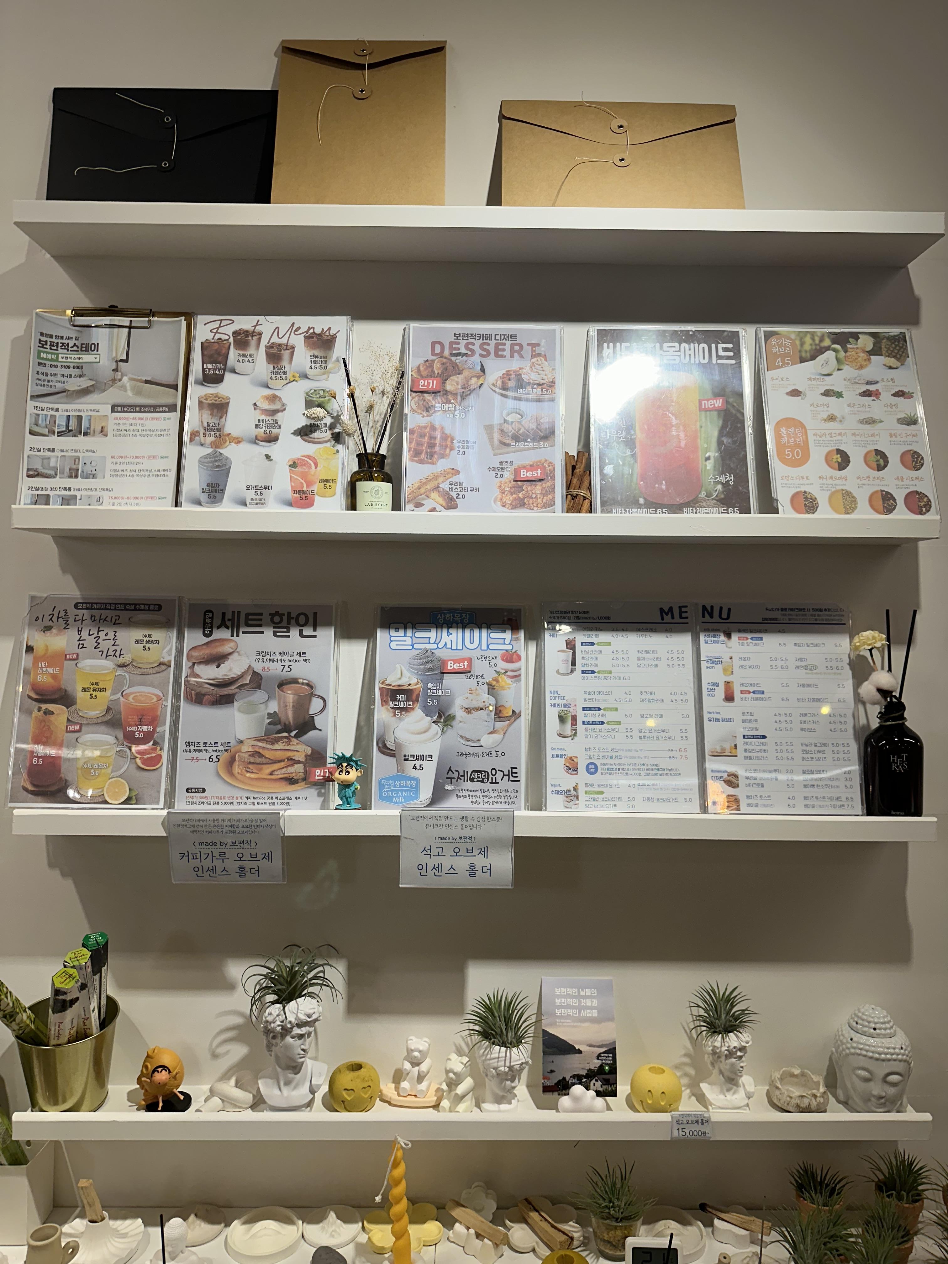 보편적스테이 출입문은 세군대인데요. 버스정류장에서 위에서 언덕으로 올라오면 바로 정문이 있고, 우측에 보면 숙소로 가는길 뒤편에도 문이 있습니다. 8시 이전에는 1층 카페 문으로 들어가면 프론트에서 바로 체크인을 할 수있고 8시 이후는 셀프체크인으로 인해 바로 우측 객실쪽문으로 들어가시면되요. 카페는 정말 슬로비게스트하우스보다 엄청 이뻐요. 조식도 정말 카페에서 볼 수 있는 다양한 음료와 디저트들이 눈에 보입니다. 여행에 오면 기념품도 사야겠죠 1층 카페에는 다양한 기념품도 함께 팔고 있었습니다.