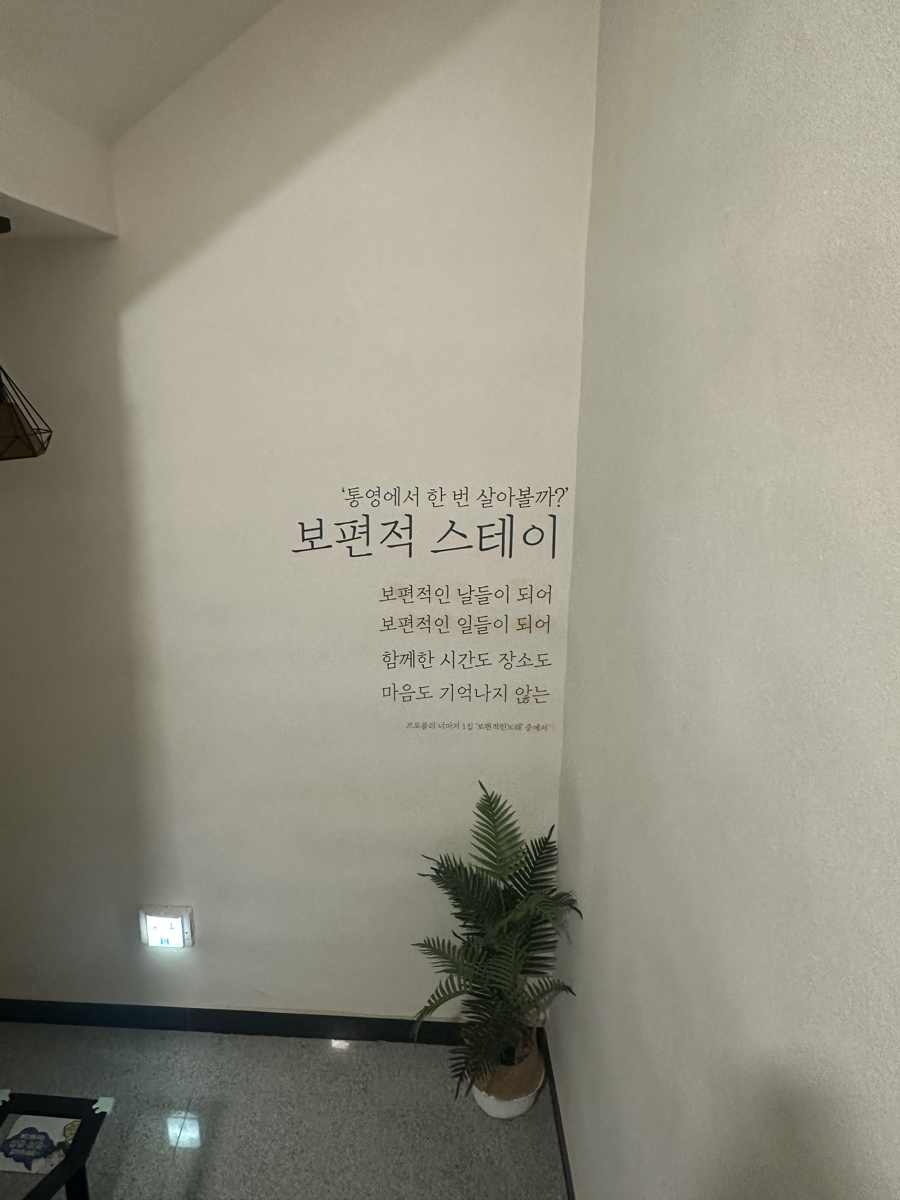 - 정말 조용한 숙소이라서 대부분 혼자서 조용히 쉬고싶은 분들이 있기 때문에 만약 즐겁게 떠들고 싶다면 보편적스테이보다는 통영슬로비게스트하우스 가시는게 더 재미있을 수 있습니다.
