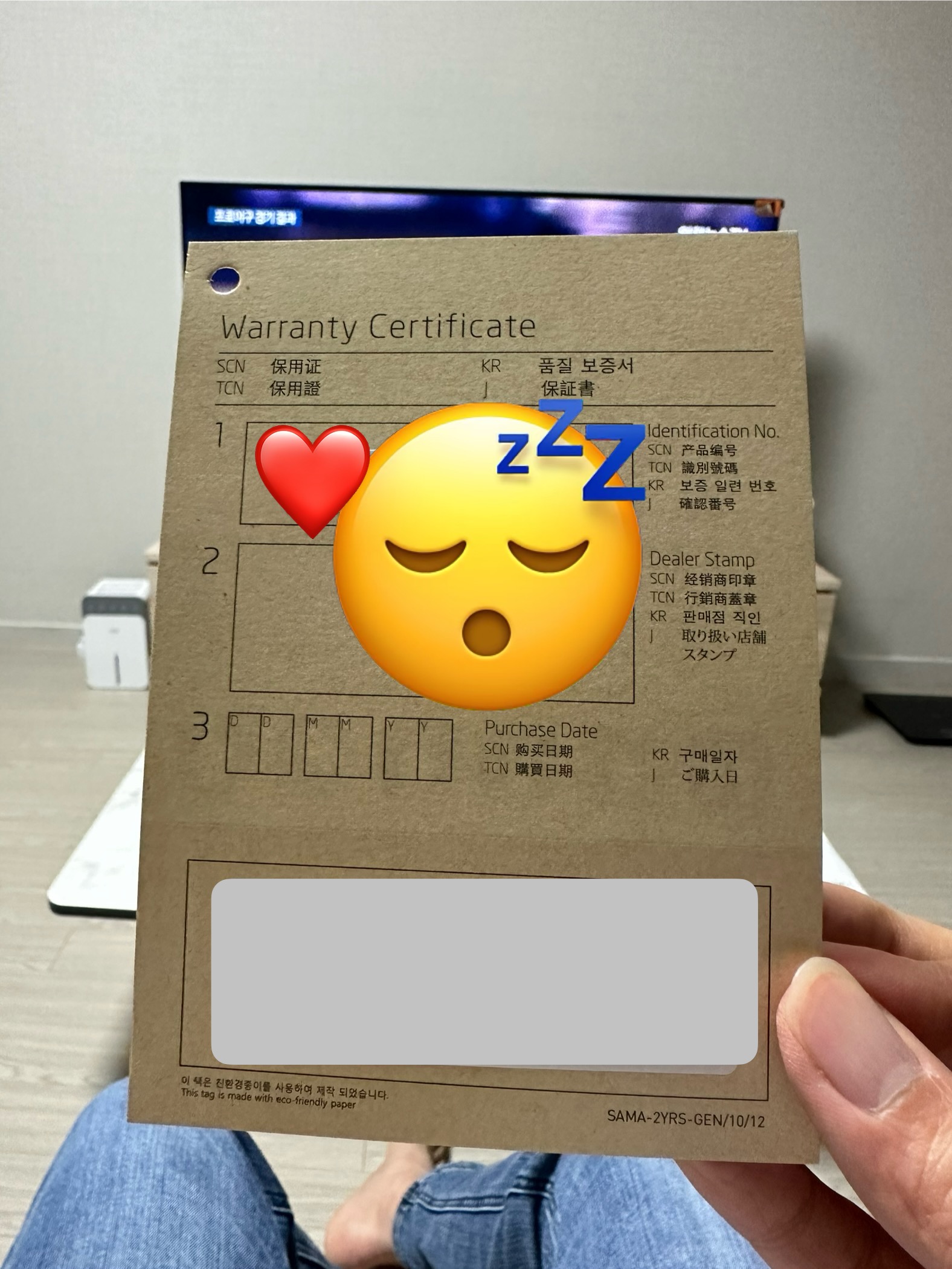 - 보증서와 영수증 모두 꼭 원본과 함께 사진 찍어서 보관해 두는 것을 추천드려요.