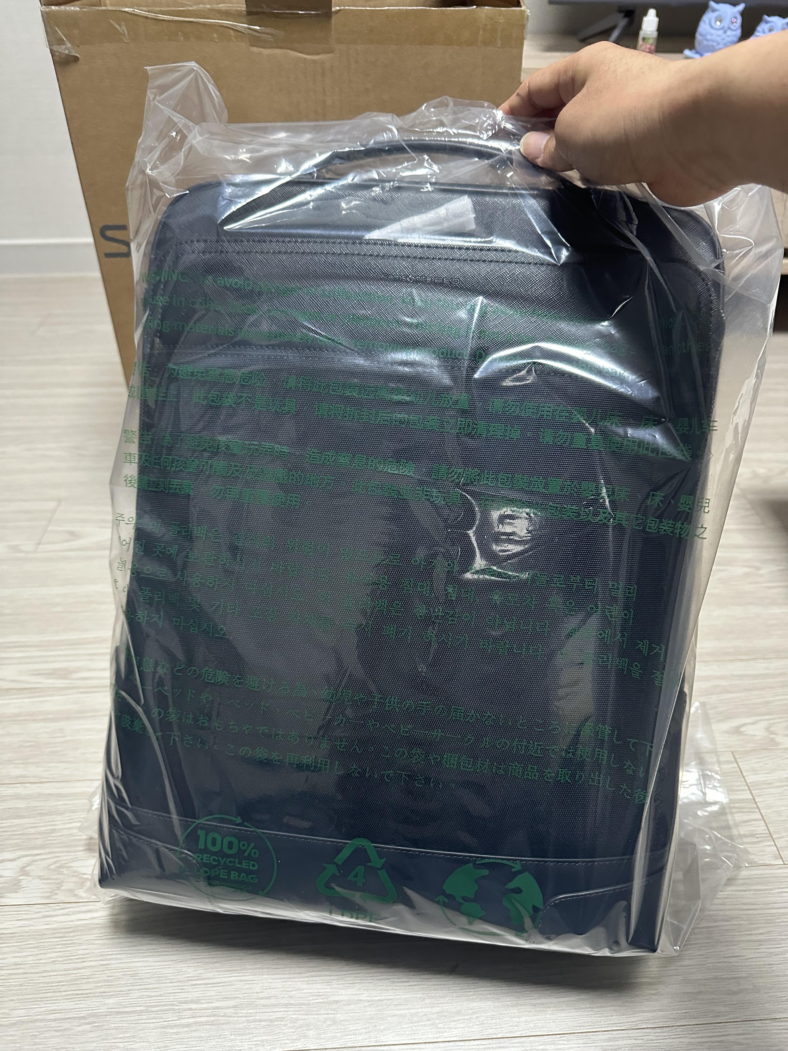 일 끝나고 집에 도착하니까 현관앞에 쌤소나이트 제품 택배가 도착해 있었습니다. 상자을 뜯어 가방을 꺼내었습니다. 가방은 다소 두꺼운 비닐봉지안에 포장이 되어있었습니다. 비닐도 뜯어서 제거해보겠습니다.