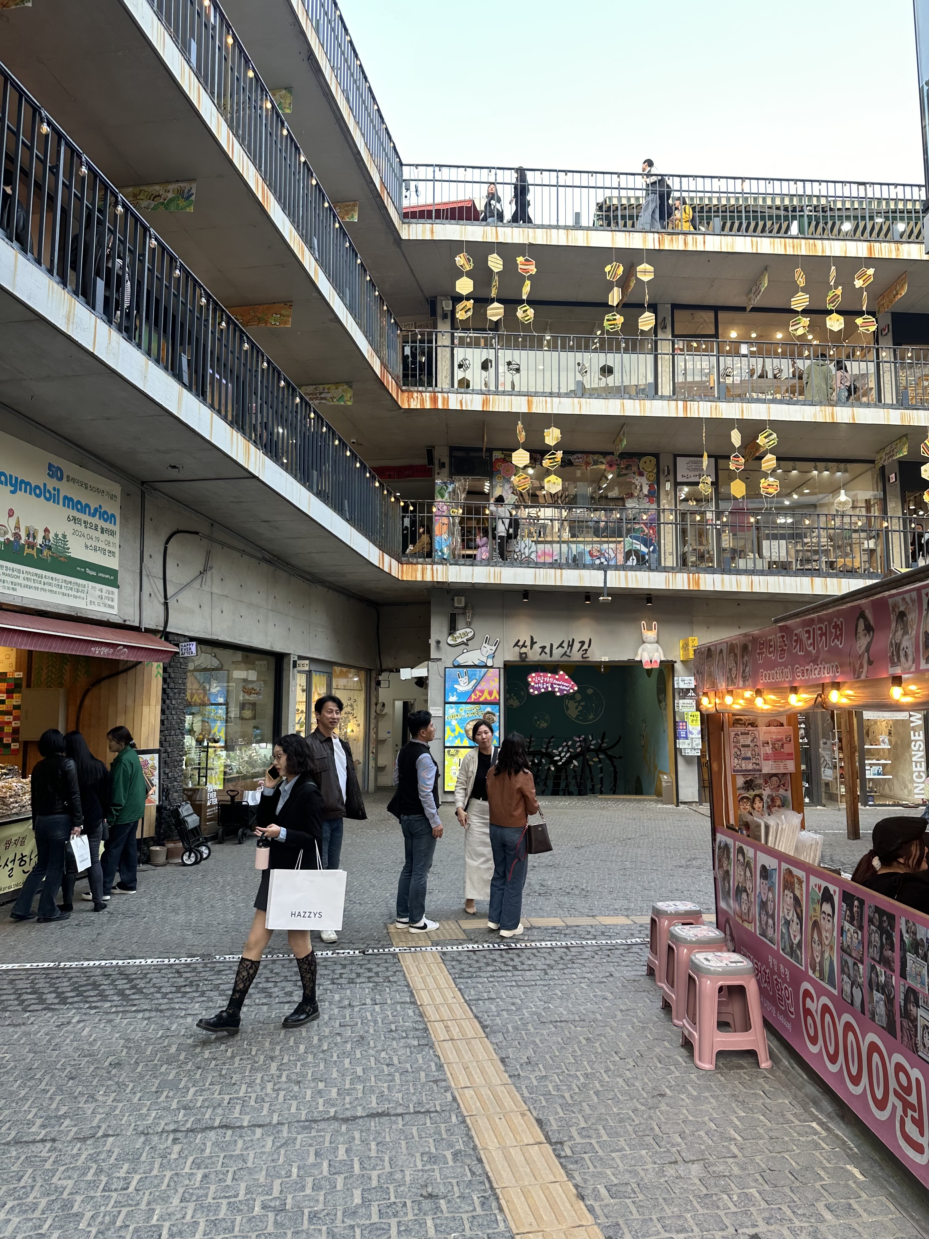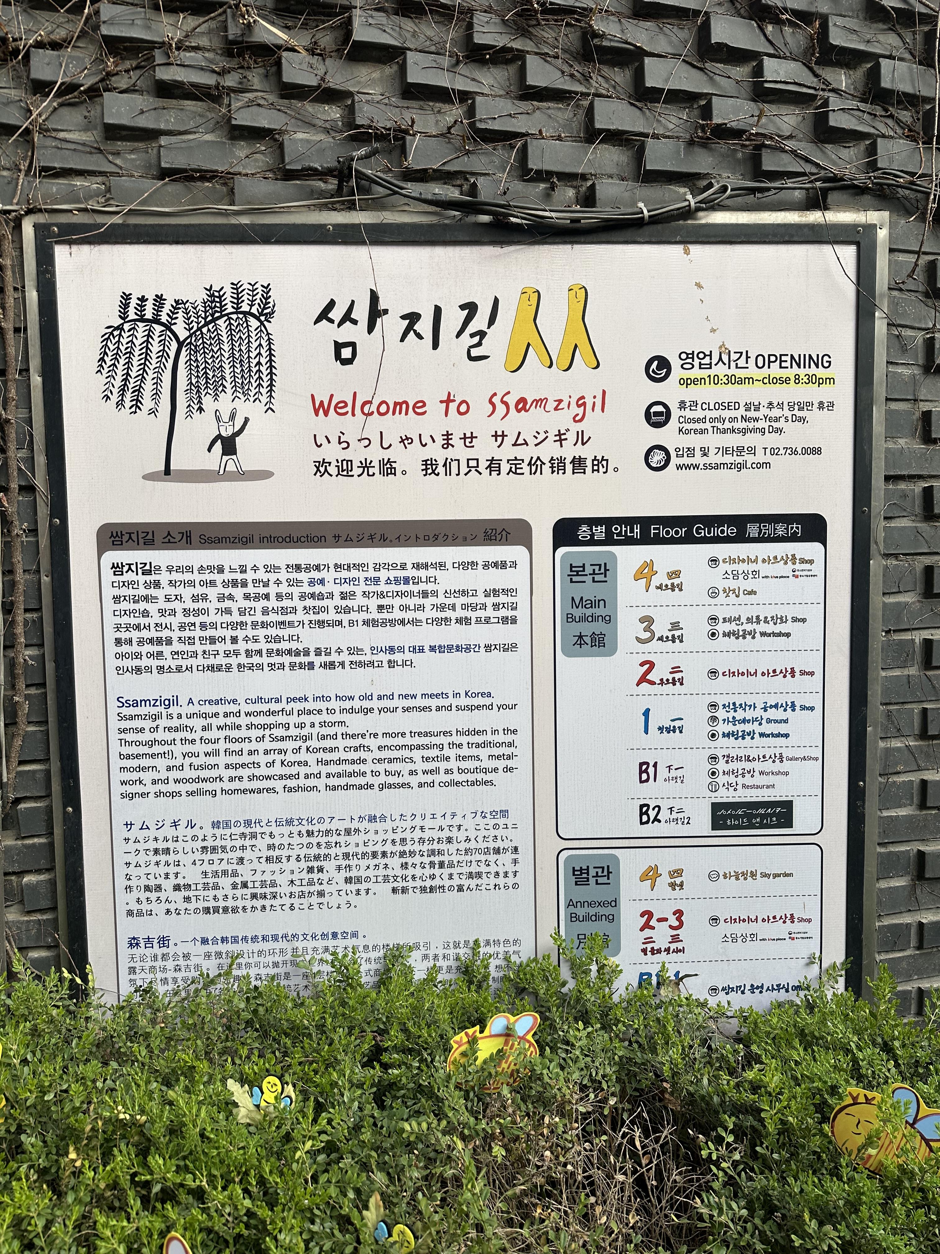 - 쌈지길에는 도자, 섬유, 금속, 목공예 등의 공예숍과 젊은 작가 디자이너들의 신선하고 실험적인 디자인숍, 맛과 정성이 가득 담긴 음식점과 찻집이 있습니다.