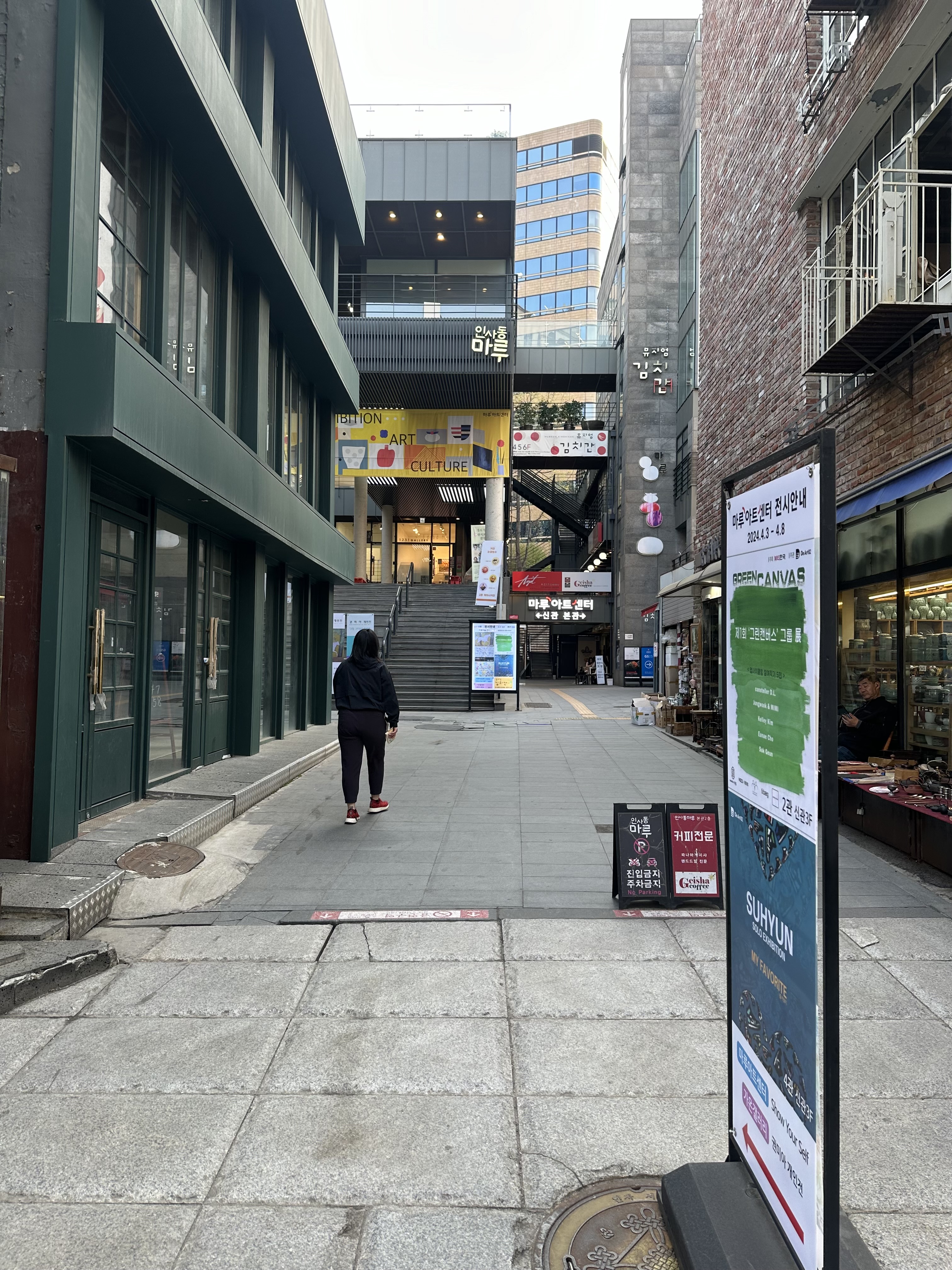 인사동 쌈지길에서 얼마 가지 않으면 마루 아트센터라는 곳을 발견할 수 있습니다. 당시에 방문했을 때는 2024년 4월 3일부터 4월 8일까지 제1회 그린캔버스 그룹 전시회가 진행되었습니다. 인사동은 정말 다양한 문화공연과 한국의 전통문화까지 눈으로 보고 손으로 즐길 수 있는 공간이 많았습니다. 외국인이라면 꼭 가보므로서 한국에 대해 알 수 있는 기회이면서 국내 내국인들에게는 연인들에게는 데이트코스로서 추억을 만들 수 있는 공간인 것 같습니다.