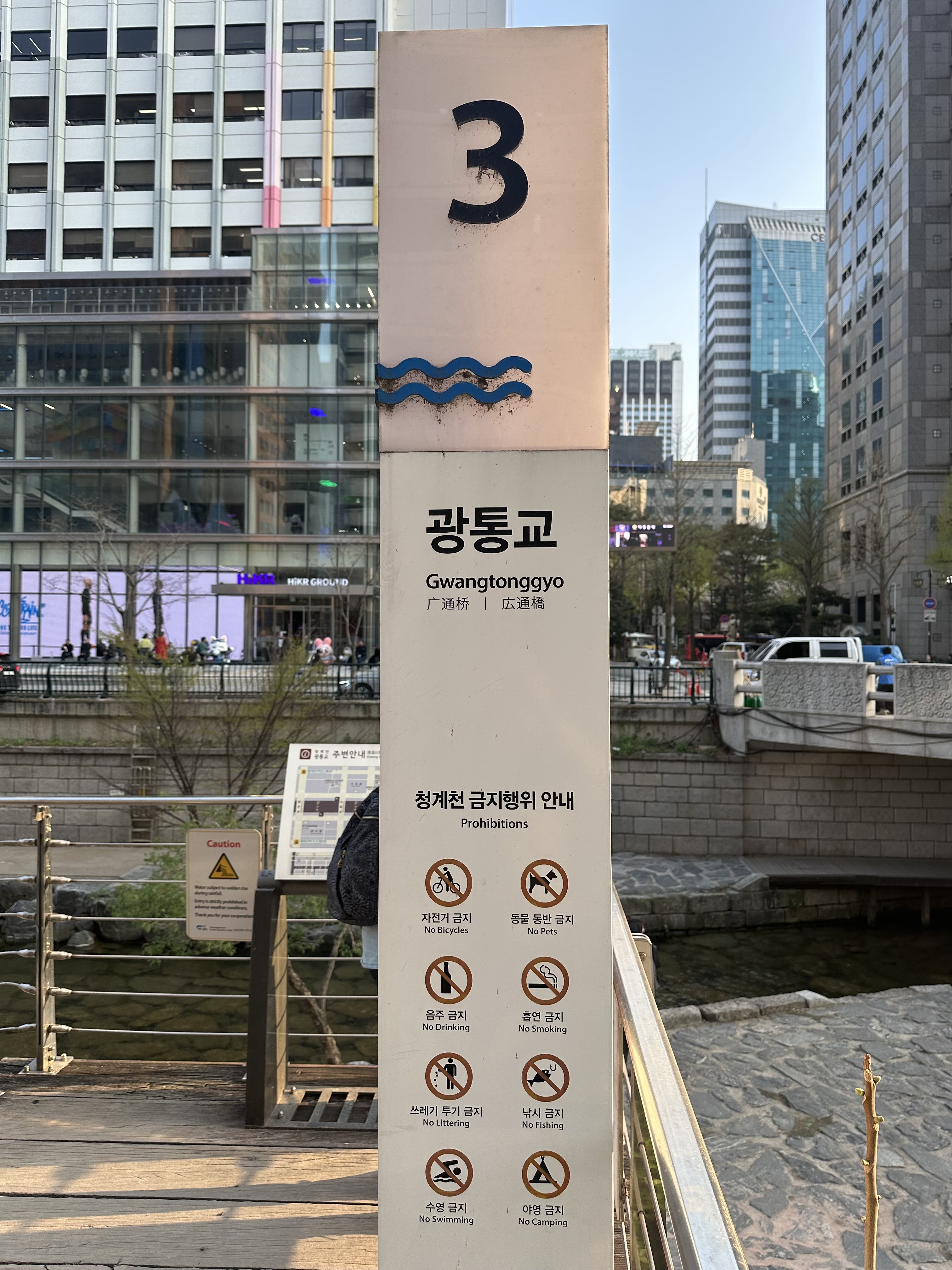 - 청계천이 있습니다. 청계천을 따라서 혼자, 지인, 연인, 가족들고 함께 걸을 수 있습니다.