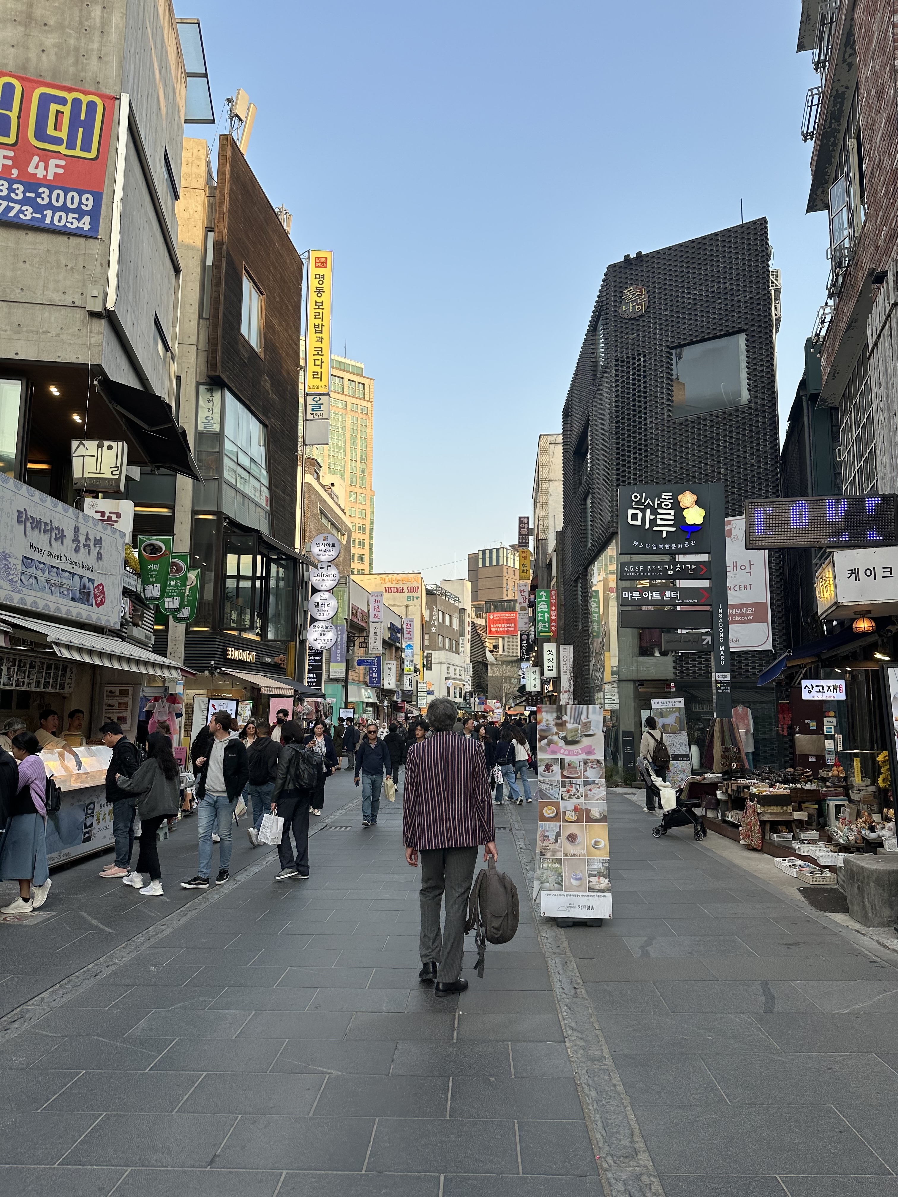 인사동 거리는 대체적으로 명동거리와는 다르게 전통 문화를 느낄 수 있는 동시에 낡은 건물들이 보였습니다. 그리고 종각 근처에 가게되면 높은 건물들이 보입니다. 한편으로는 오래된 건물도 보이면서 한국 전통문화를 느낄 수 있는 거리 한가운데 높은 건물이 들어오려는 모습도 발견 할 수 있습니다. 서울이라는 도시는 복잡한 것 같습니다. 한국의 전통 문화도 느낄 수 있지만 높은 건물을 통해 돈 없는 일반 서민들은 살기 힘든 도시라는 삭막함도 느껴지는 도시였습니다.