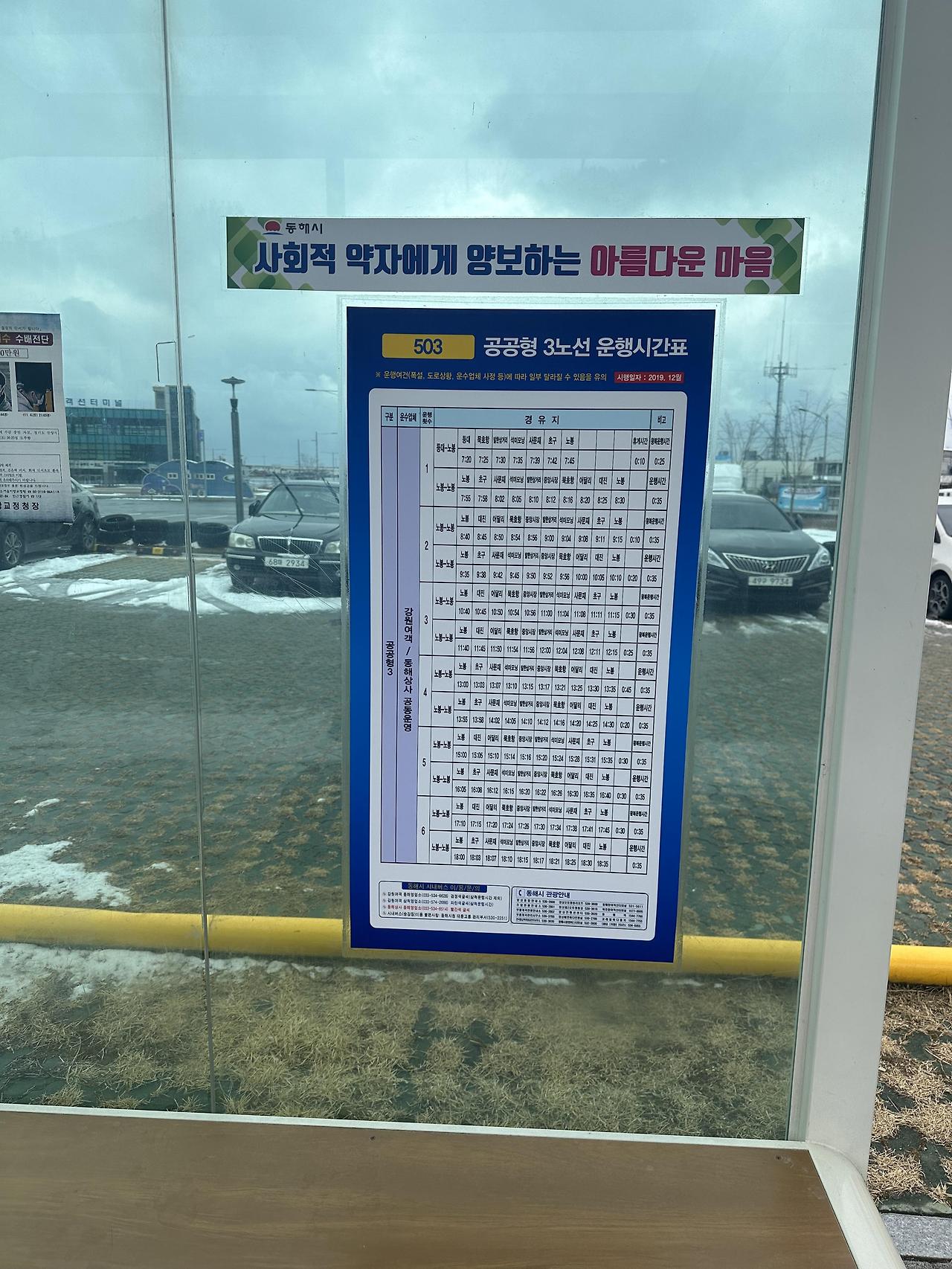 대부분 강원도 지역의 경우 교통이 좋지 않습니다. 제가 알기로 교통이 좋은 지역은 강릉과 춘천 말고는 딱히 없다고 생각됩니다. 묵호역에서 논골담길까지 걸어가는데 버스가 많이 보이지는 않았습니다. 논골담길까지 걸어가는데 다행히도 묵호의 경우 시내버스들이 공공형으로 운영되고 있었습니다.